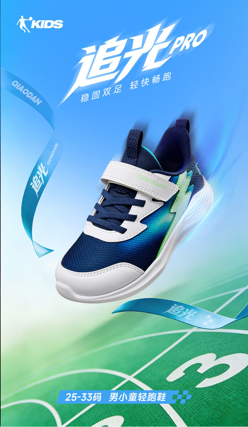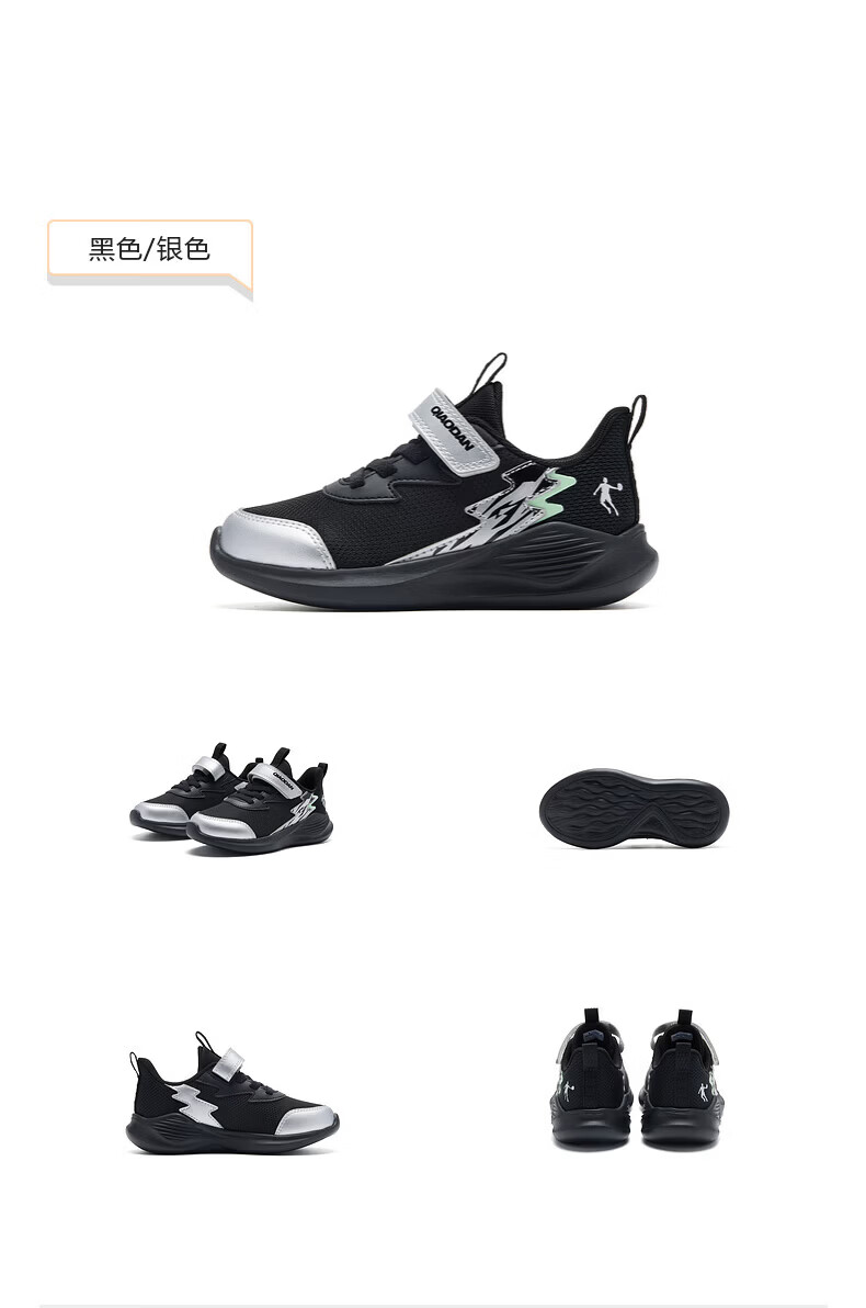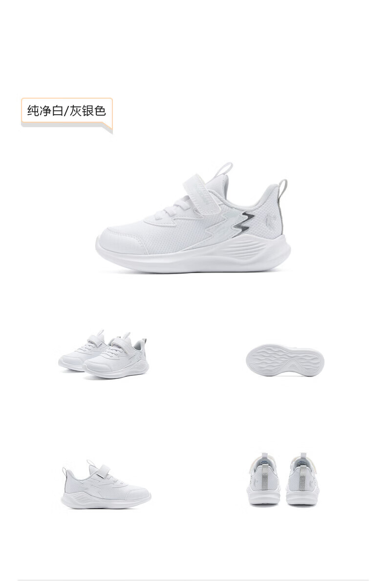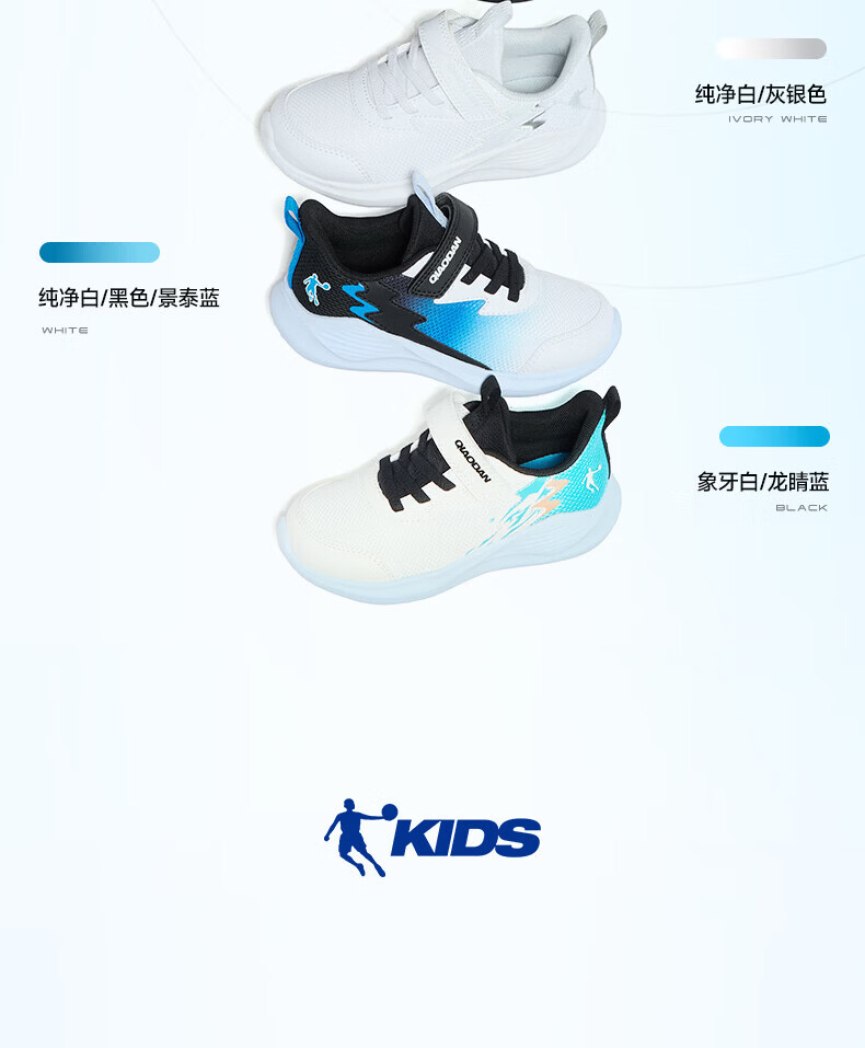 Jordan (QIAODAN) Chasing Pro | Children's Running Shoes for Boys 2026 Spring New Children's Shoes Outdoor Soft Sole Sports Shoes for Baby Pure White/Gray Silver 26