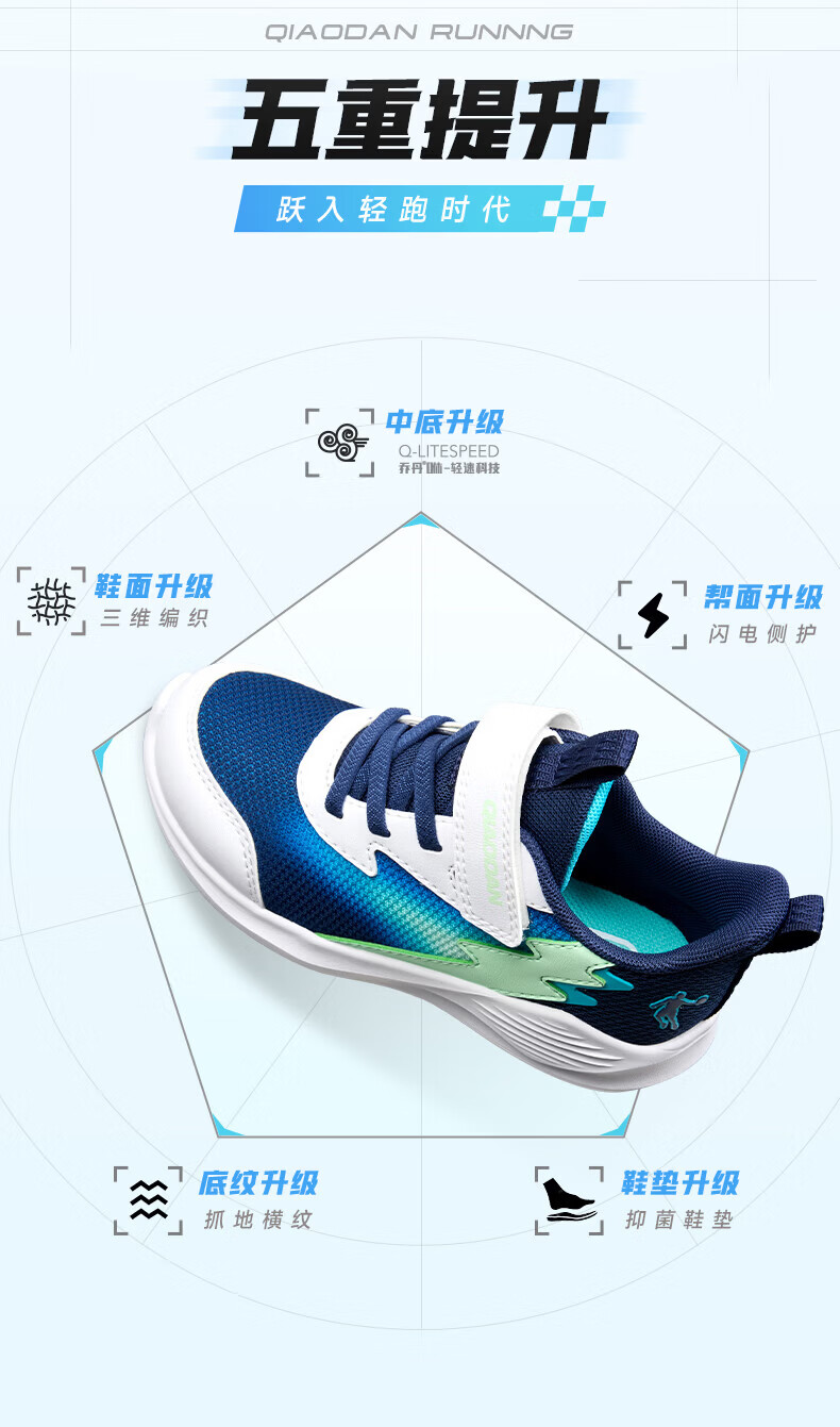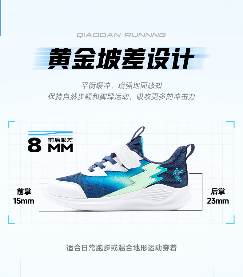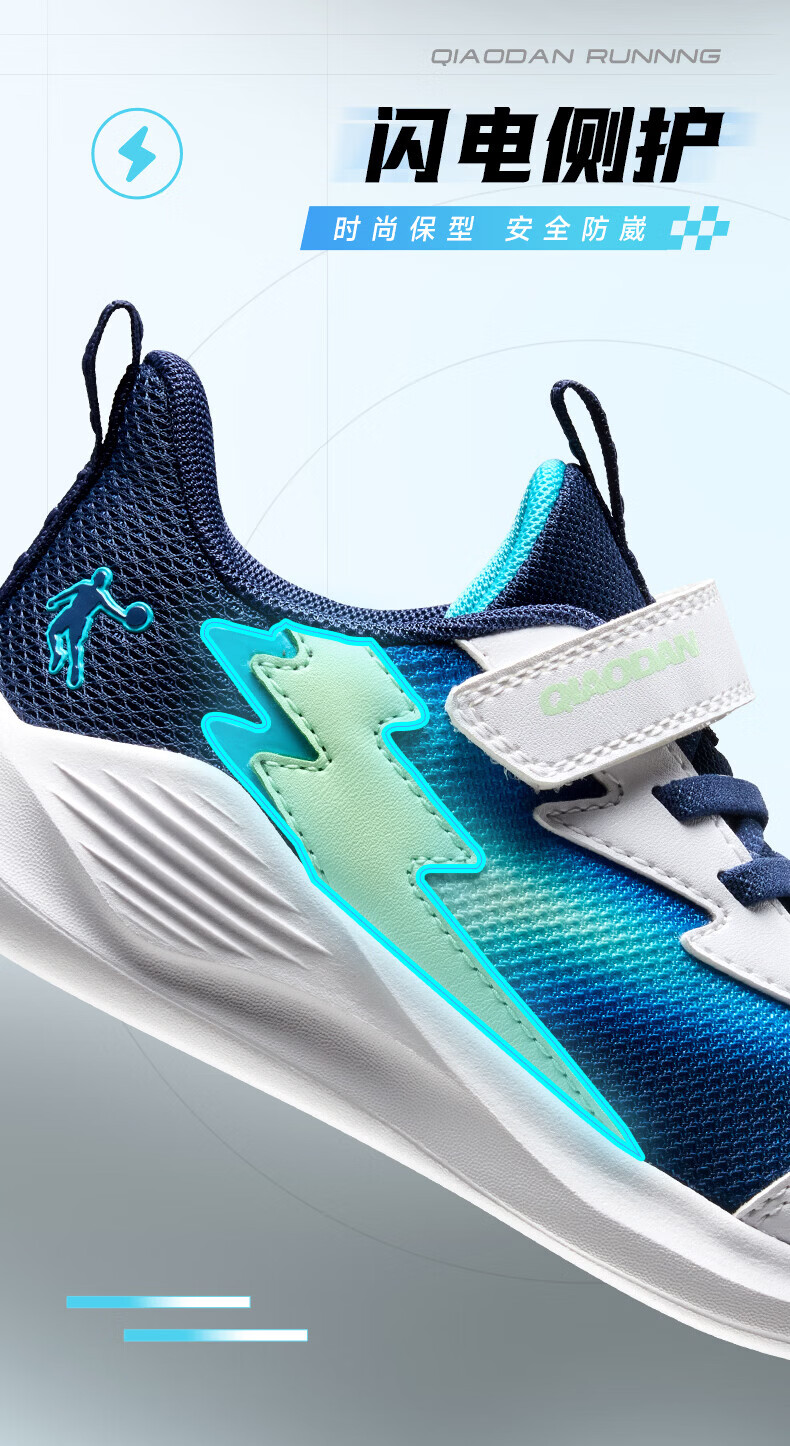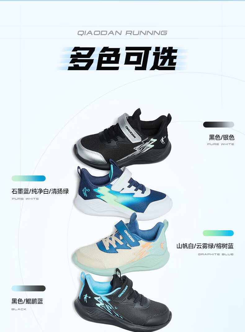 Jordan (QIAODAN) Chasing Pro | Children's Running Shoes for Boys 2026 Spring New Children's Shoes Outdoor Soft Sole Sports Shoes for Baby Pure White/Gray Silver 26