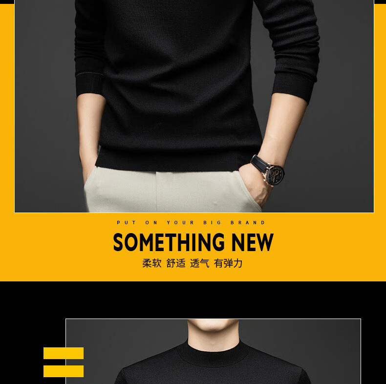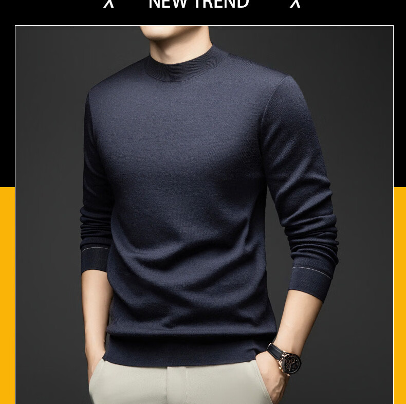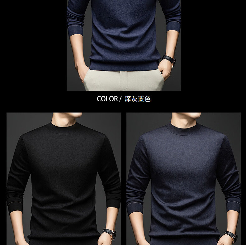 GUSKI light luxury brand high-end men's spring and autumn new pure wool sweater warm round neck sweater worsted casual bottoming sweater dark gray exquisite gift box S (165)