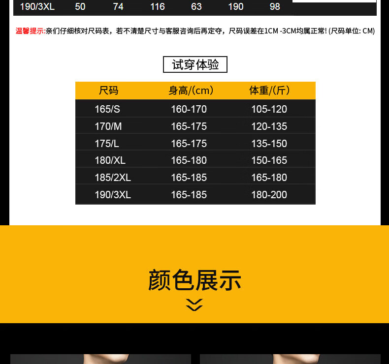 China (cm) 165 / 88-90 170 / 96-98 175 / 108-110 180 / 118-122 185 / 126-130