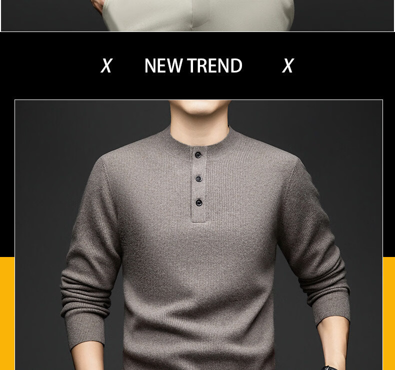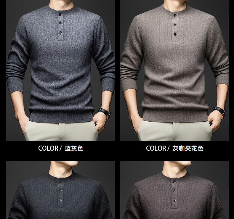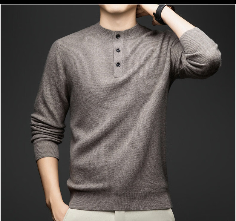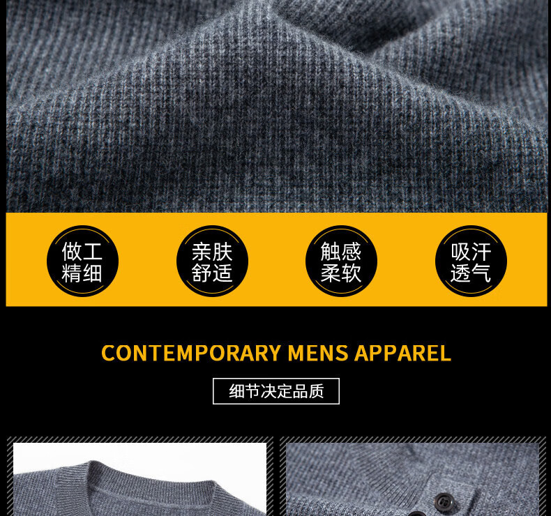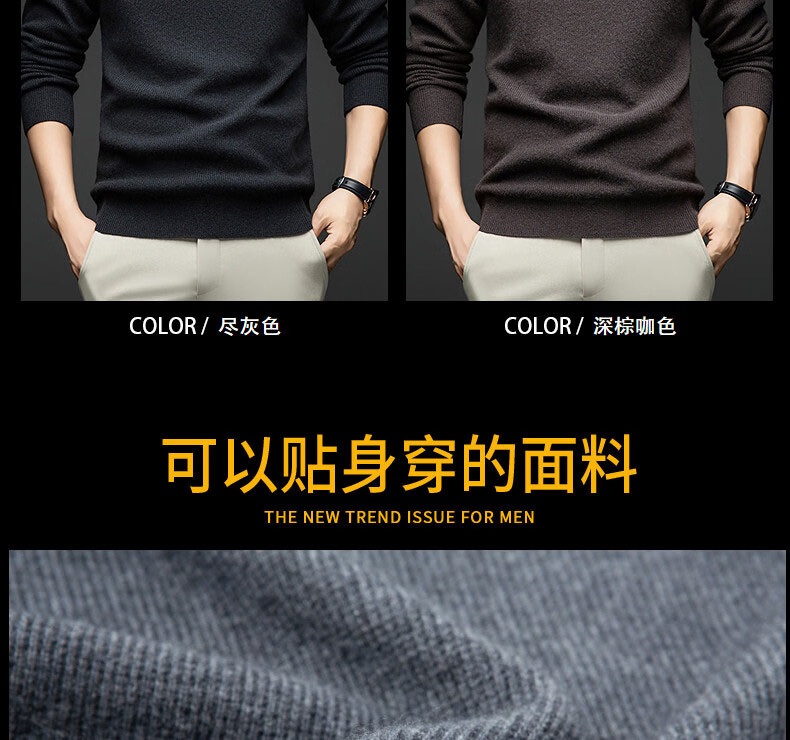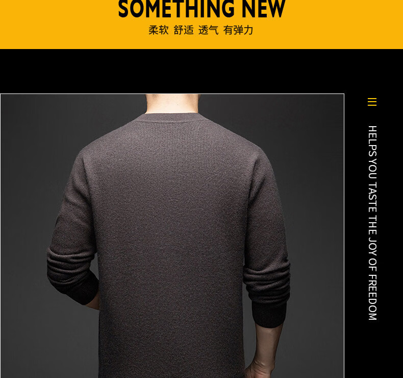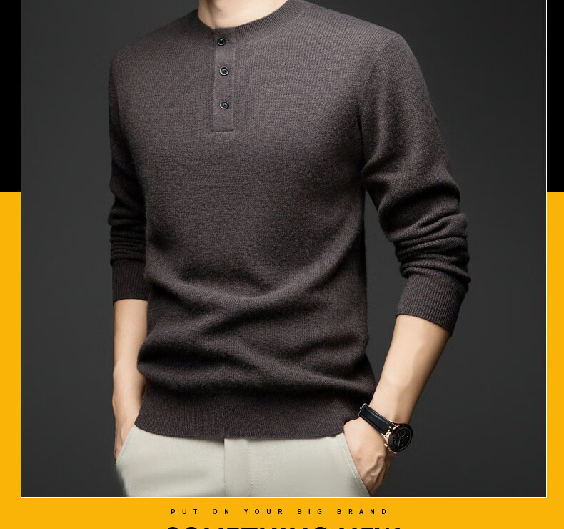 GUSKI light luxury brand high-end men's spring and autumn new wool sweater warm round neck sweater simple casual bottoming shirt gray coffee color exquisite gift box S (165)