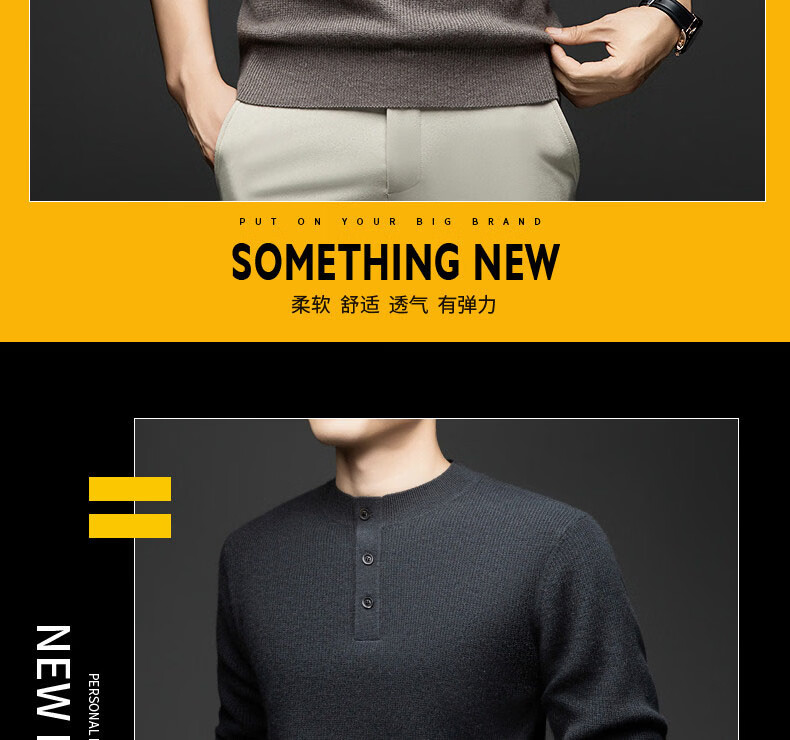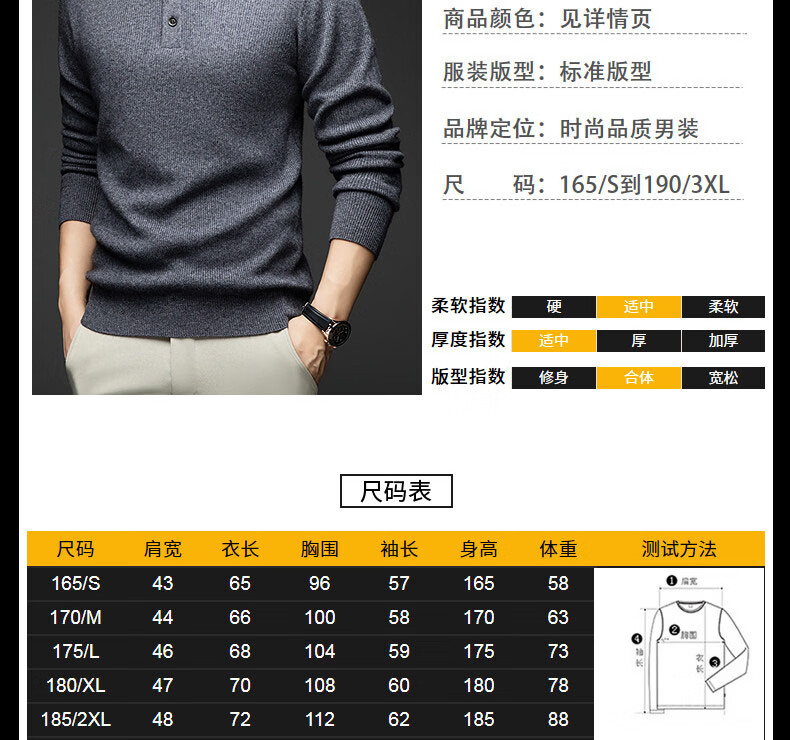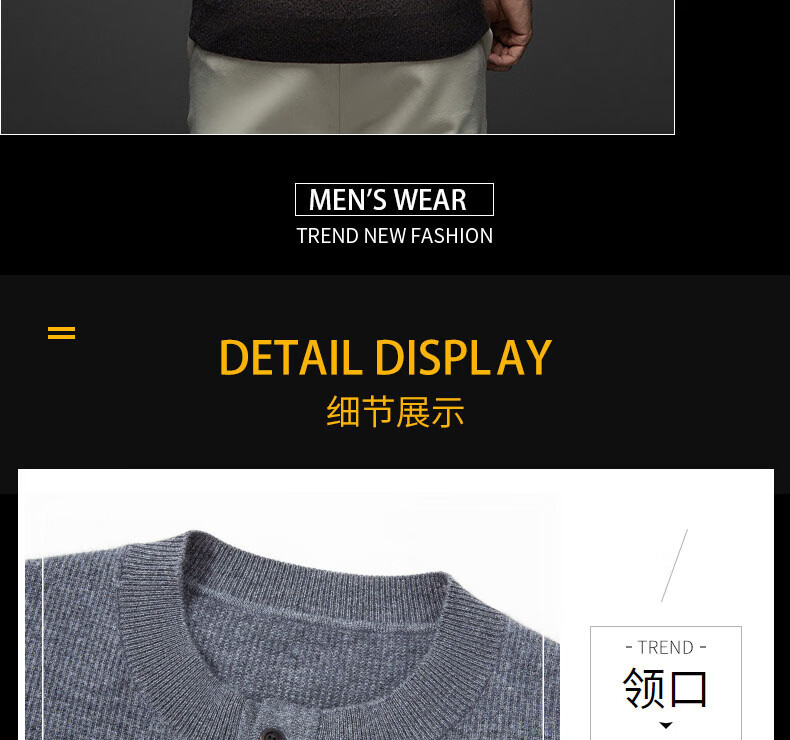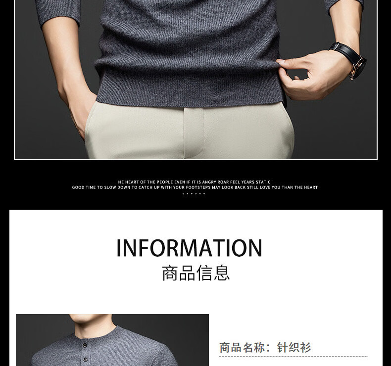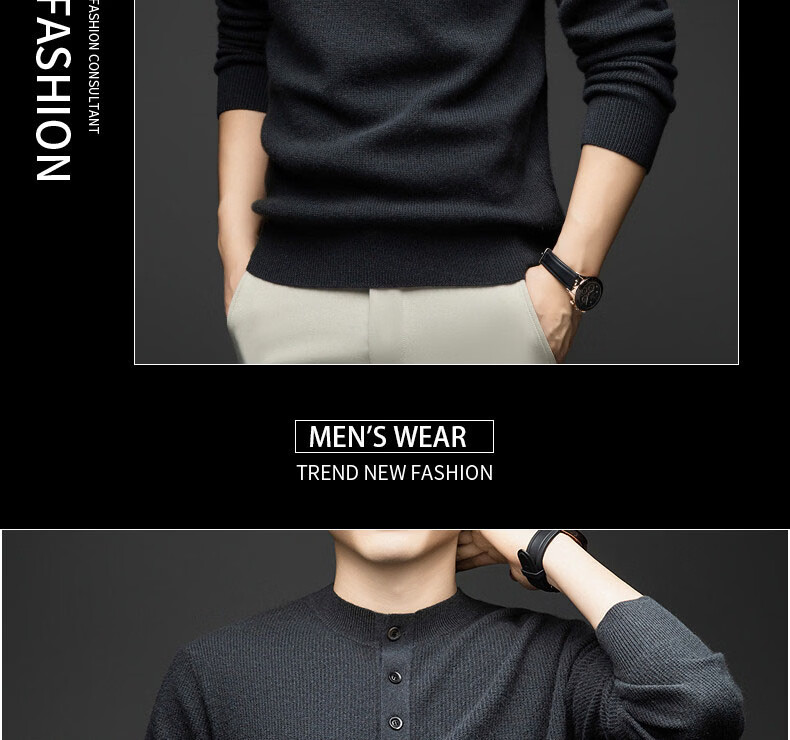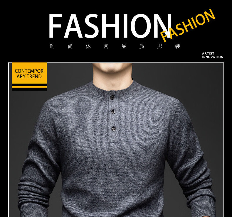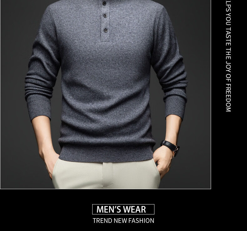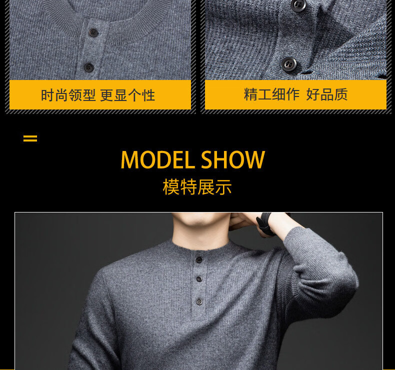 GUSKI light luxury brand high-end men's spring and autumn new wool sweater warm round neck sweater simple casual bottoming shirt gray coffee color exquisite gift box S (165)