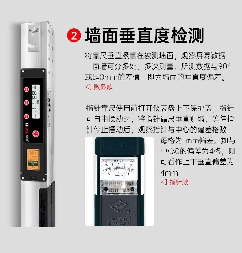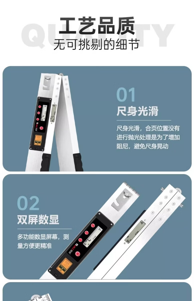 Aluminum alloy ruler 2 meters folding digital display level high-precision house inspection tool wall vertical flatness detection ruler m basic model 2 meters pointer ruler