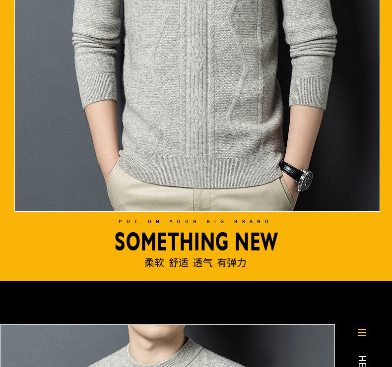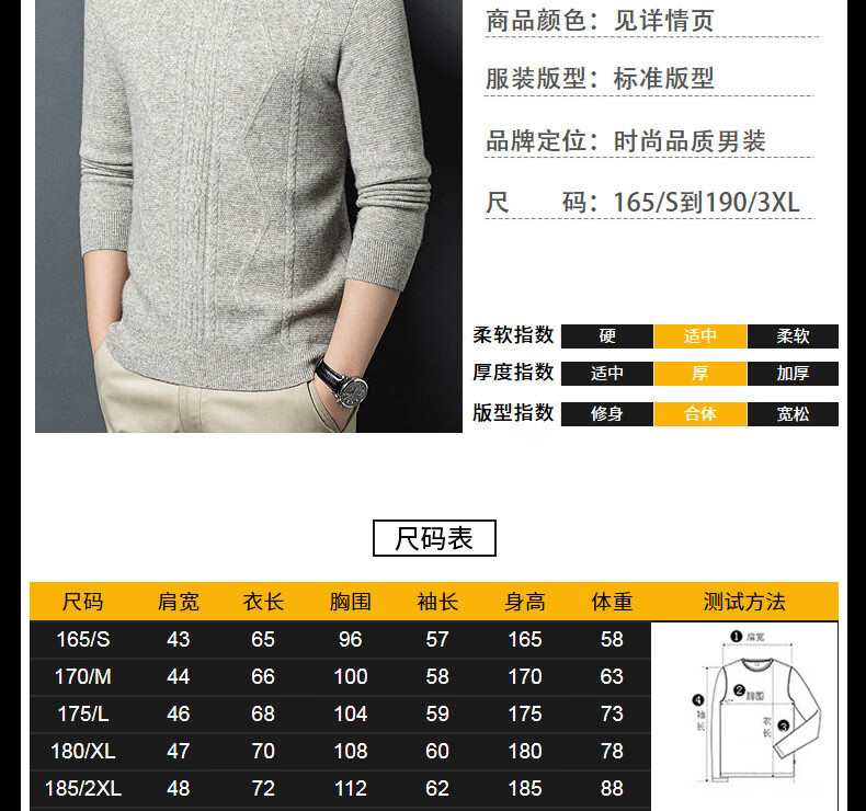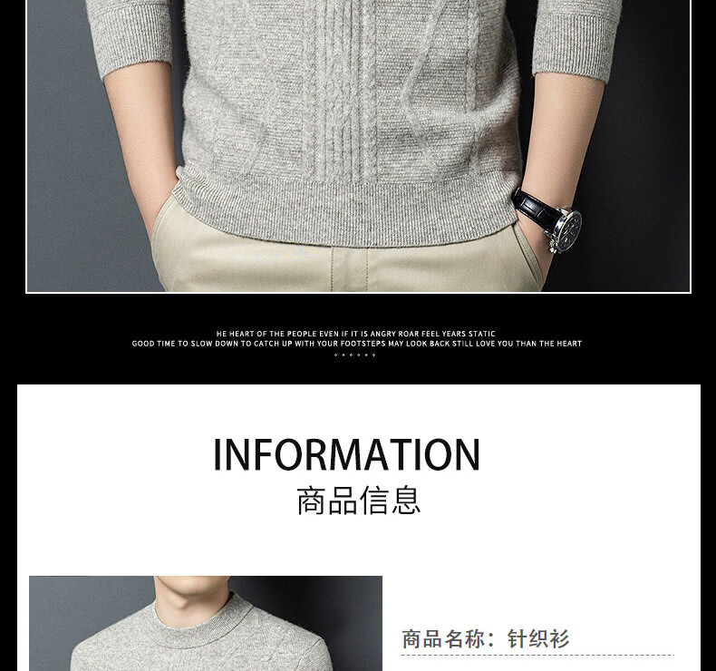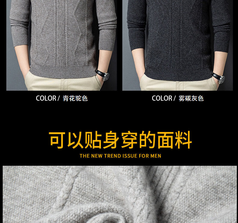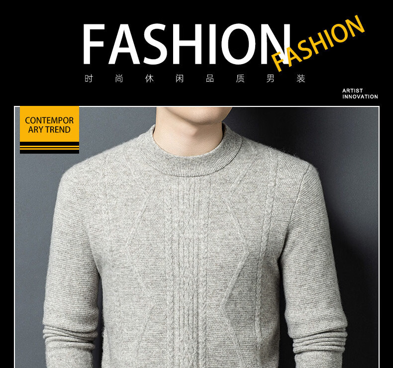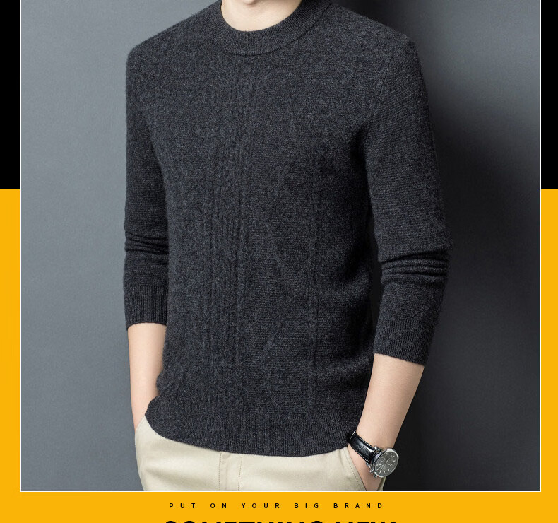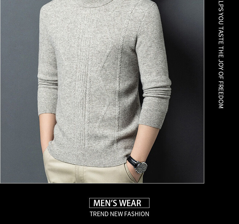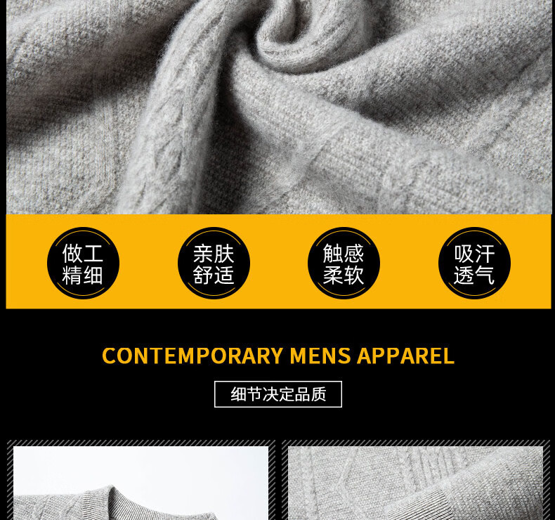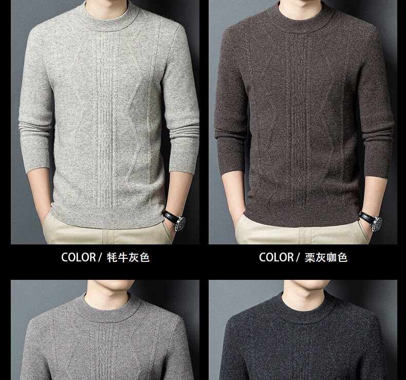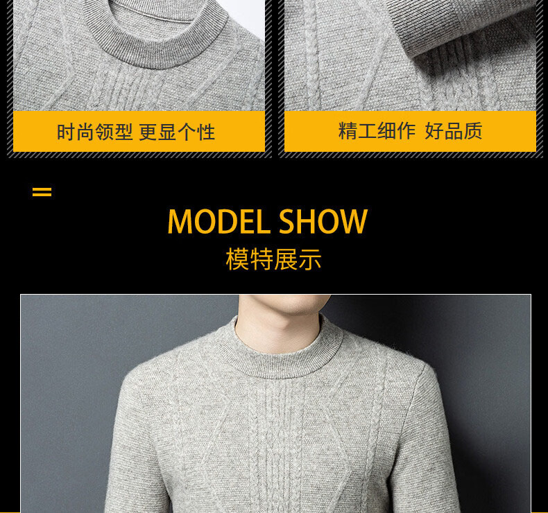 GUSKI light luxury brand high-end men's spring and autumn new wool sweater warm and comfortable sweater simple casual bottoming shirt yak gray exquisite gift box S (165)