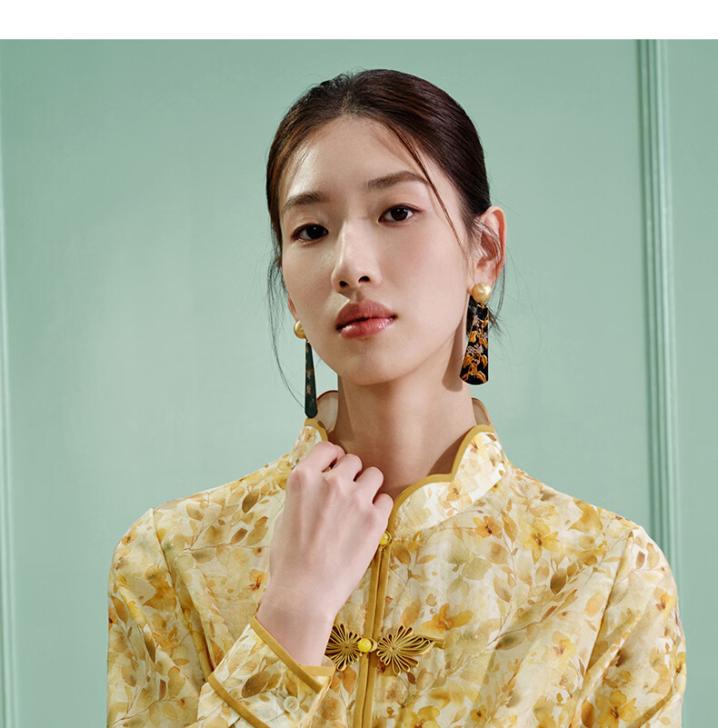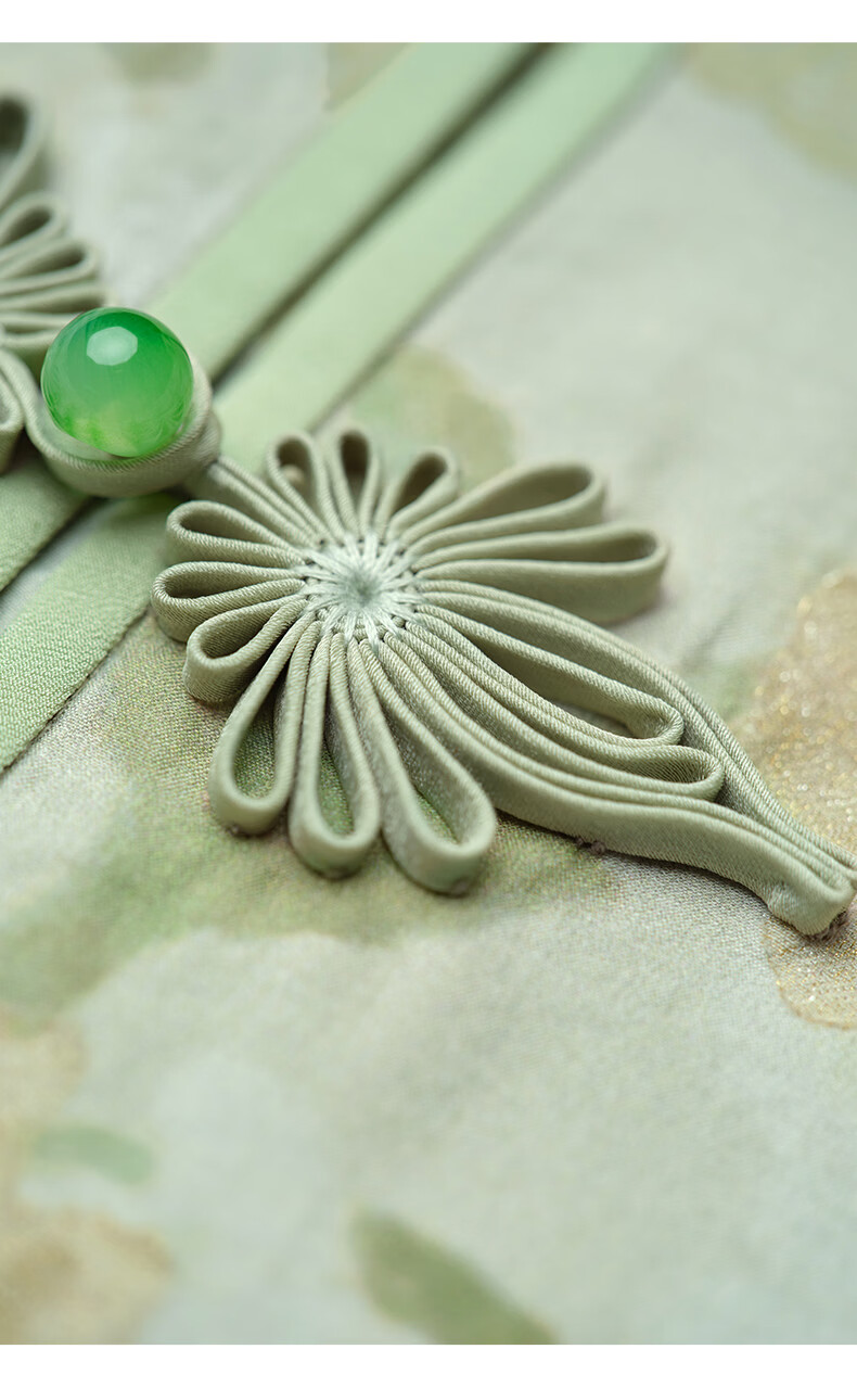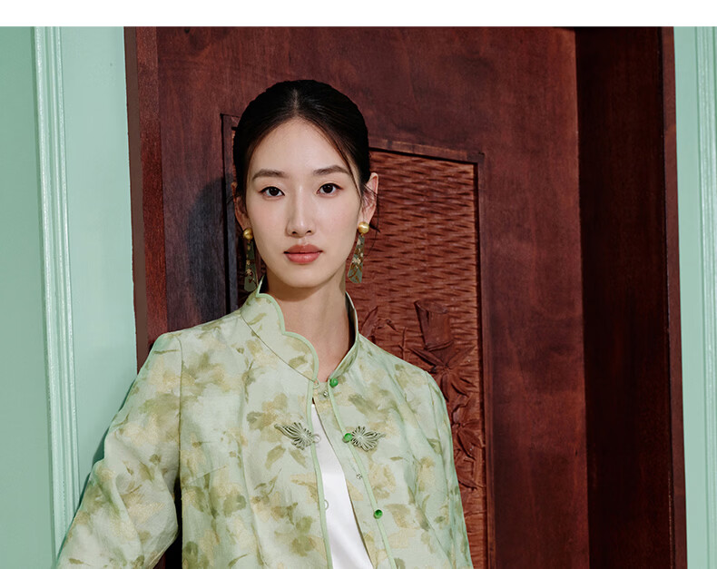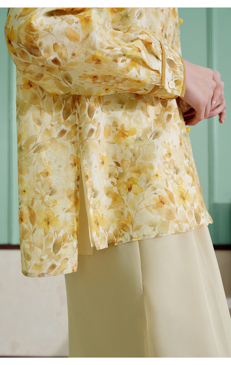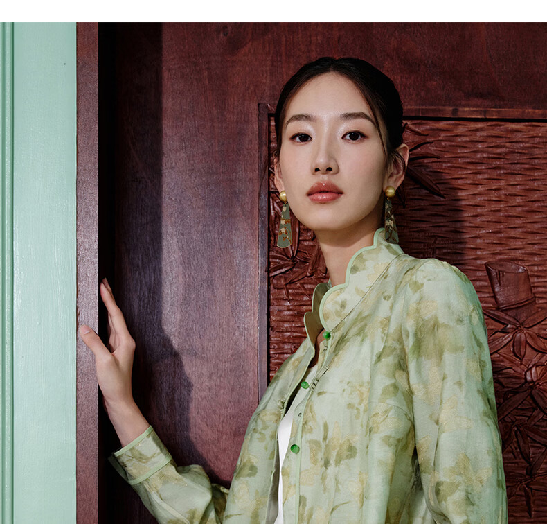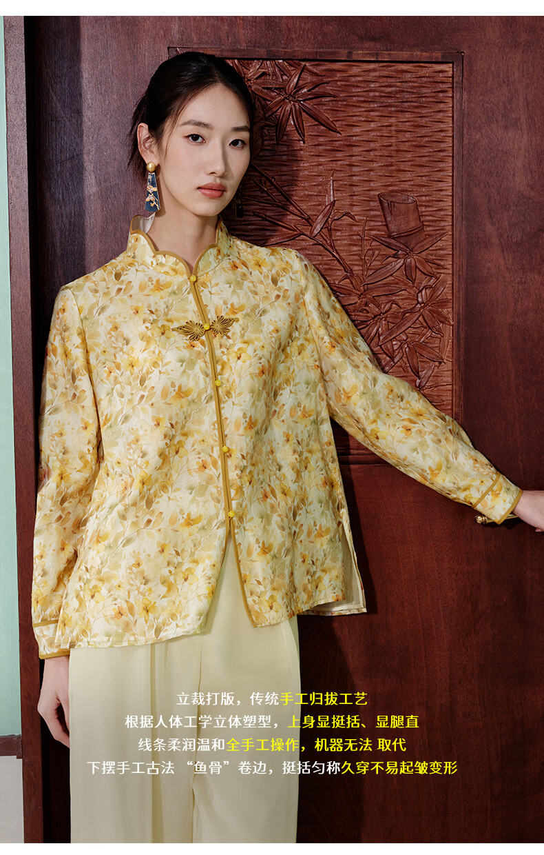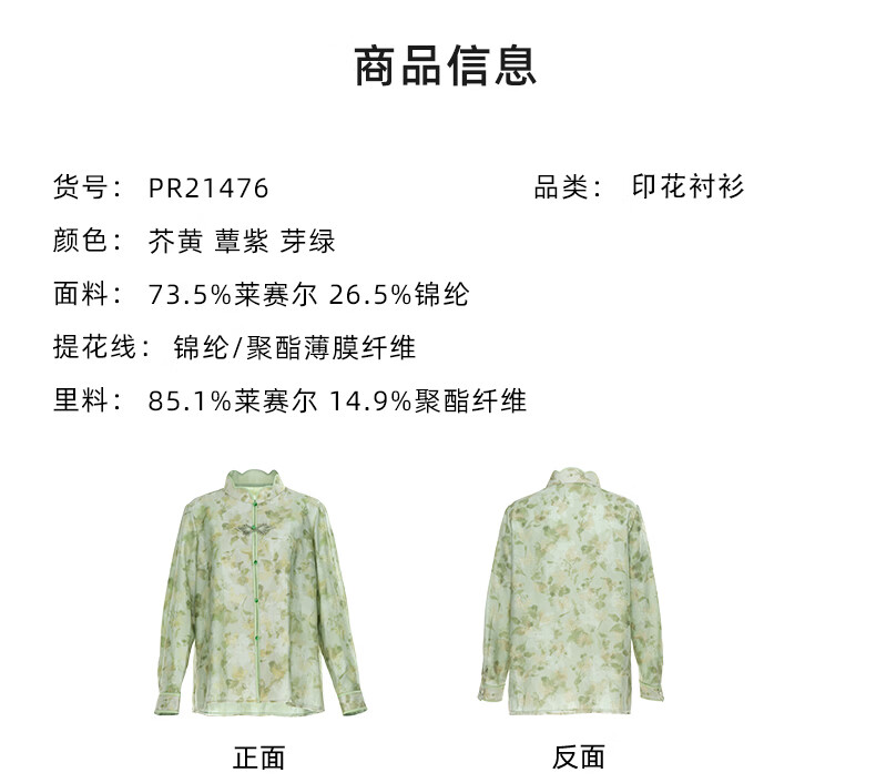 Floral deep plate button new Chinese style shirt for women 2026 new national style lyocell top petal collar printed shirt bud green S
