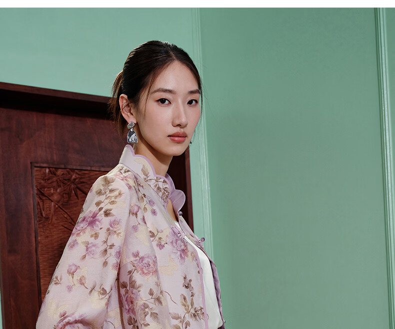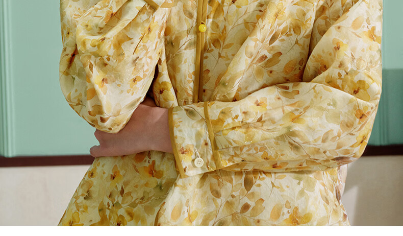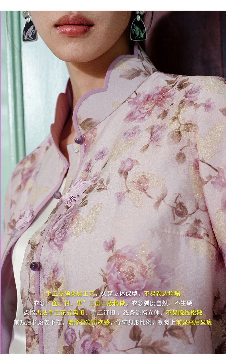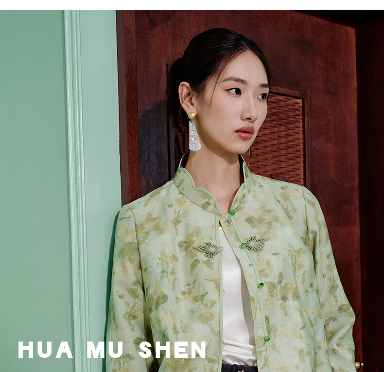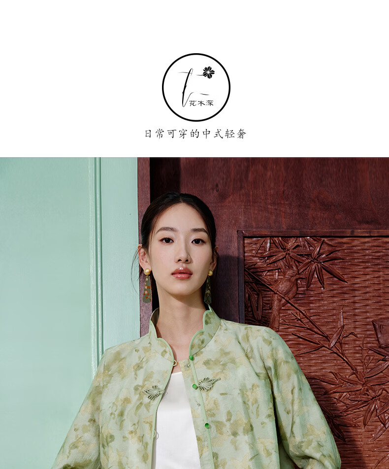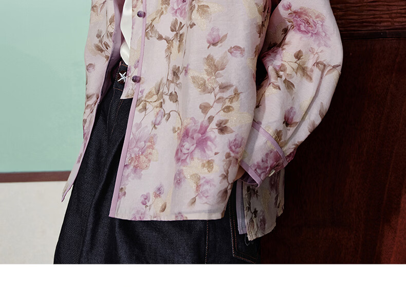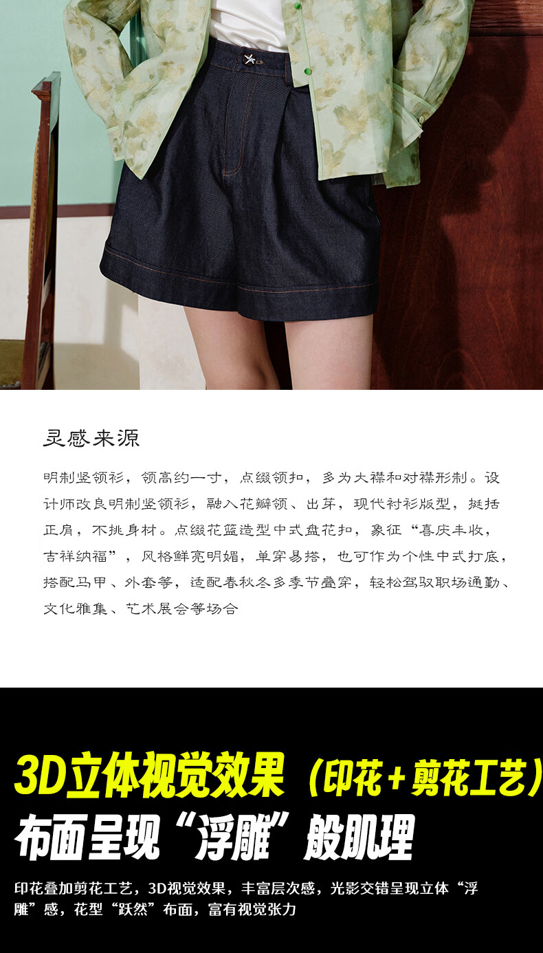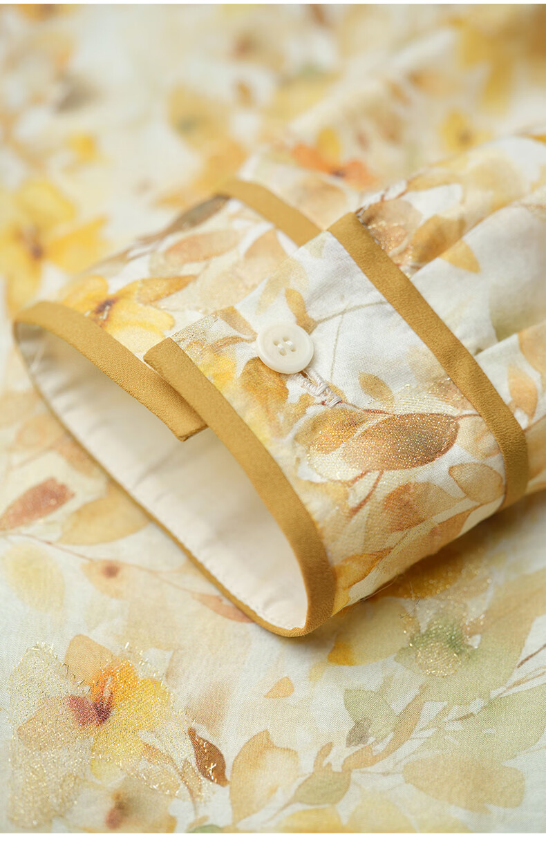 Floral deep plate button new Chinese style shirt for women 2026 new national style lyocell top petal collar printed shirt bud green S