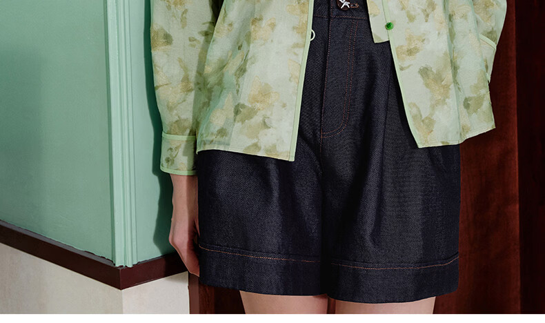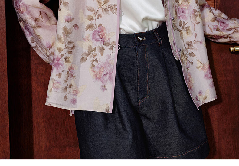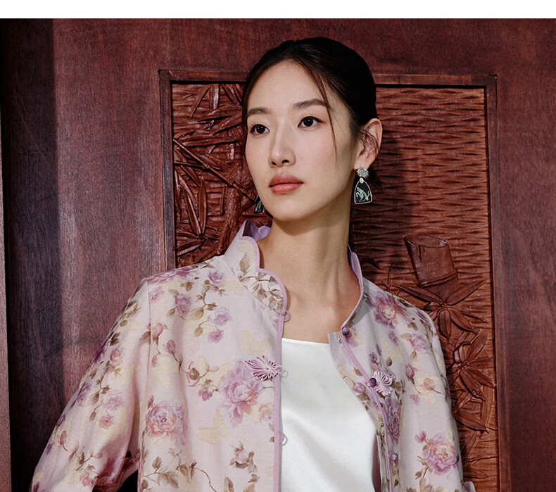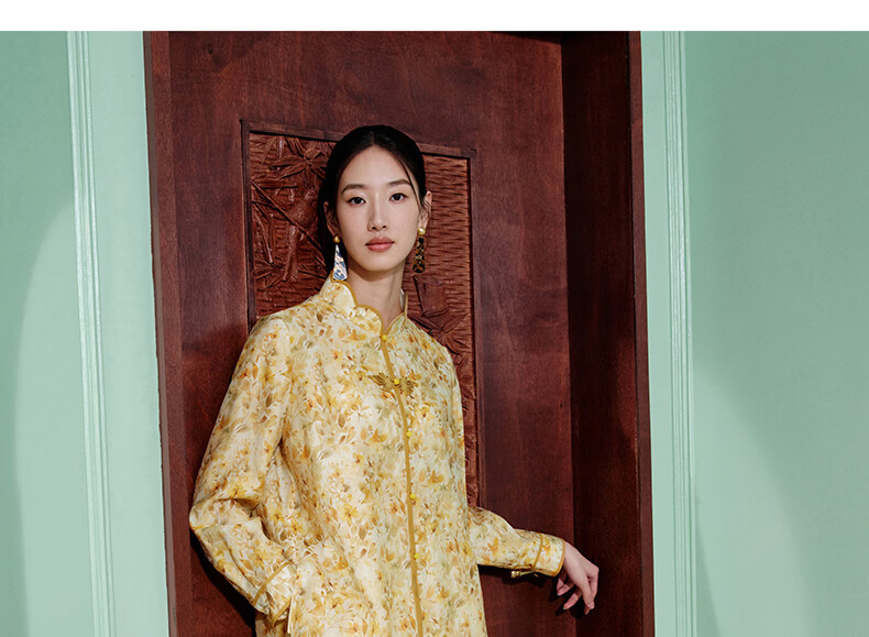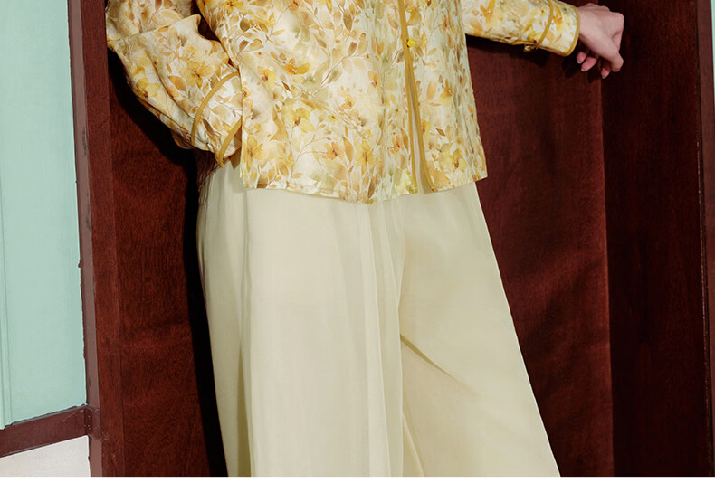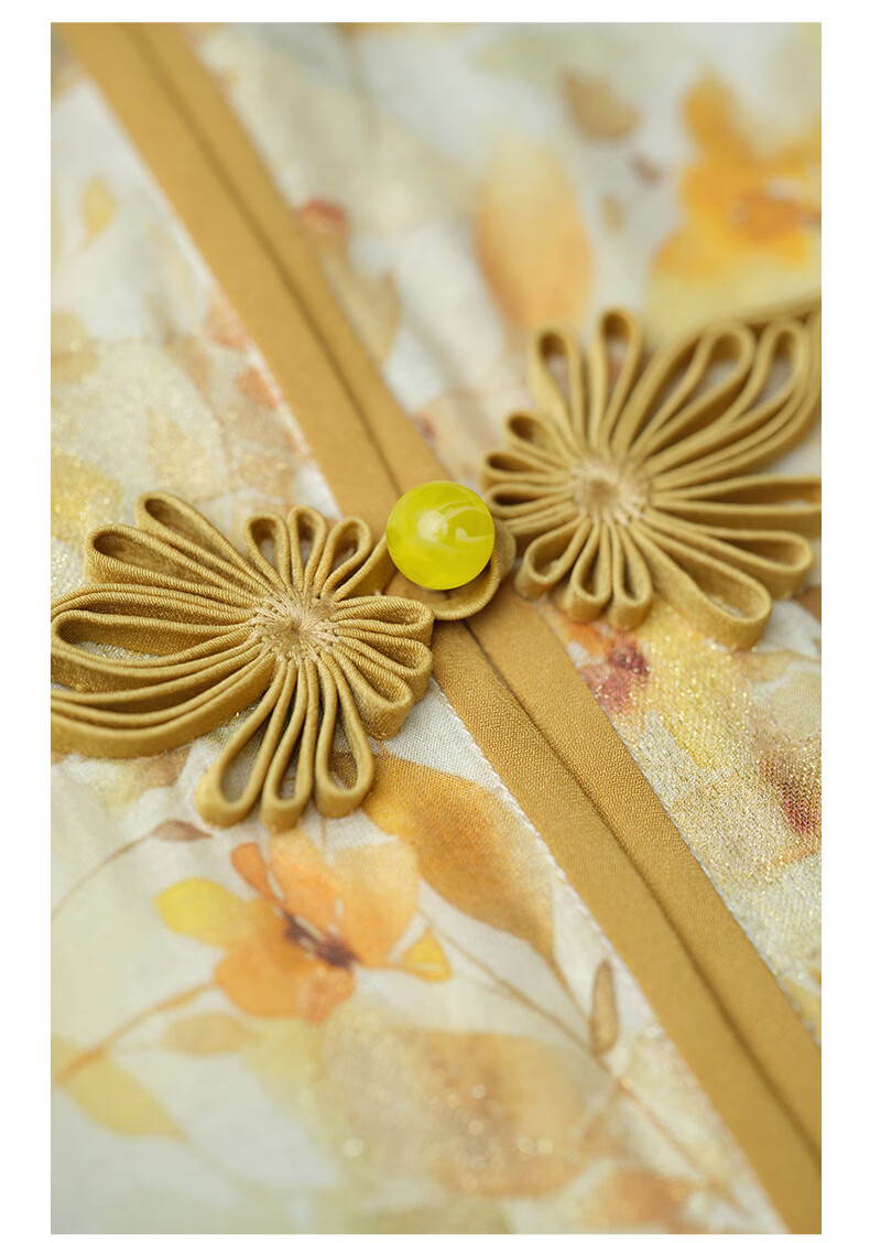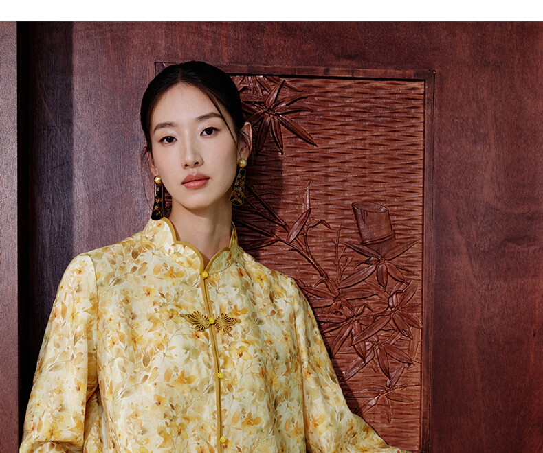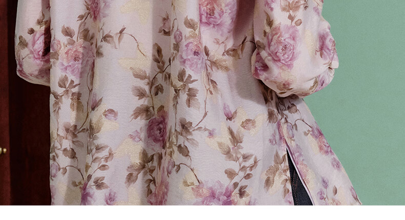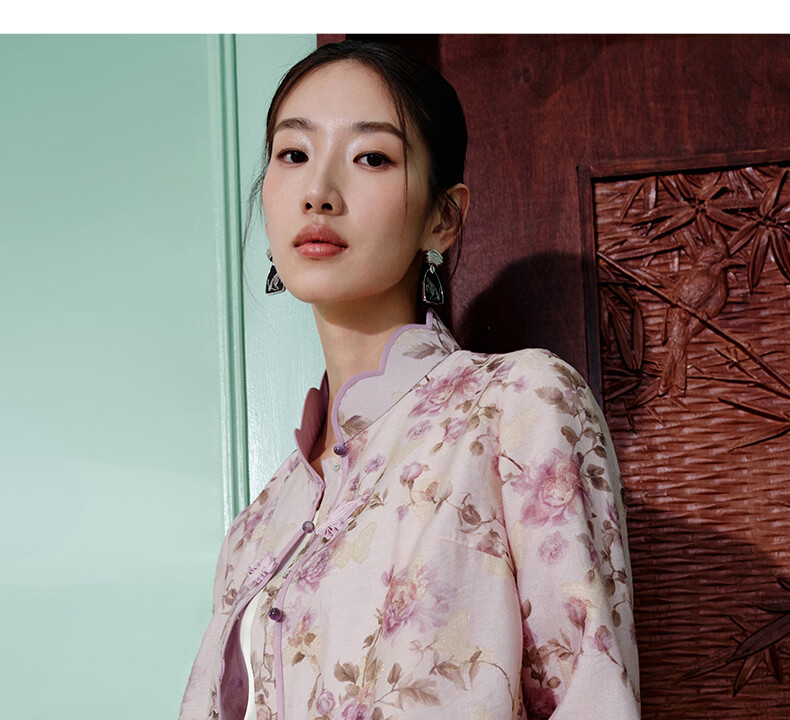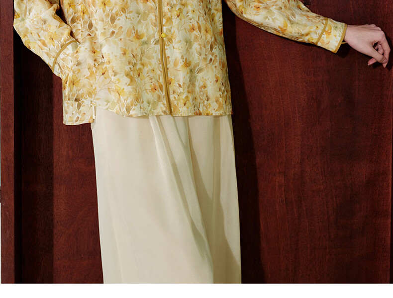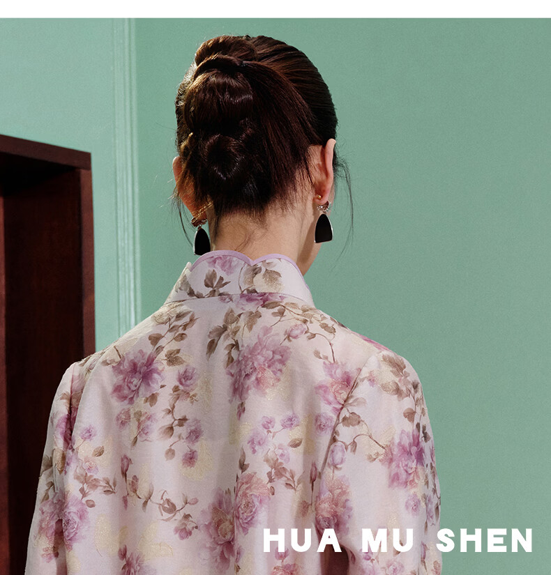 Floral deep plate button new Chinese style shirt for women 2026 new national style lyocell top petal collar printed shirt bud green S