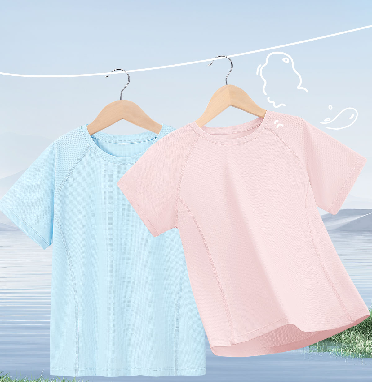 Jeanswest Girls Quick-Drying Short-Sleeve Summer 2026 Thin Children's Ice Silk Sports Half-Sleeve Big Children's Cool Breathable Summer Clothes Ice-Feeling Breathable Hole Short-Sleeve Light Pink/Three Animal Party 120 Recommended Weight 37-45Jin Jin is equal to 0.5 kg