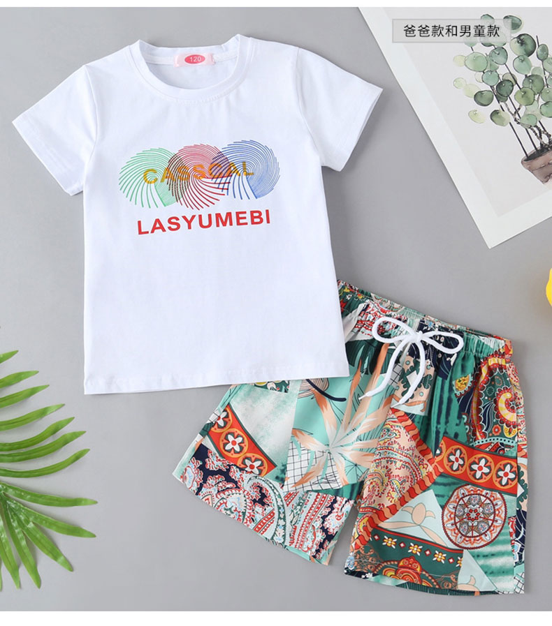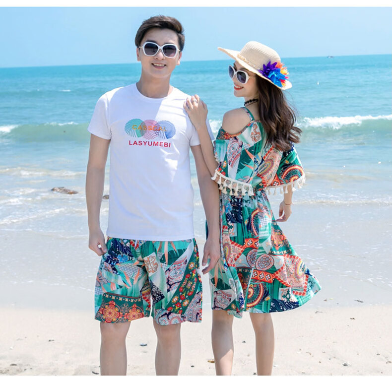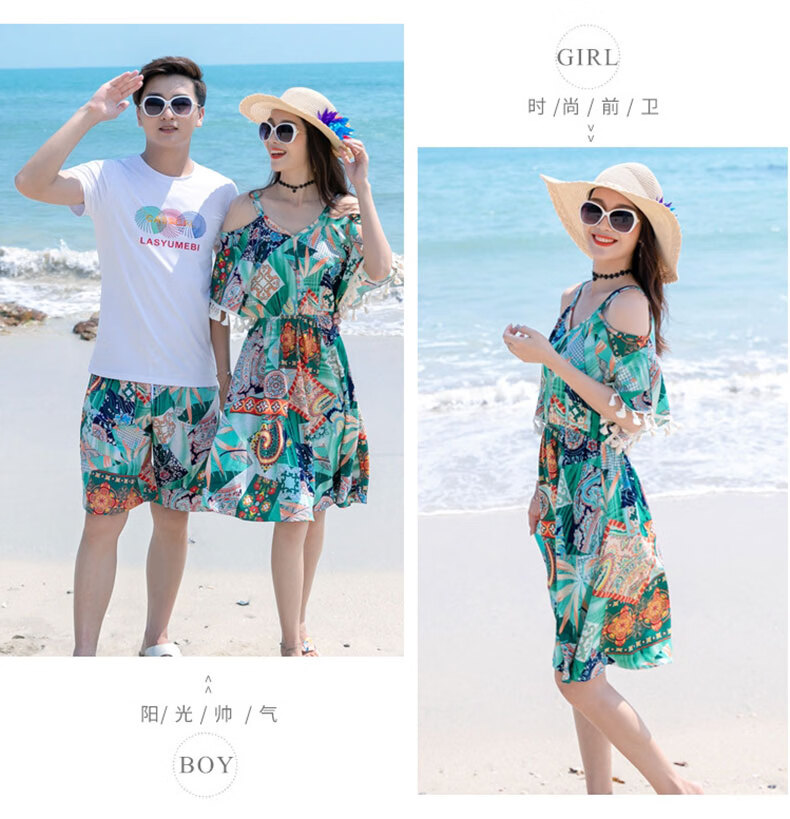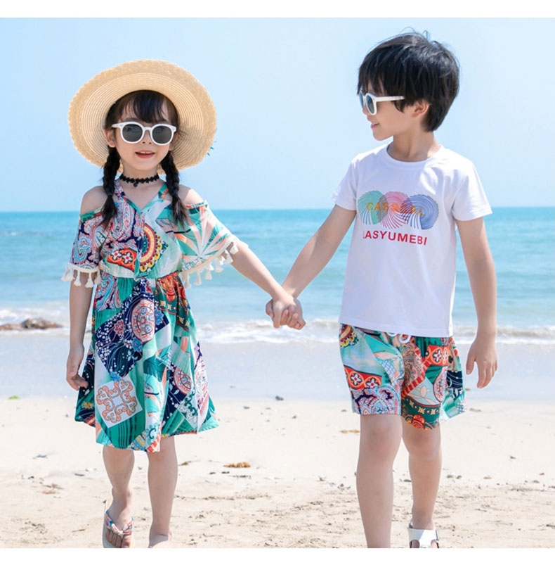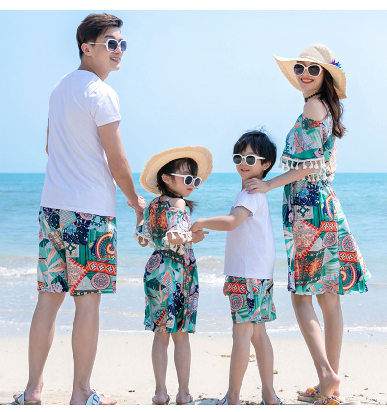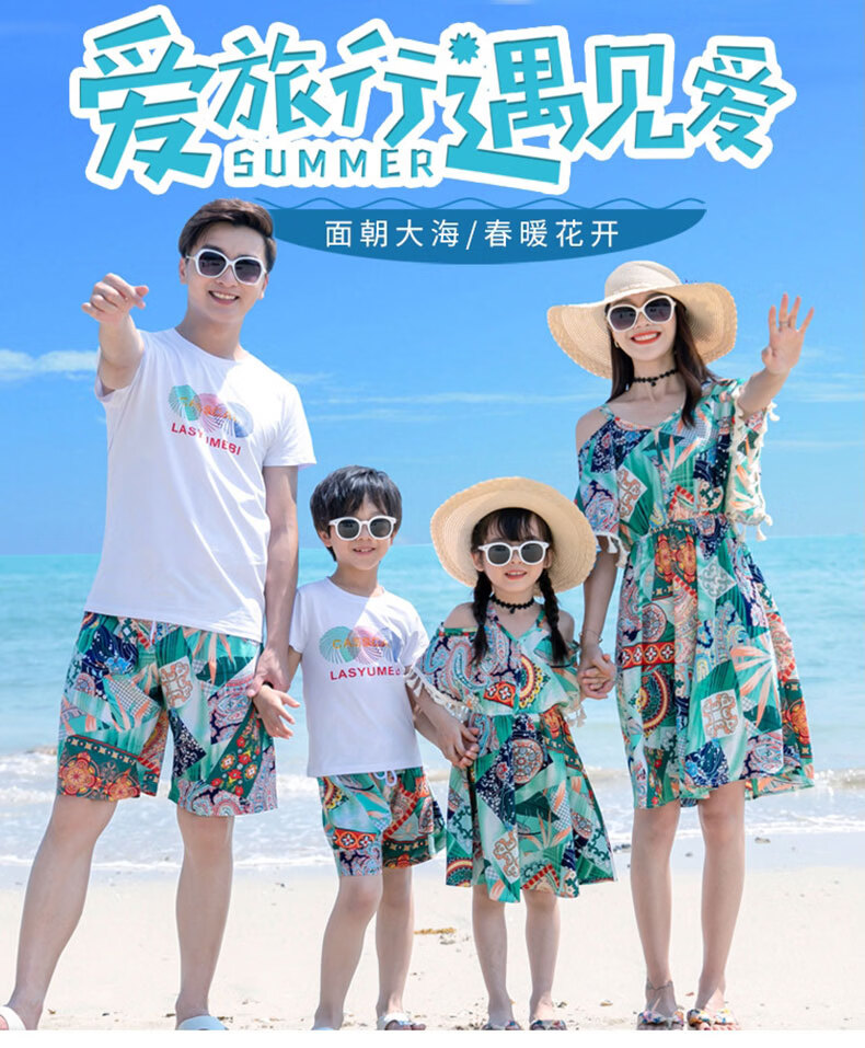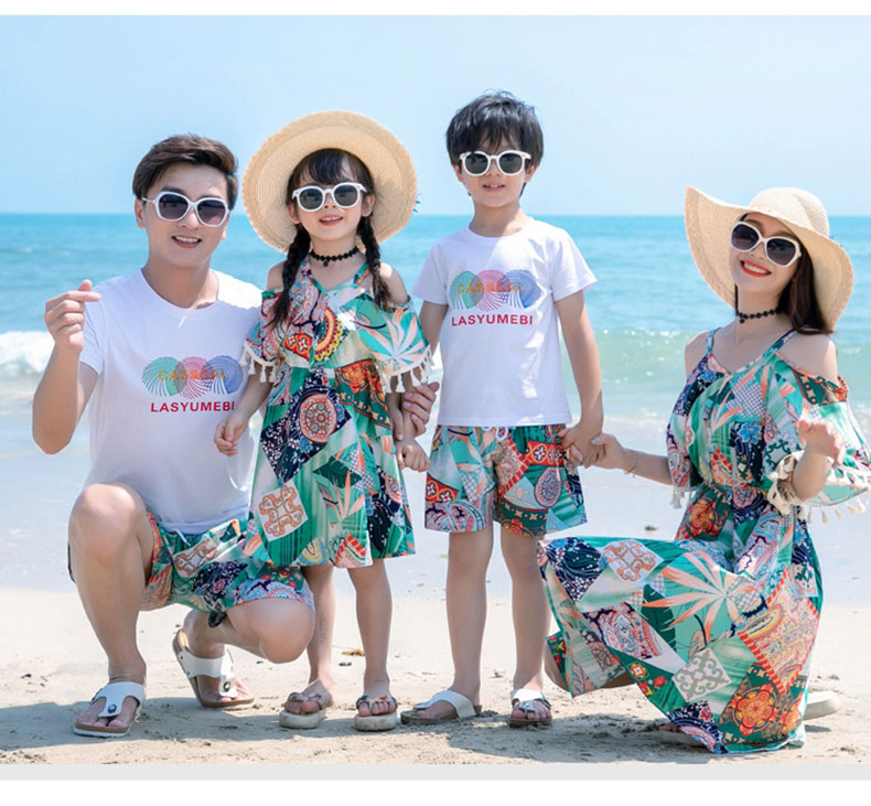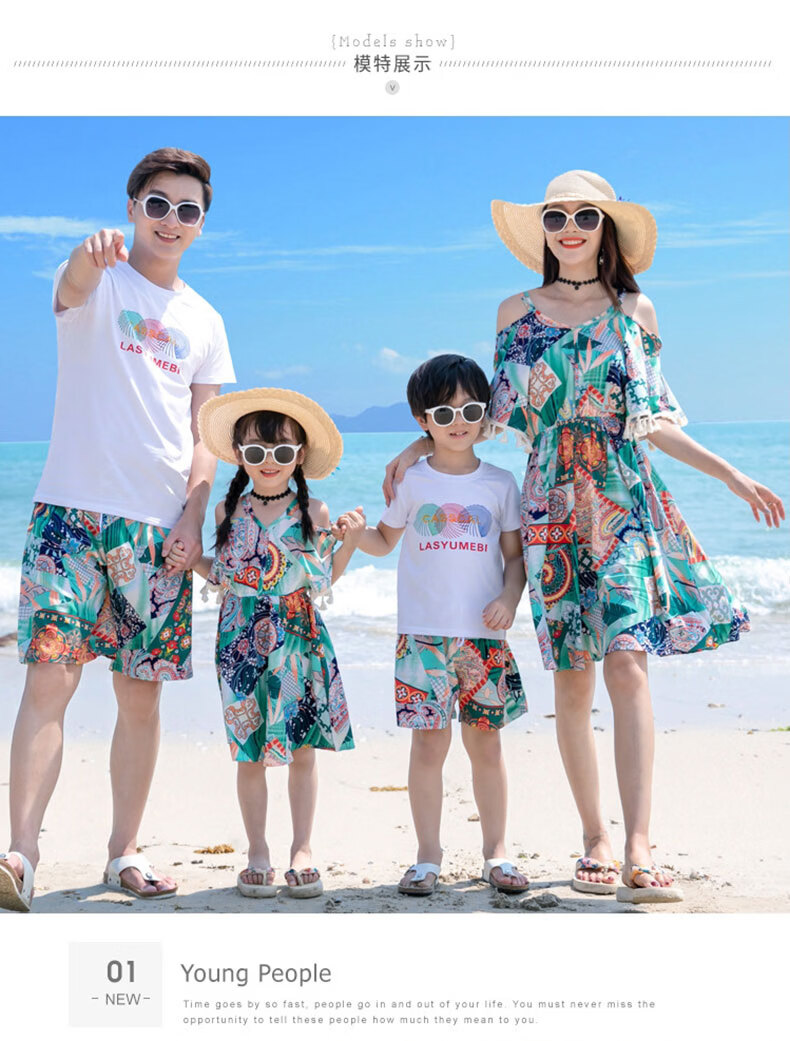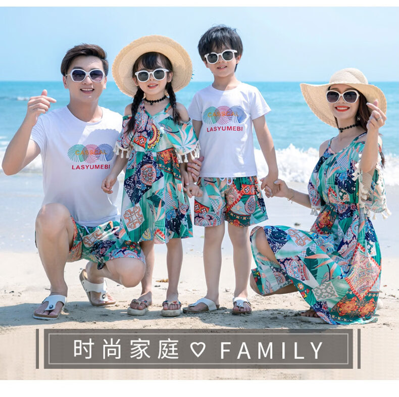 Beach parent-child wear, different mother-daughter dress, suspender short-sleeved suit, summer style for a family of three or four, men's suit/women's dress 160, girl's skirt size 160 (recommended weight 78 Jin Jin equals about 0.5 kg)
