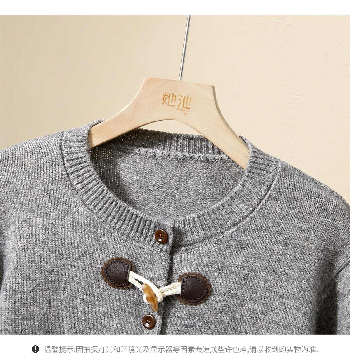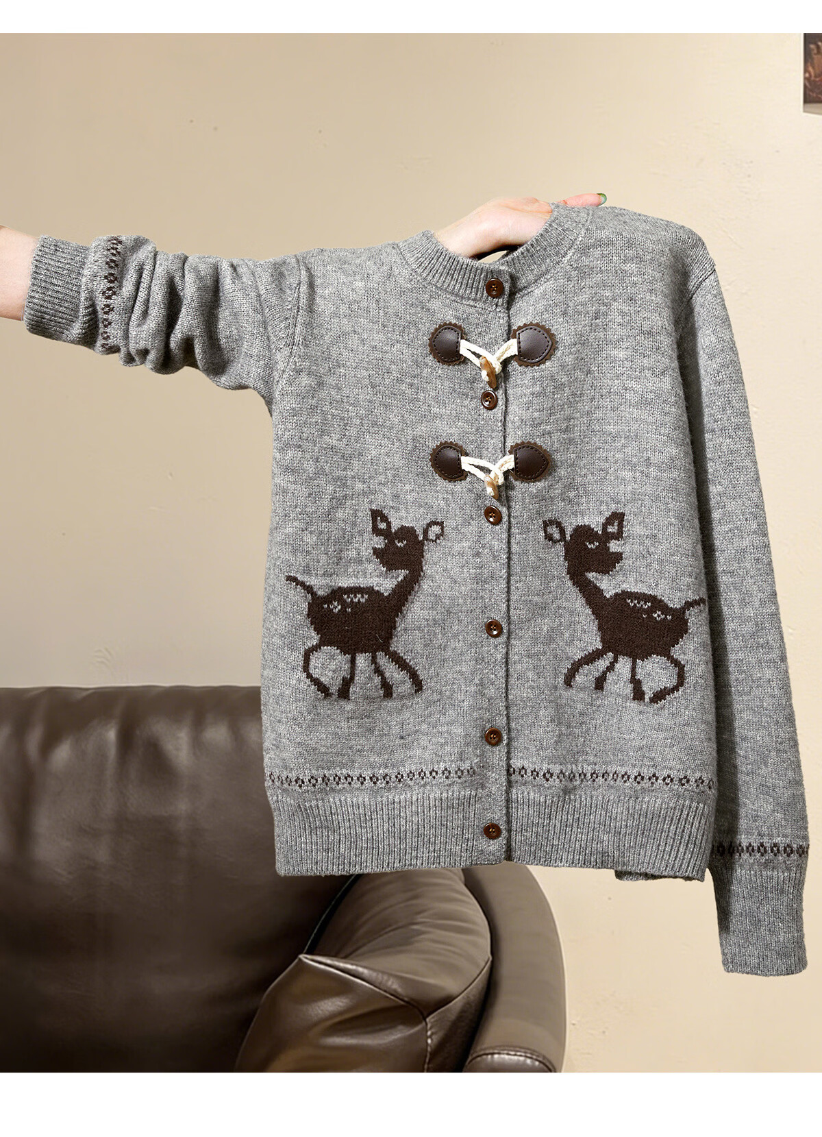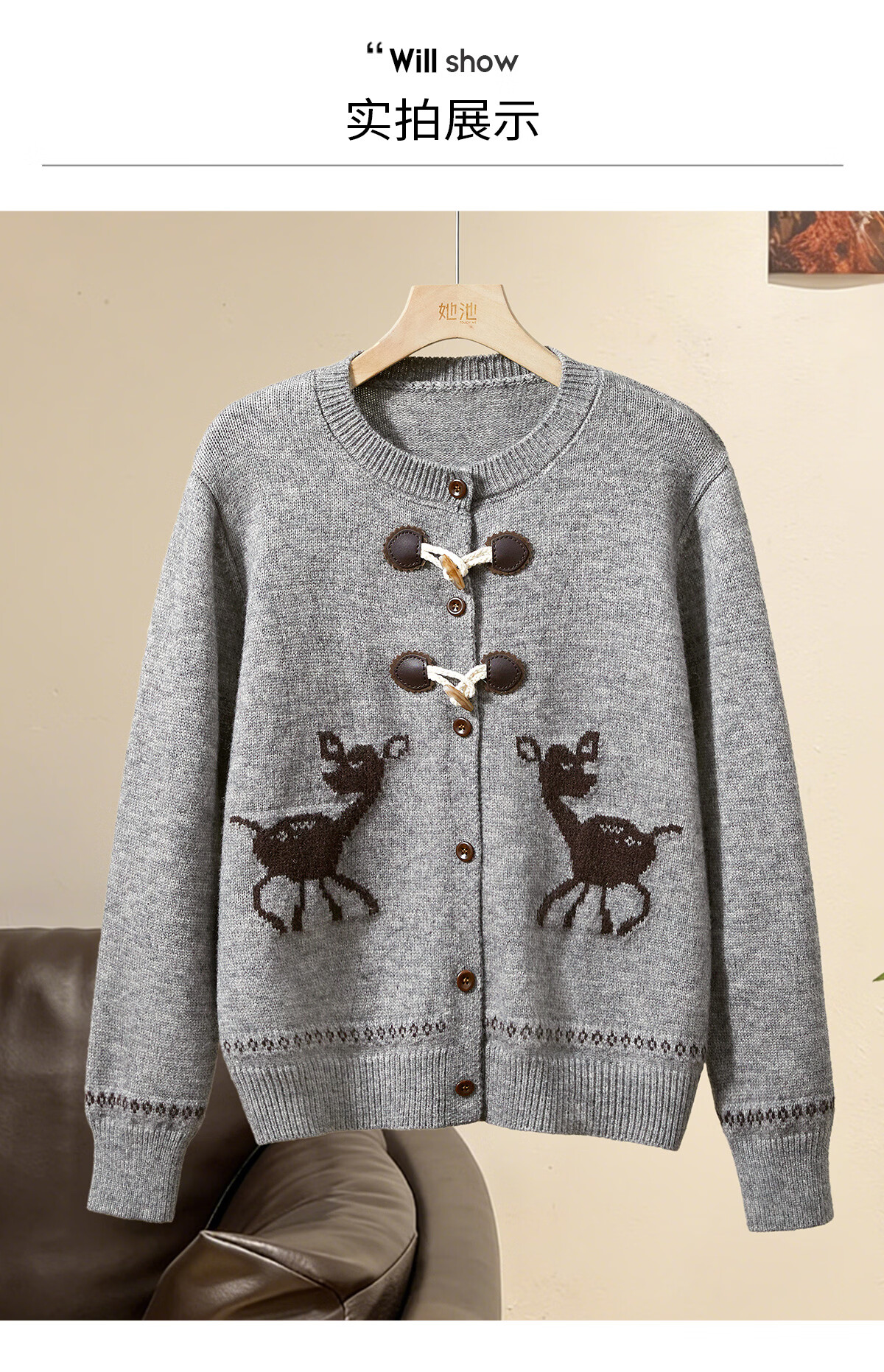 Shechi Knitted Cardigan 2026 Spring New Women's Retro Casual Style Long Sleeve Round Neck Single Breasted Cropped Top Gray One Size