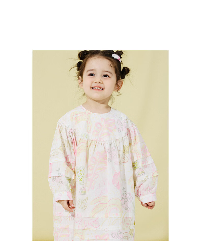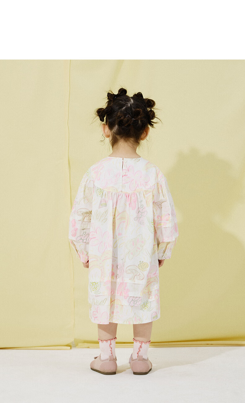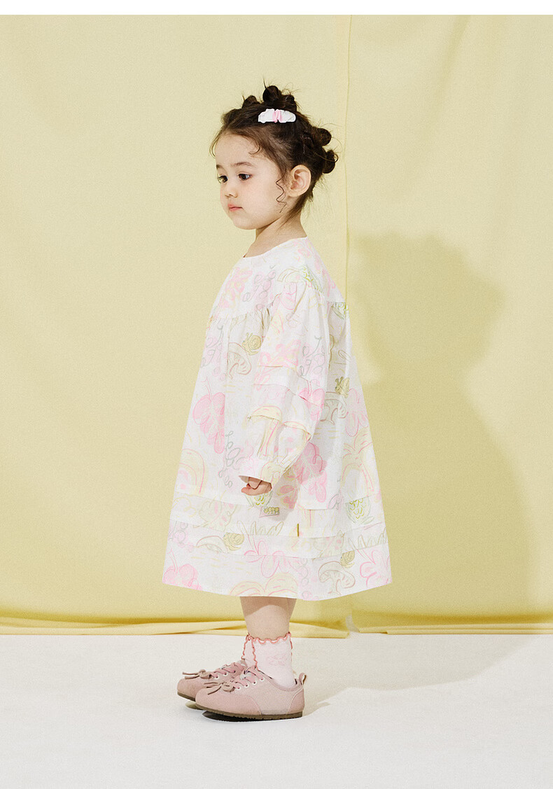 Papa new product climbing spring children's skirt girls pure cotton dress comfortable and breathable unique hand-painted style pink 90