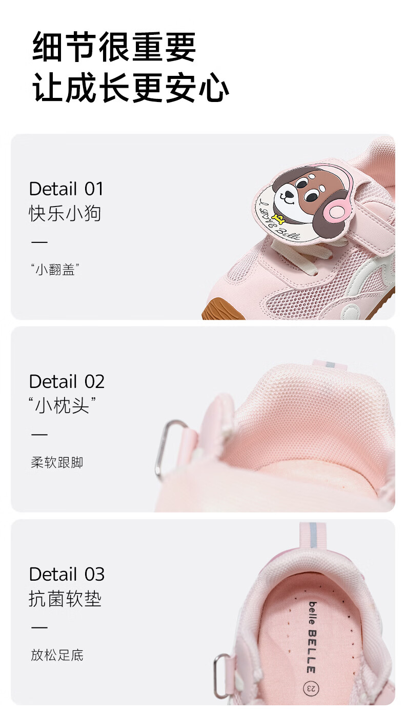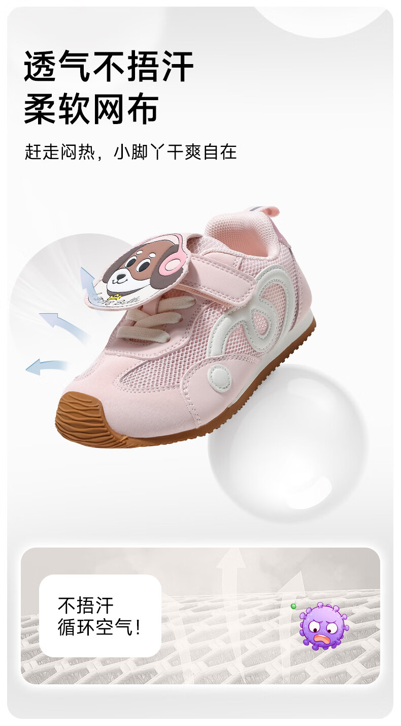 Belle children's shoes 26 spring new arrival boys' cute puppy sneakers girls' single mesh breathable casual shoes children's toddler shoes pink 23 suitable for feet about 14-14.5cm long
