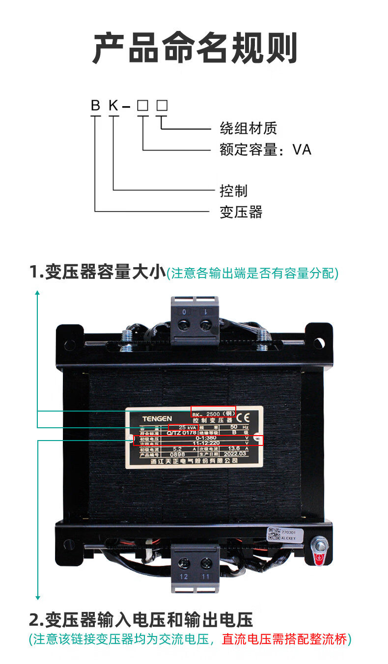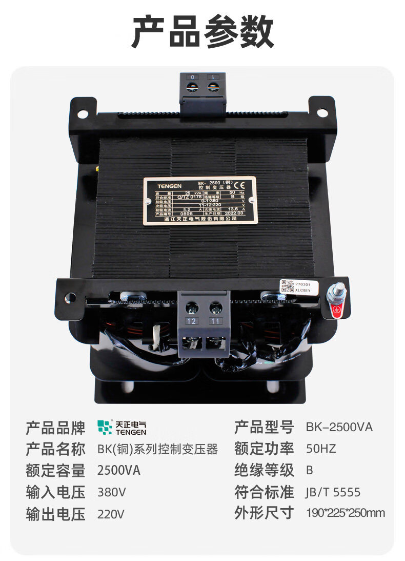 Tianzheng BK-2500VA single-phase AC control transformer 380V to 220V 36V 24V voltage optional all-copper BK-2500 24V 220V