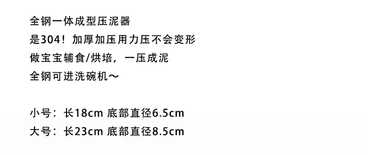 Yusen Yi Minuojia 304 stainless steel mashed potato masher artifact 304 press mashing egg food supplement mashing and rolling tool 304 all-steel thickened potato masher (small size)