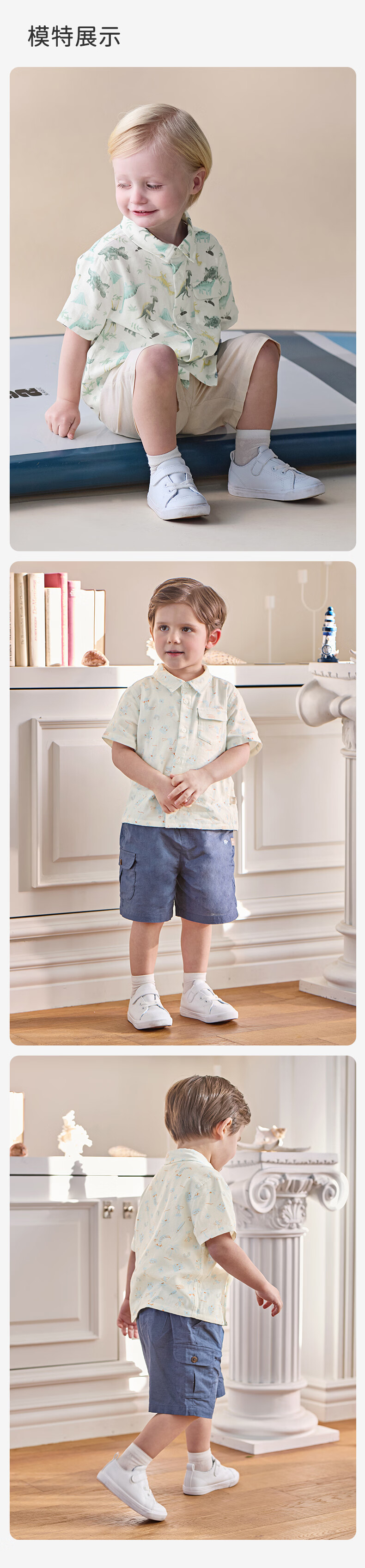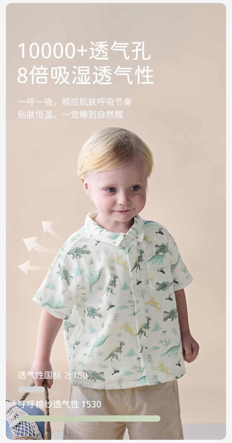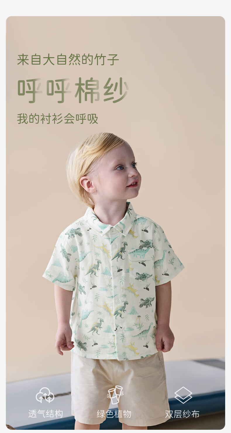 DAVE&BELLA boys' shirts 2026 summer new children's moisture-absorbent quick-drying shirts baby boys' short-sleeved tops children's bottoming shirts Dinosaur Forest ready stock 100 cm (recommended height 90-100cm)