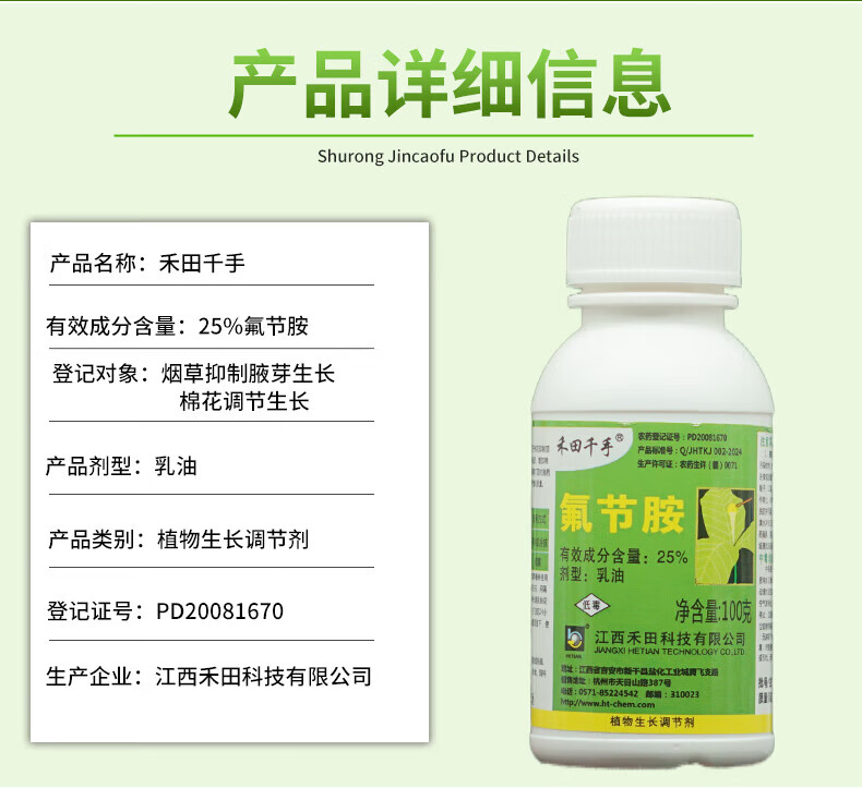 Hetian Qianshou flumetrazine tobacco, citrus and cotton topping agent, bud-inhibiting and shoot-controlling drug, bud-killing pesticide growth regulator 100g*20 bottles