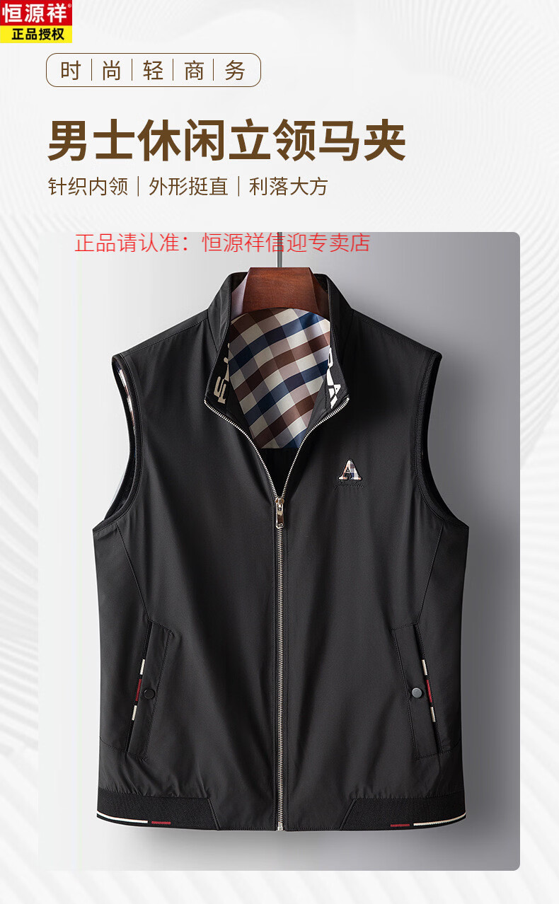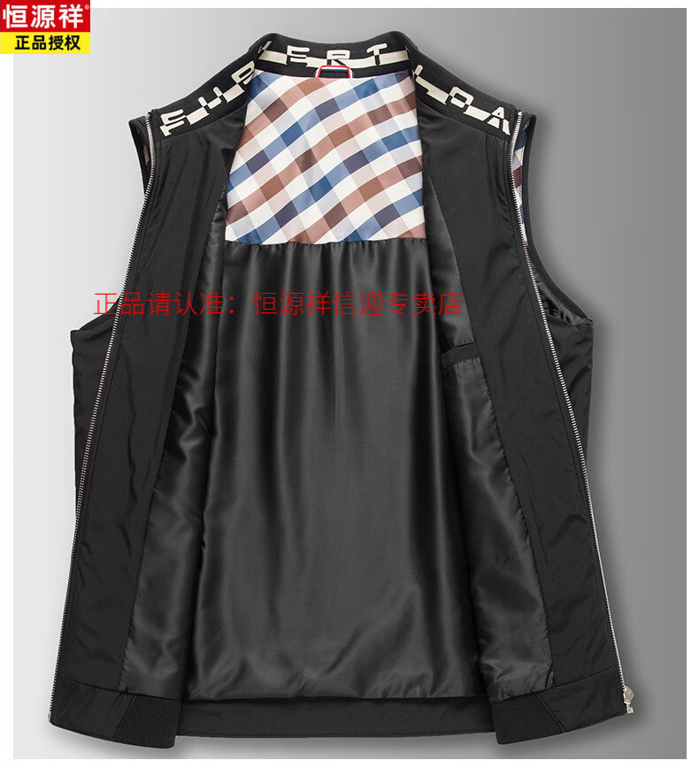 Hengyuanxiang Men's Vest Light Luxury Fashion 2026 Spring and Autumn New Sleeveless Vest Vest Men's Casual Vest Men Black 3XL 190