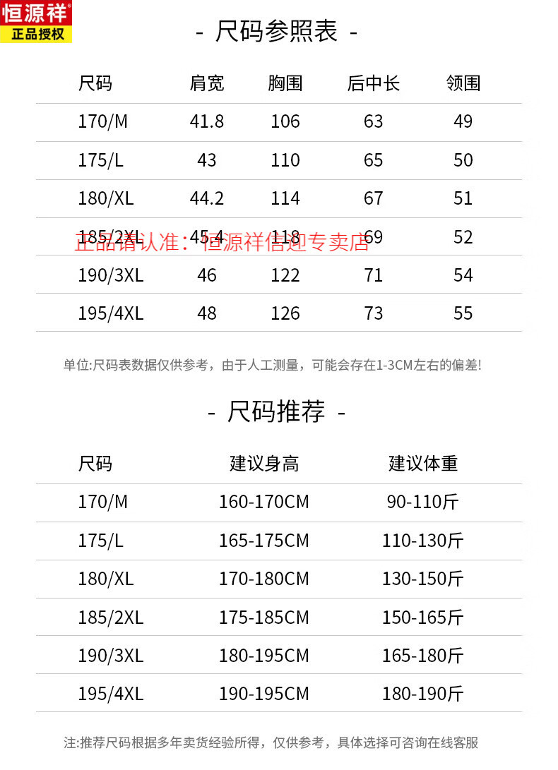 China (cm) 165 / 88-90 170 / 96-98 175 / 108-110 180 / 118-122 185 / 126-130