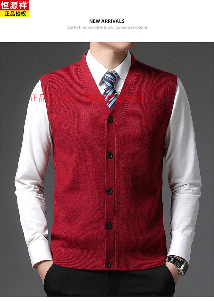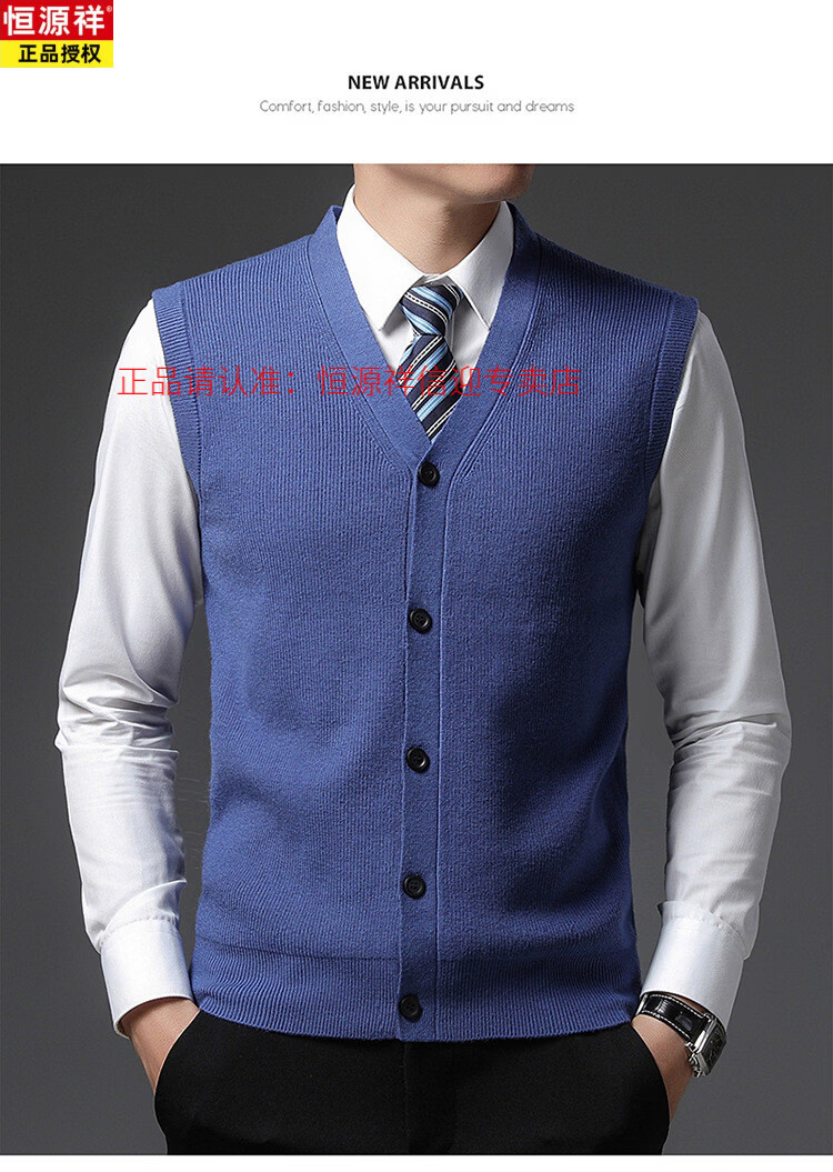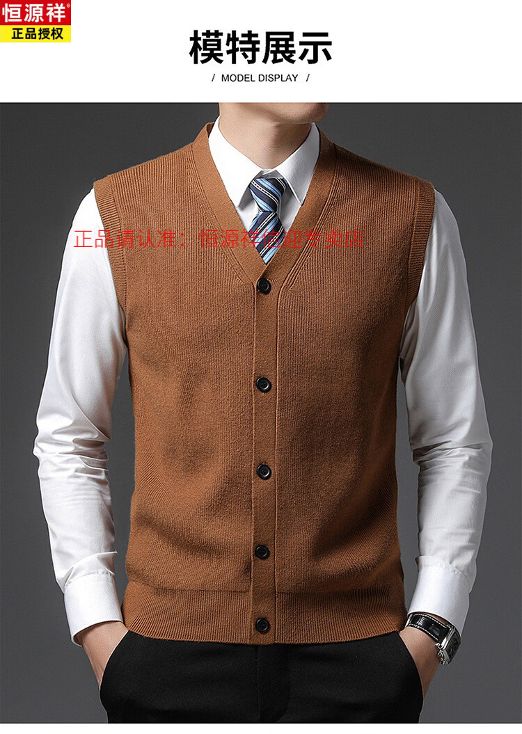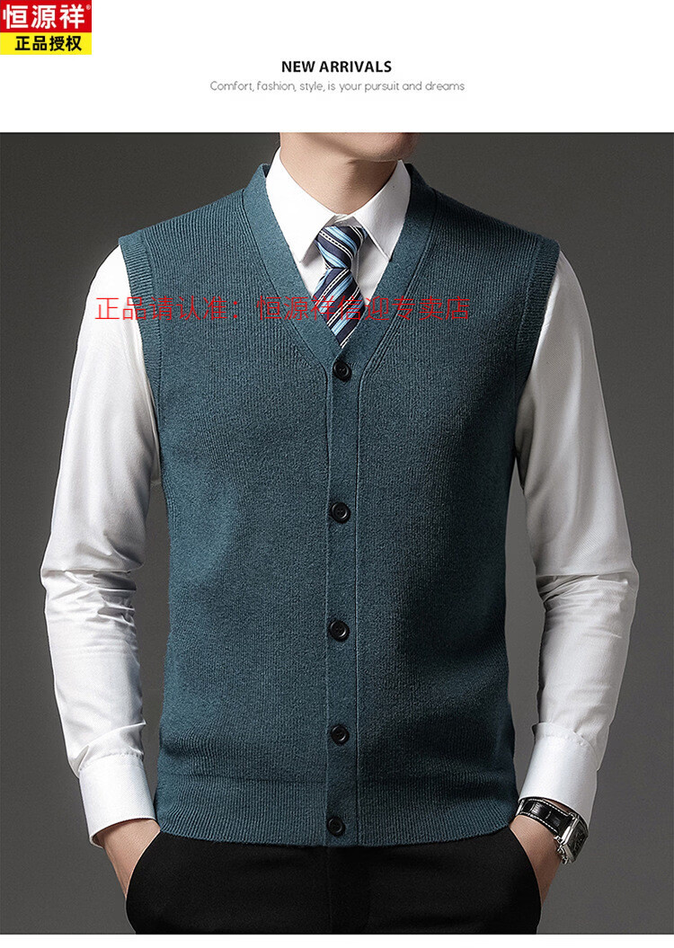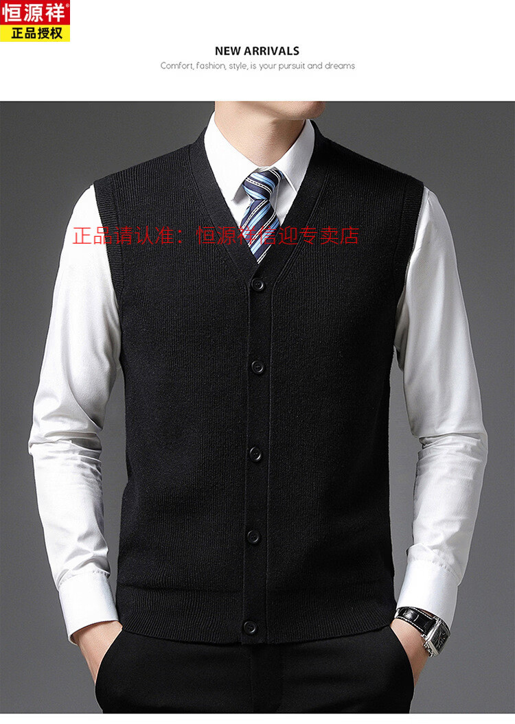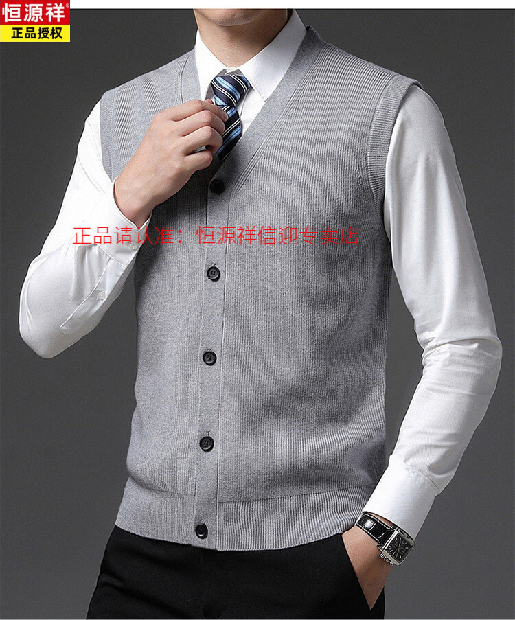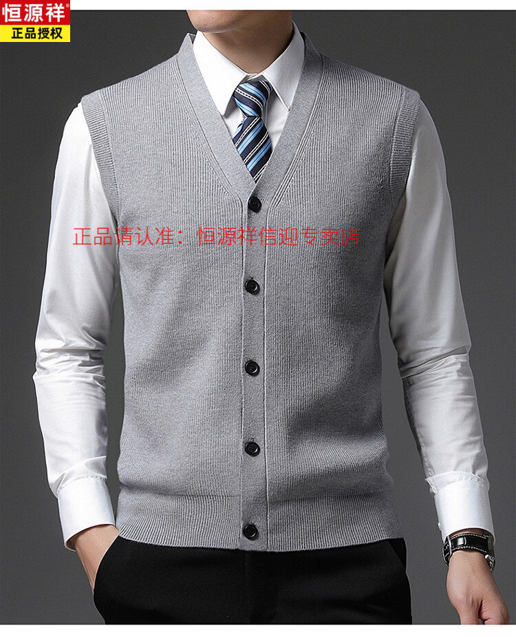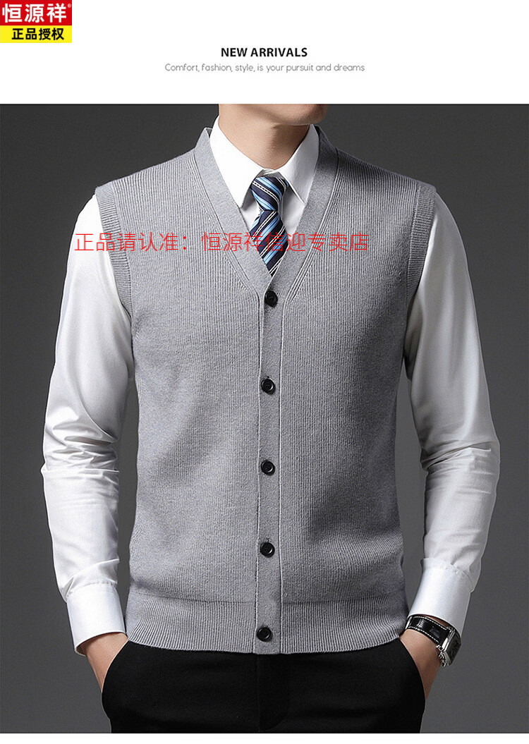 Hengyuanxiang 2026 new striped jacquard spring and autumn new men's vest business middle-aged knitted men's thickened cardigan gray 3XL
