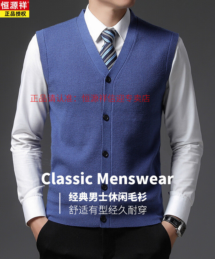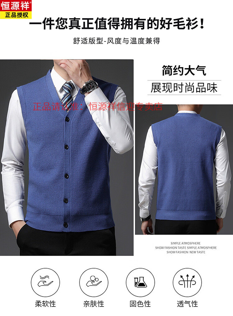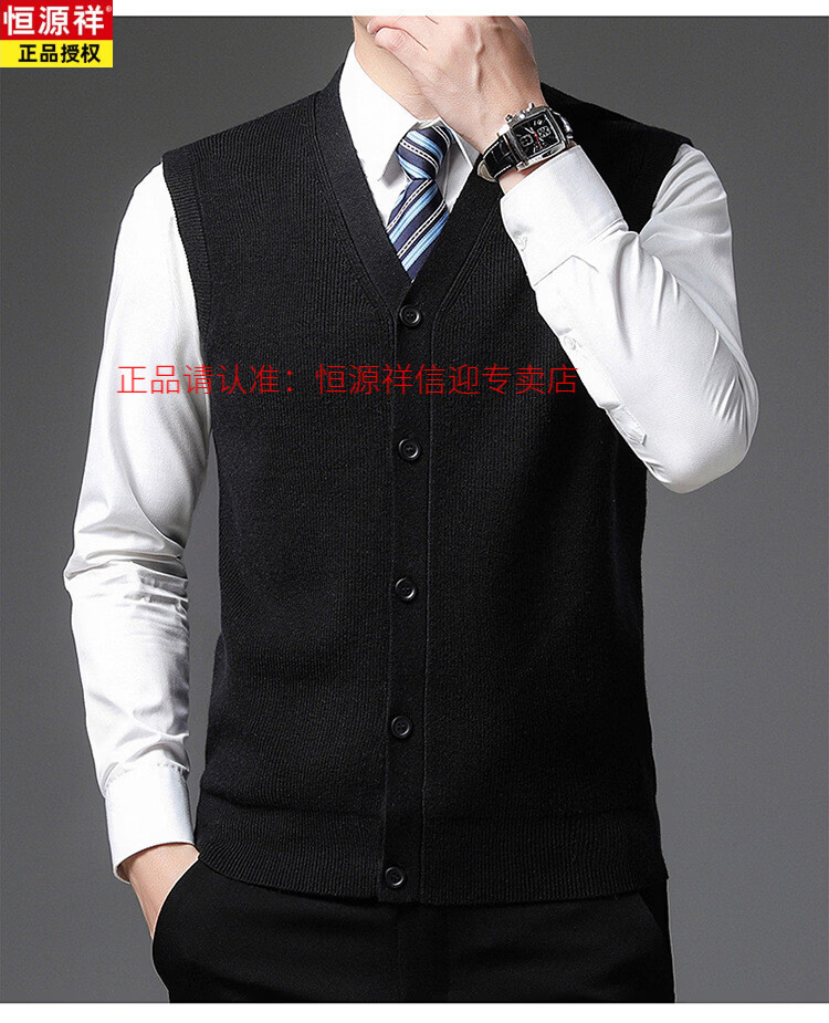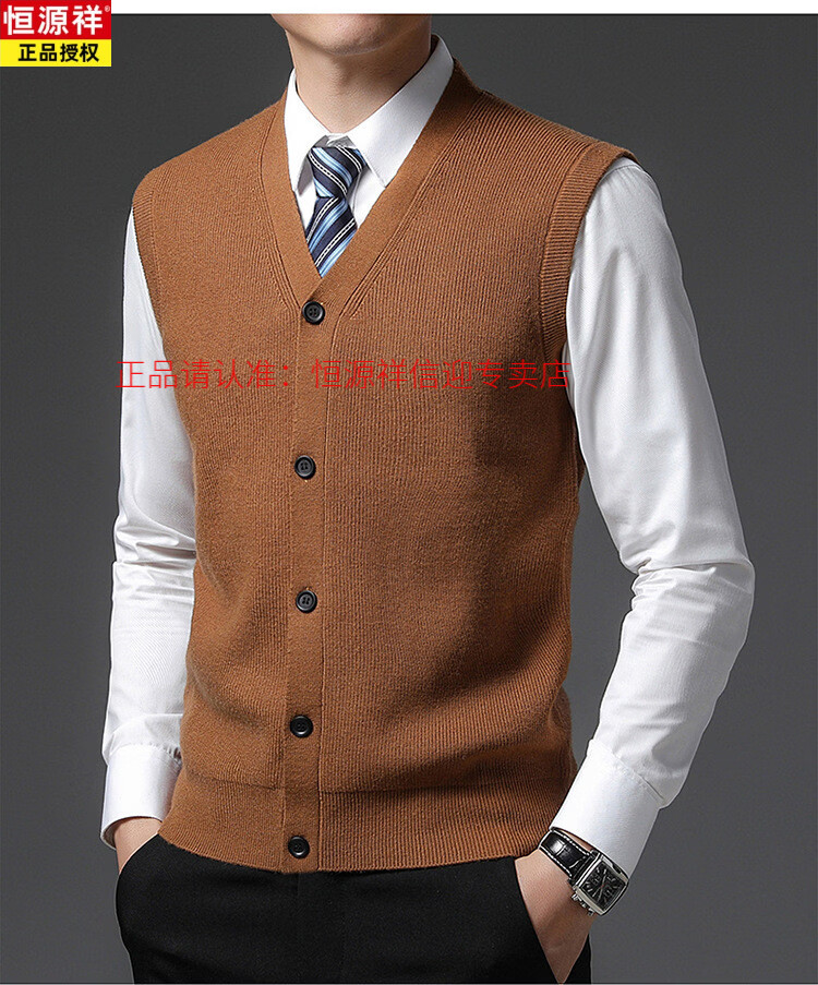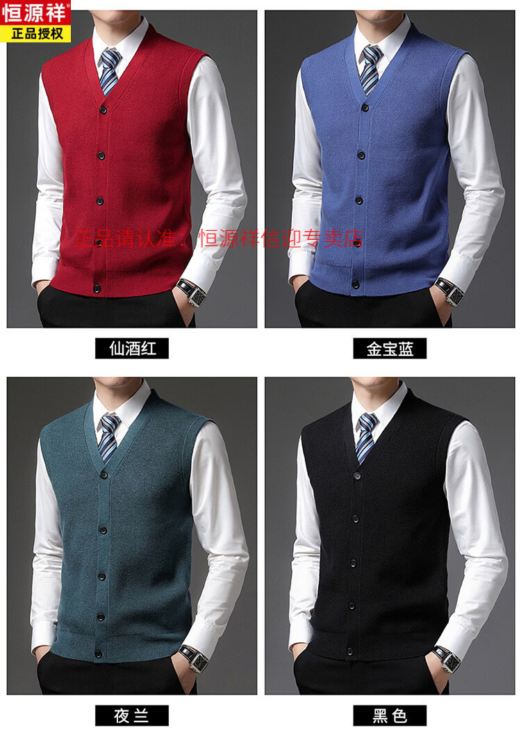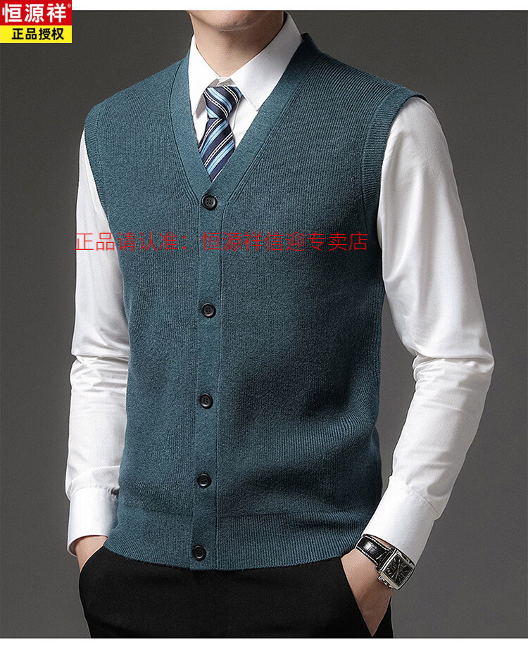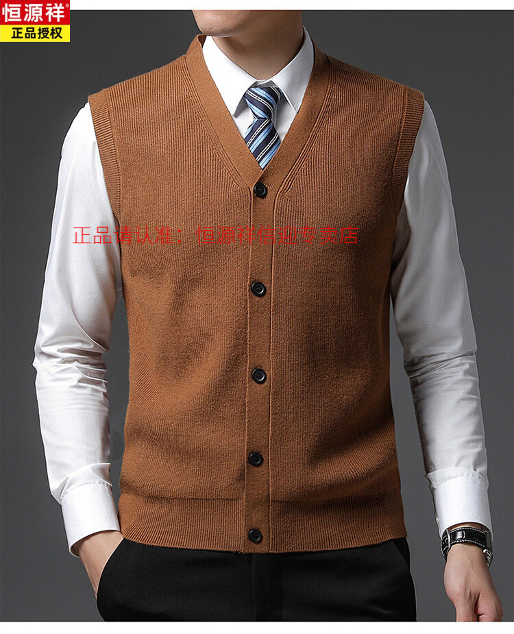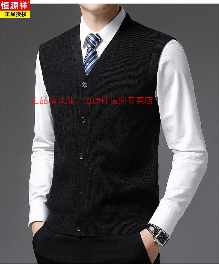 Hengyuanxiang 2026 new striped jacquard spring and autumn new men's vest business middle-aged knitted men's thickened cardigan gray 3XL