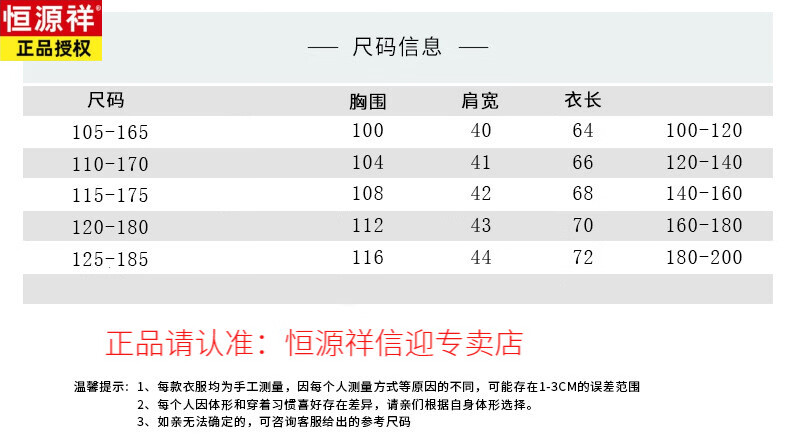 China (cm) 165 / 88-90 170 / 96-98 175 / 108-110 180 / 118-122 185 / 126-130