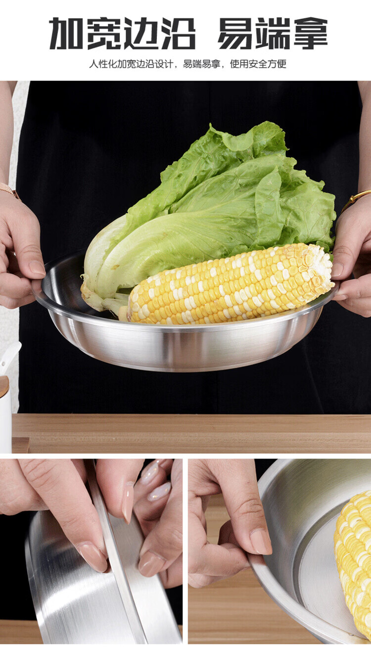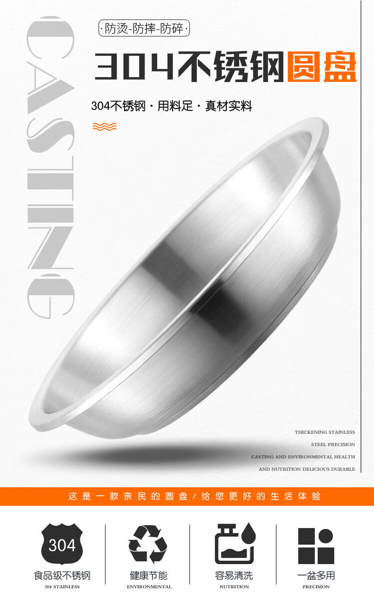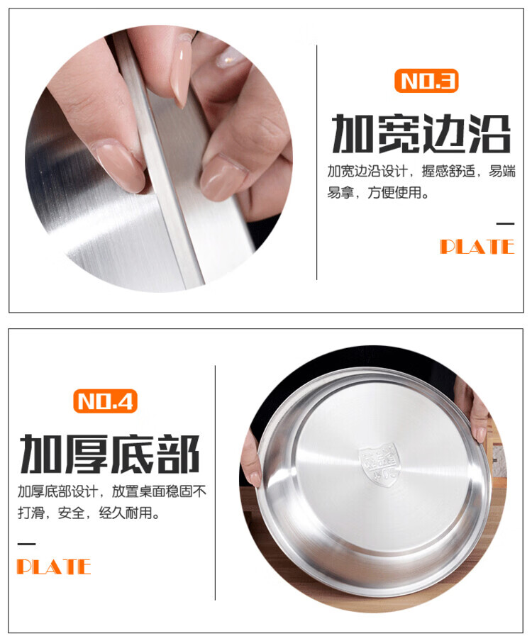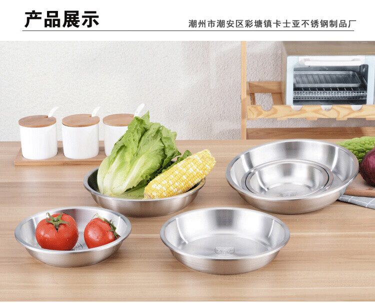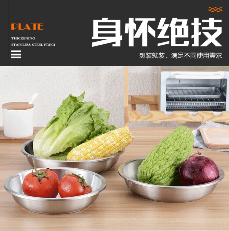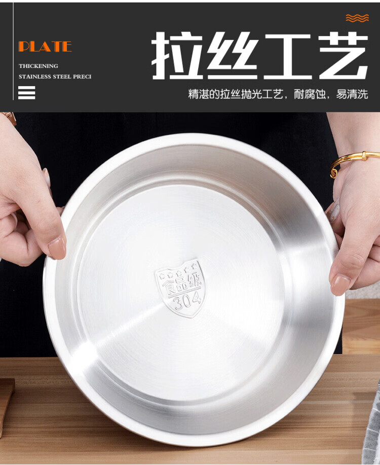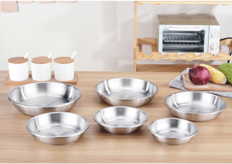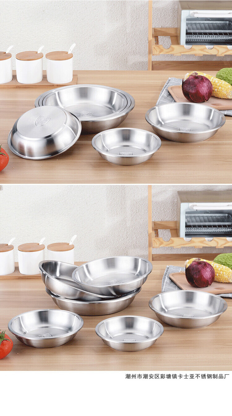 Miaopule 304 stainless steel plate, kitchen preparation plate, deep plate, household vegetable plate, fruit plate, thickened stainless steel dinner plate, sanded inside and outside 20CM