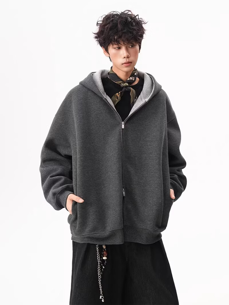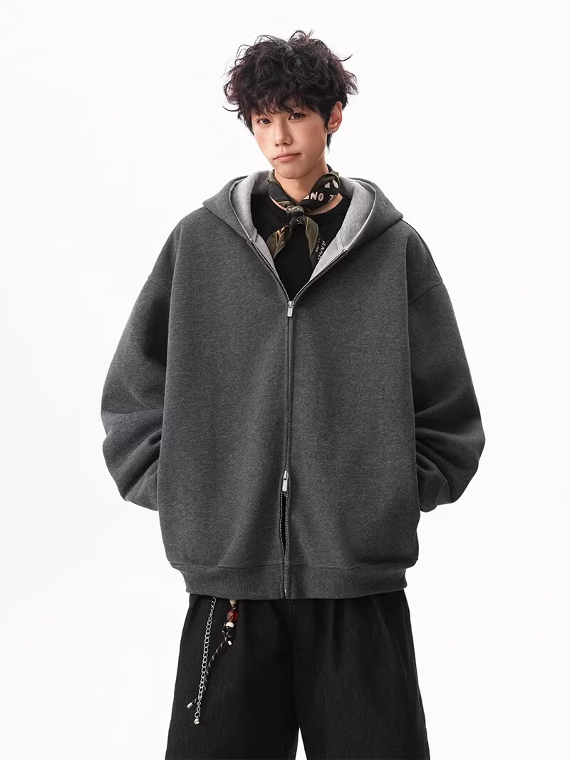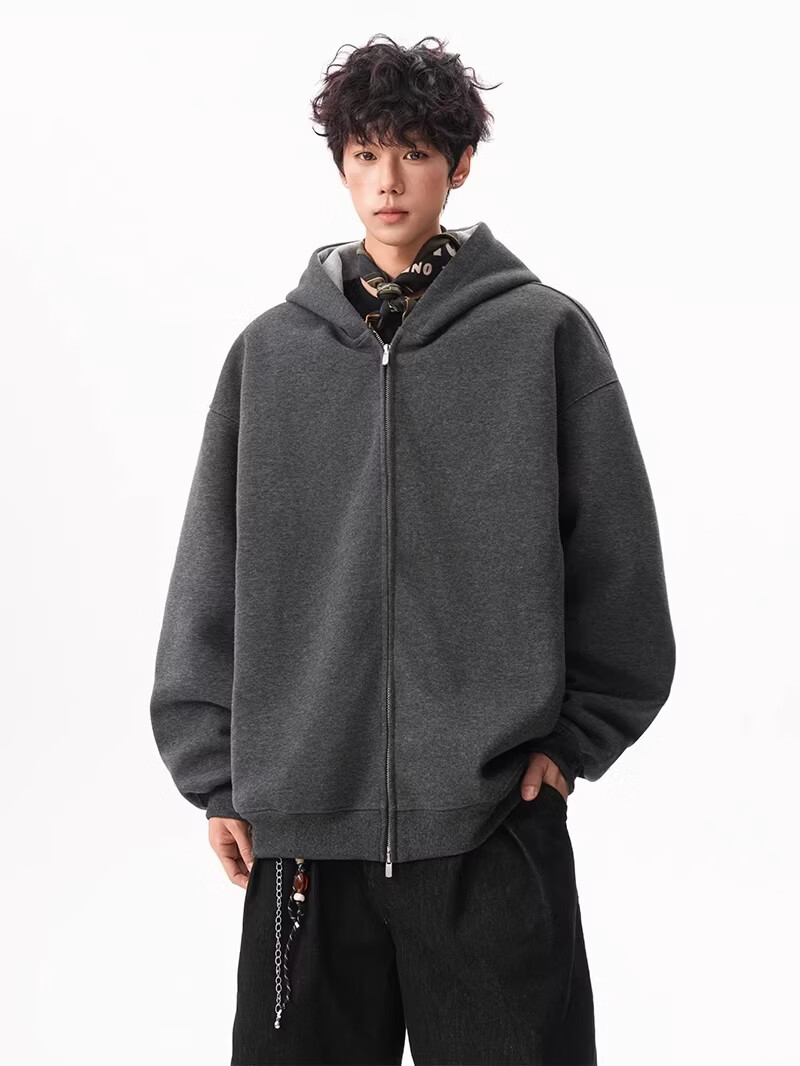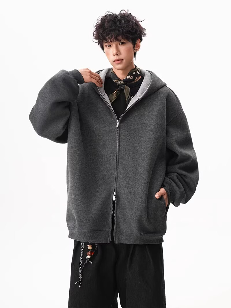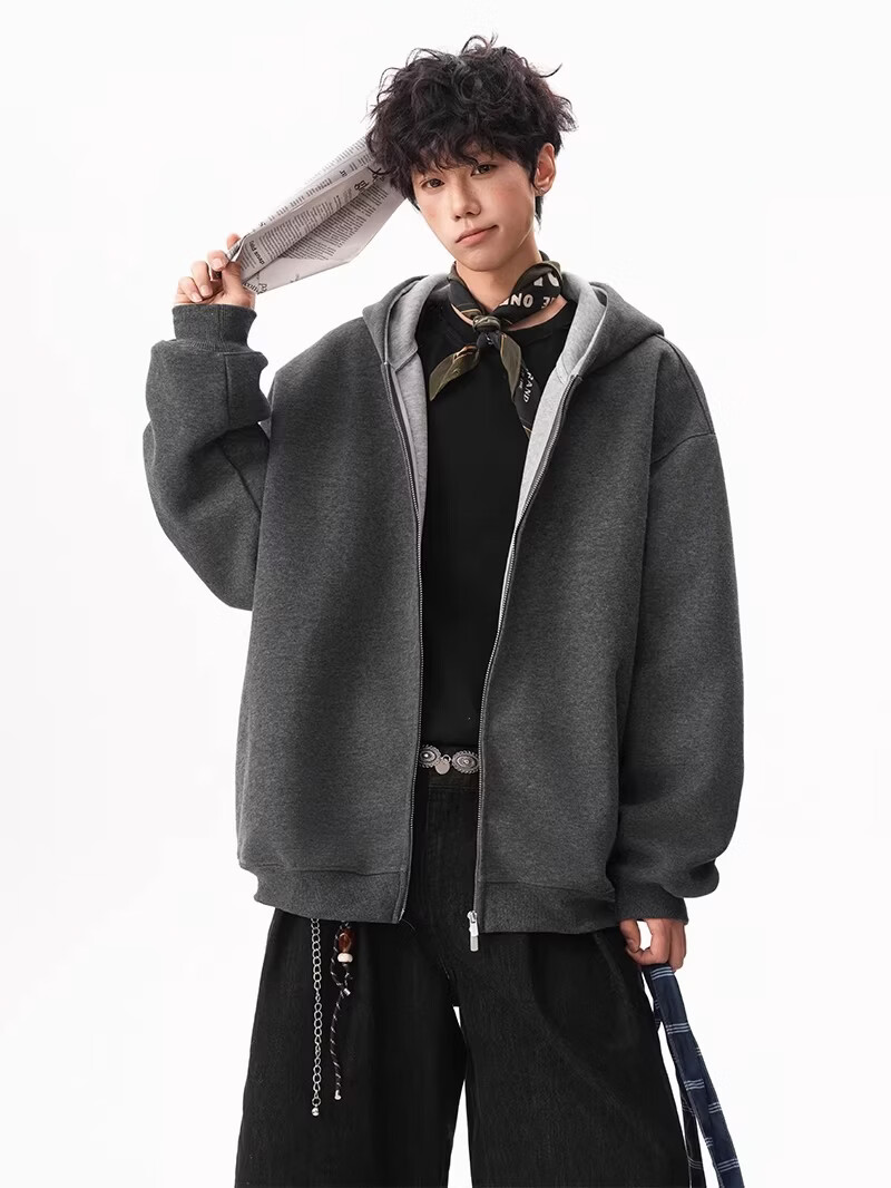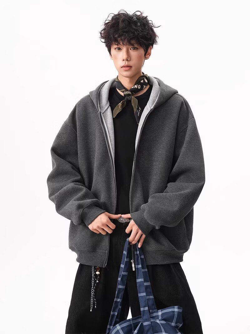 OEMG heavy cardigan sweatshirt men's spring and autumn casual hoodie sports loose color-blocked casual top versatile jacket dark gray high quality XL recommended 110-130Jin Jin equals 0.5 kg