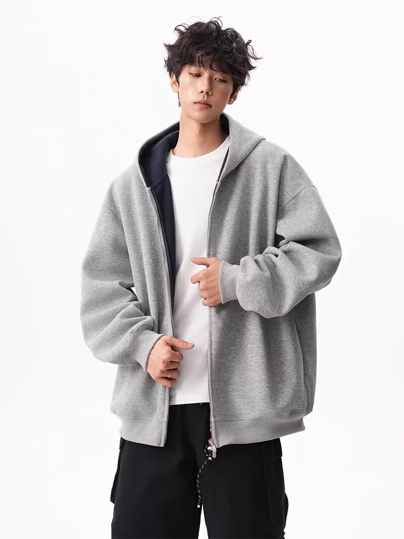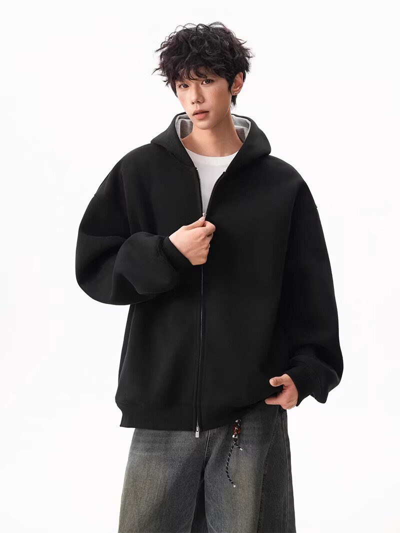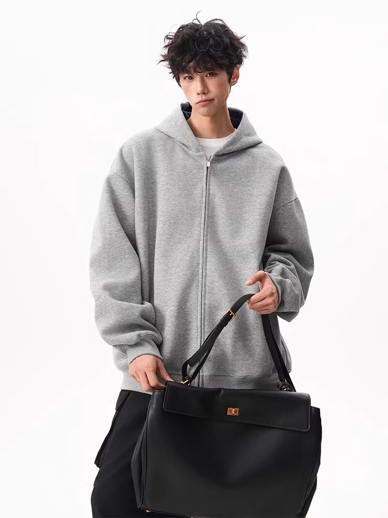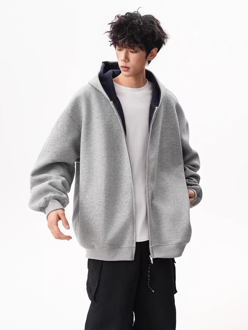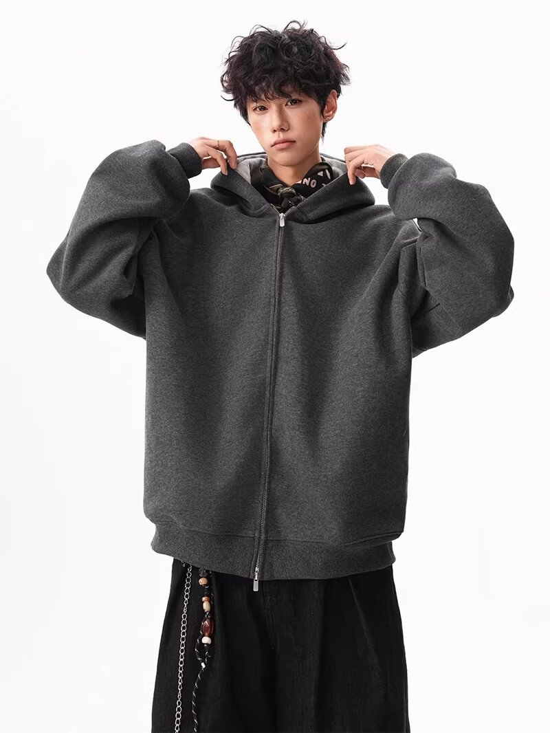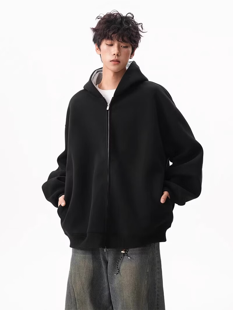 OEMG heavy cardigan sweatshirt men's spring and autumn casual hoodie sports loose color-blocked casual top versatile jacket dark gray high quality XL recommended 110-130Jin Jin equals 0.5 kg