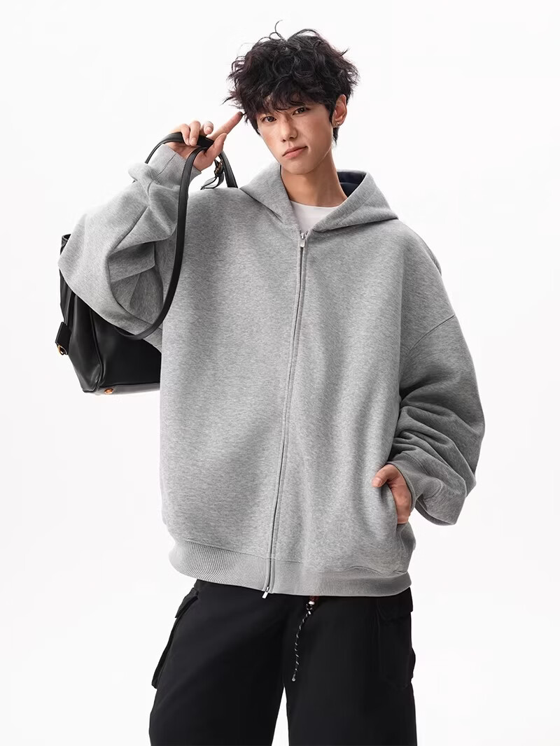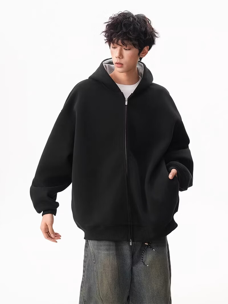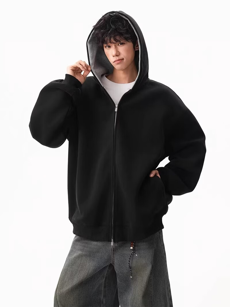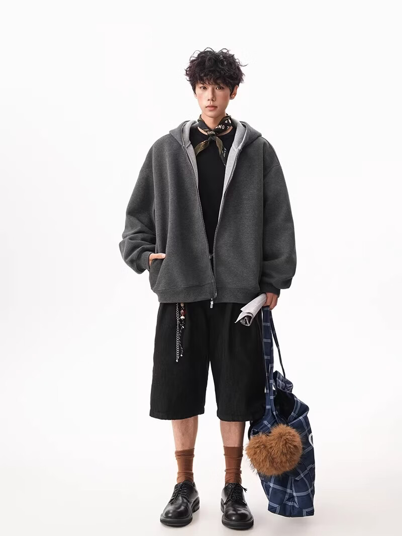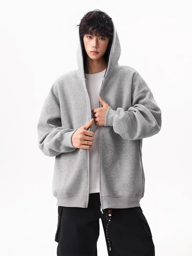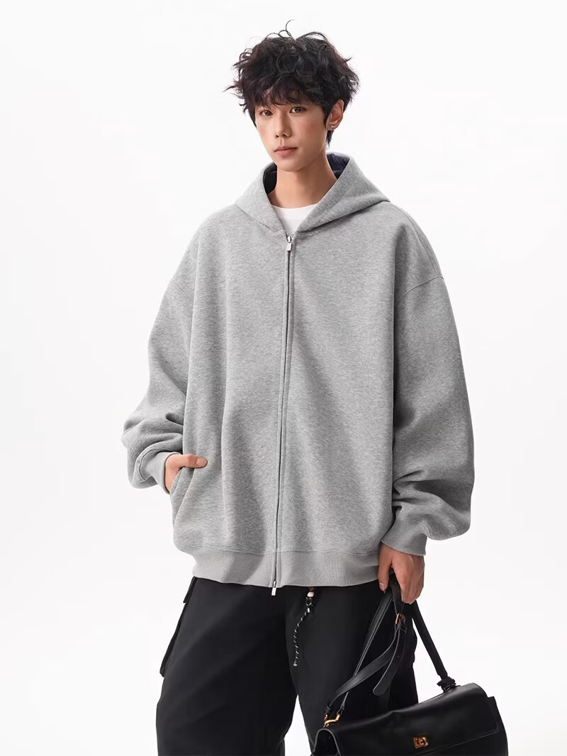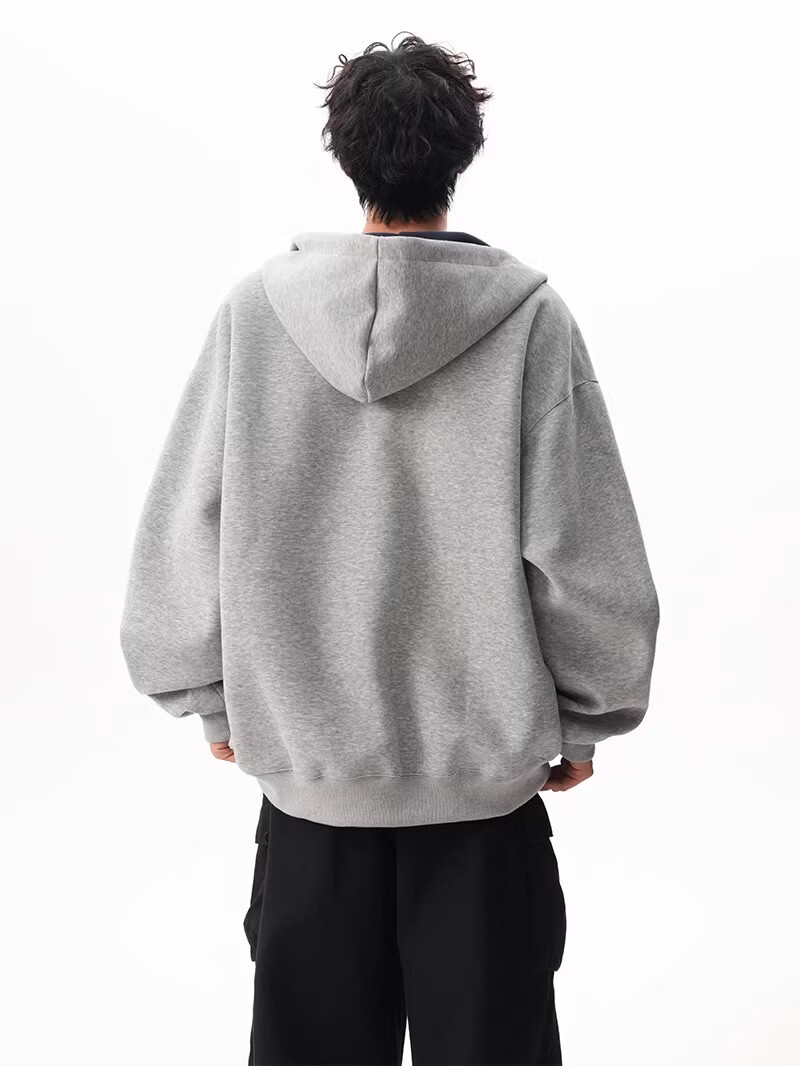 OEMG heavy cardigan sweatshirt men's spring and autumn casual hoodie sports loose color-blocked casual top versatile jacket dark gray high quality XL recommended 110-130Jin Jin equals 0.5 kg