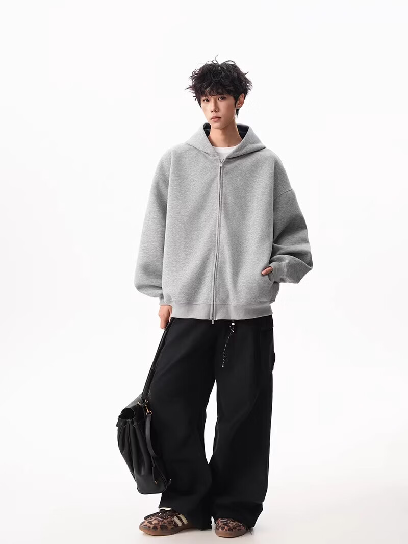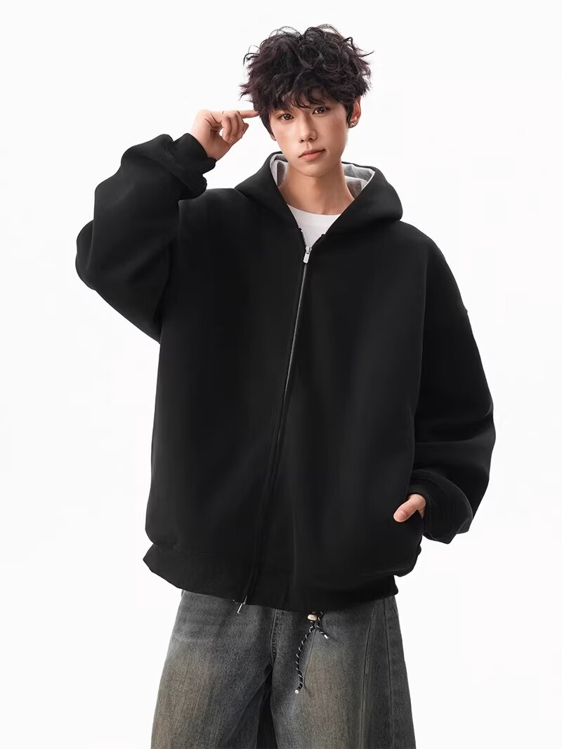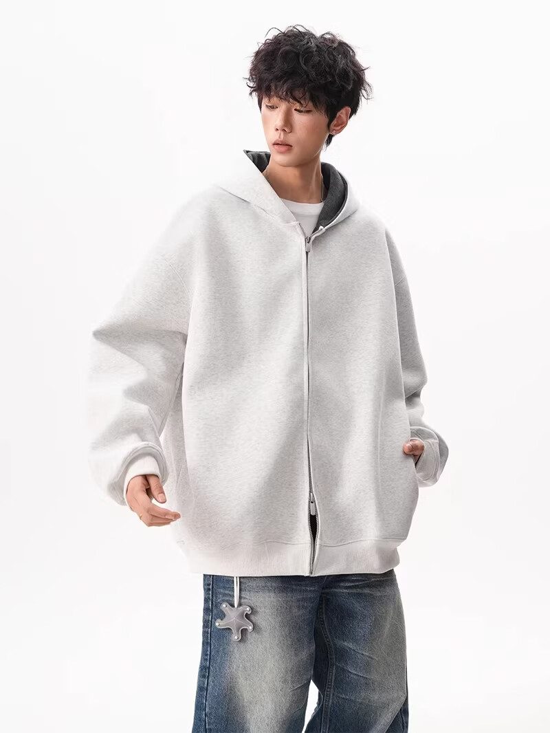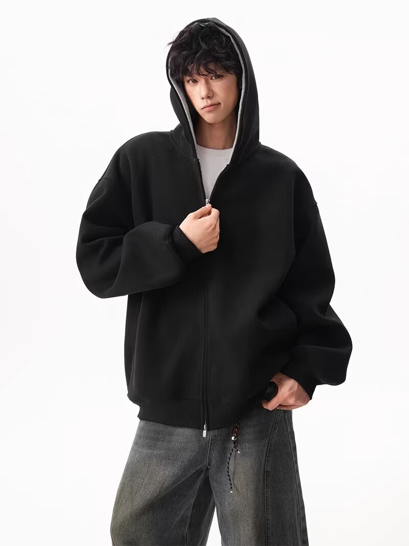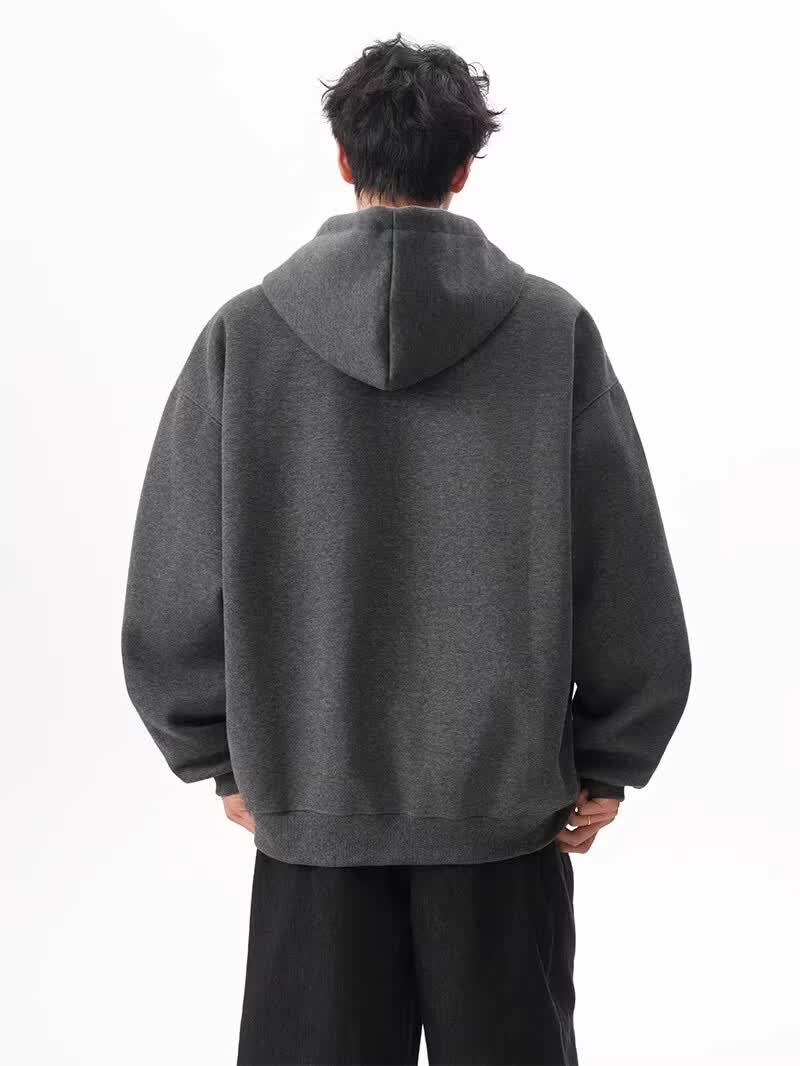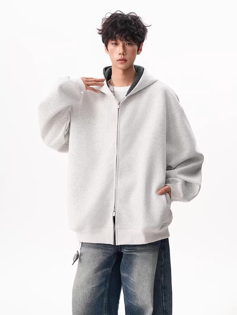 OEMG heavy cardigan sweatshirt men's spring and autumn casual hoodie sports loose color-blocked casual top versatile jacket dark gray high quality XL recommended 110-130Jin Jin equals 0.5 kg