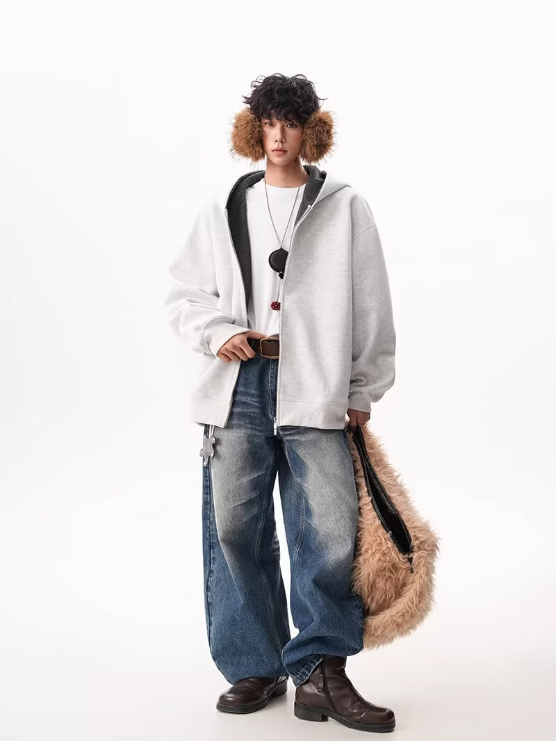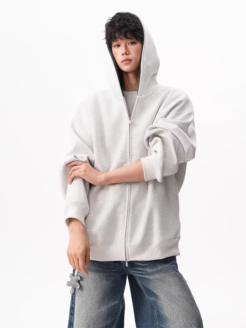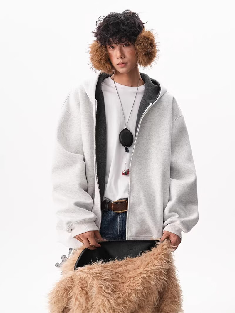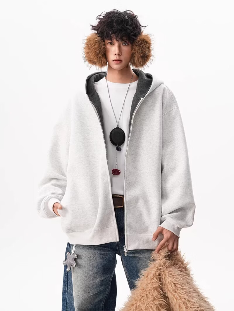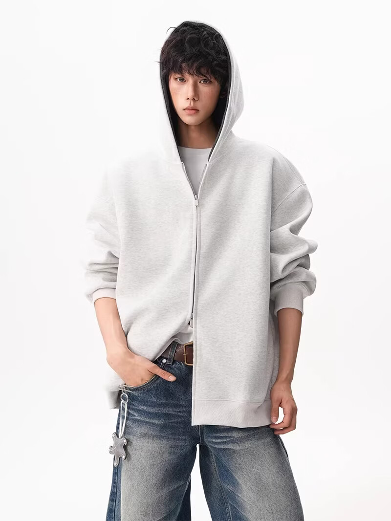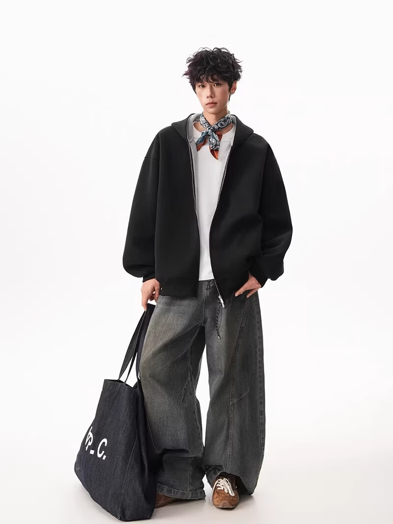 OEMG heavy cardigan sweatshirt men's spring and autumn casual hoodie sports loose color-blocked casual top versatile jacket dark gray high quality XL recommended 110-130Jin Jin equals 0.5 kg