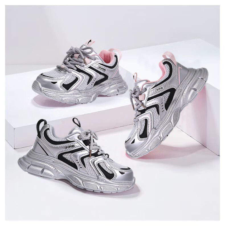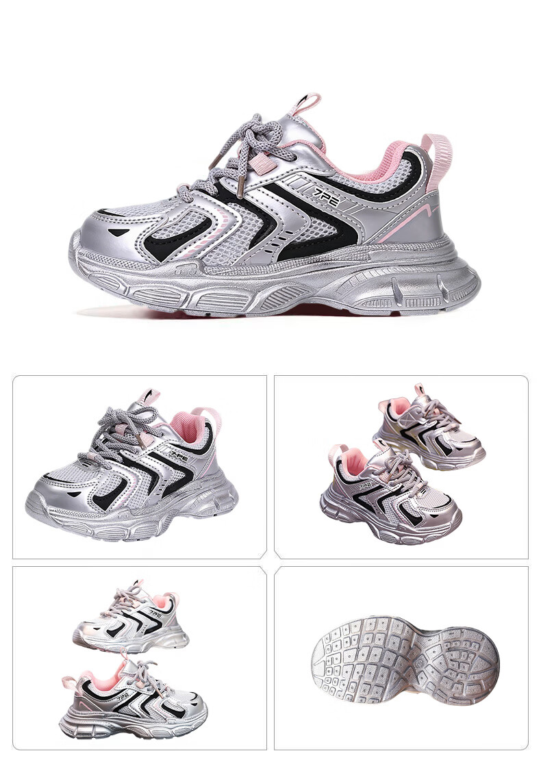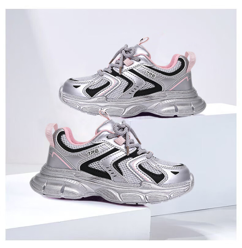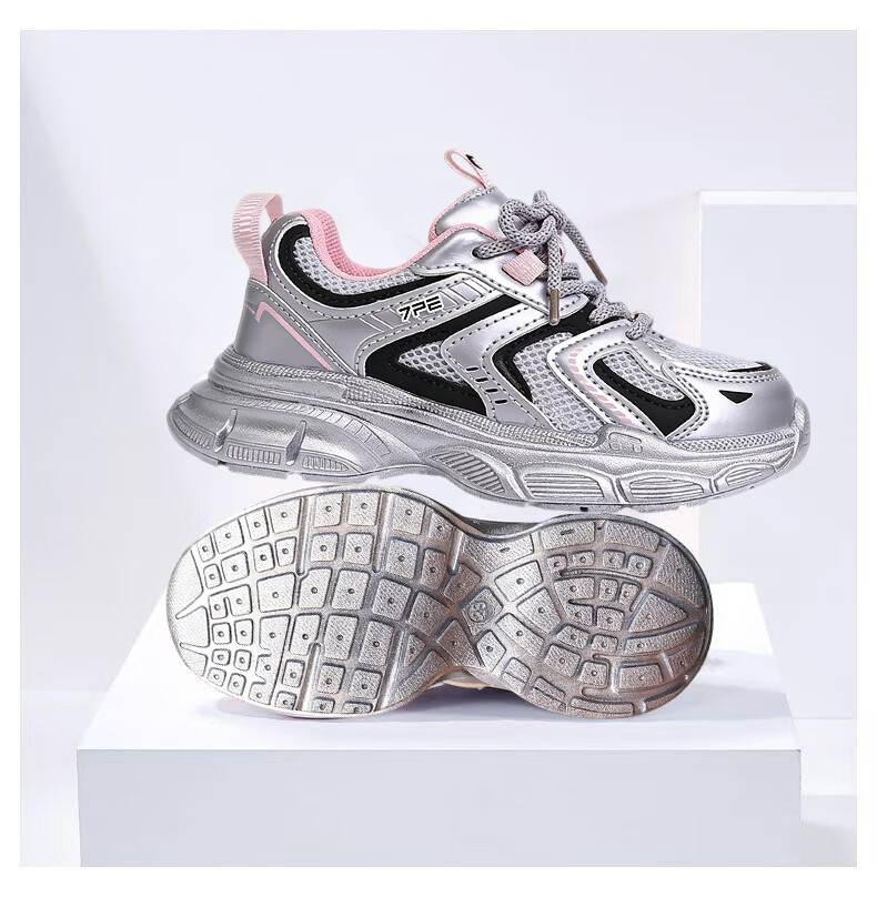 Qibohui (7-PE) Qibohui Girls' Sports Shoes 2026 Spring and Summer New Running Shoes Children's Mesh Daddy Shoes Boys' Sports Shoes Pink Breathable Double Mesh 26