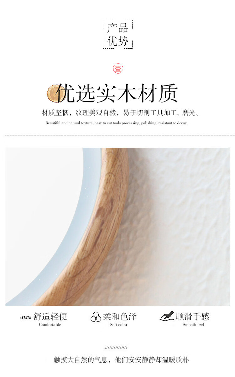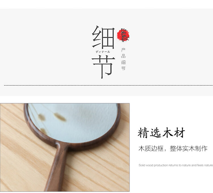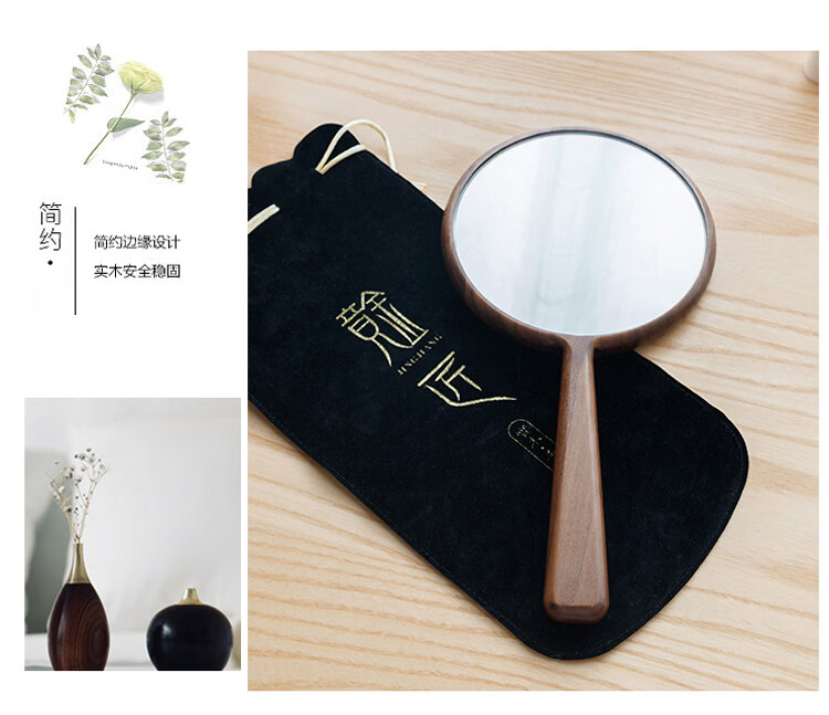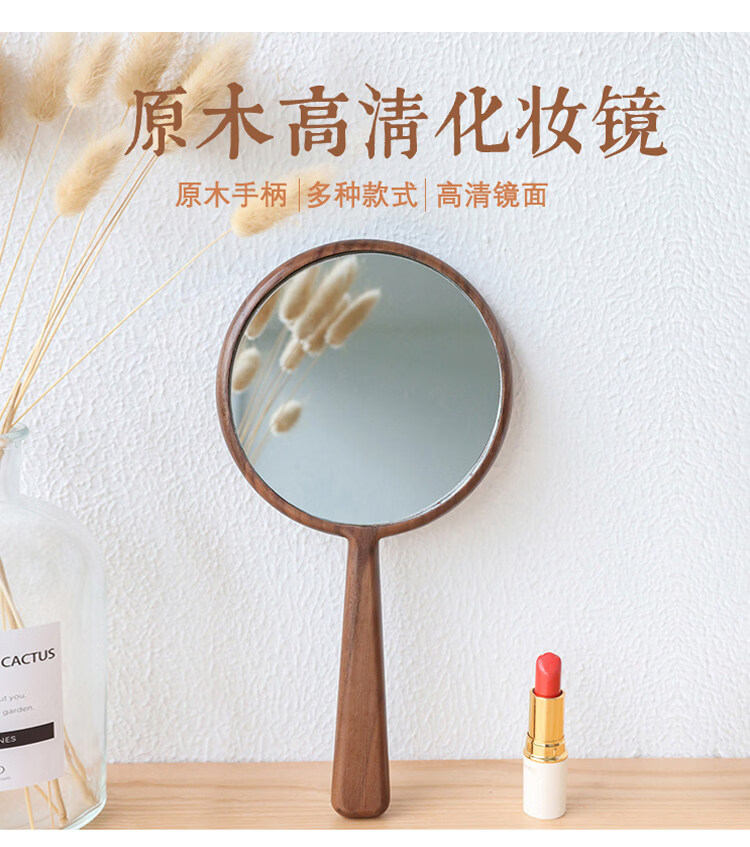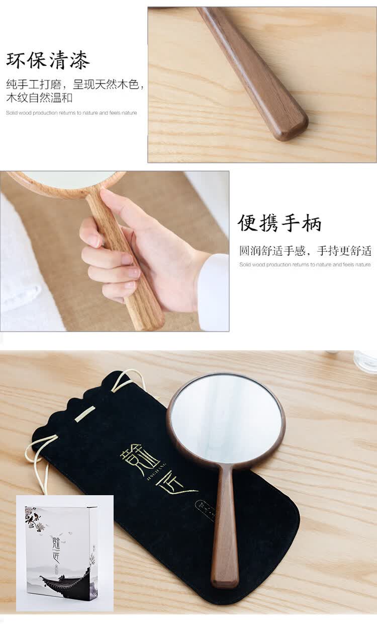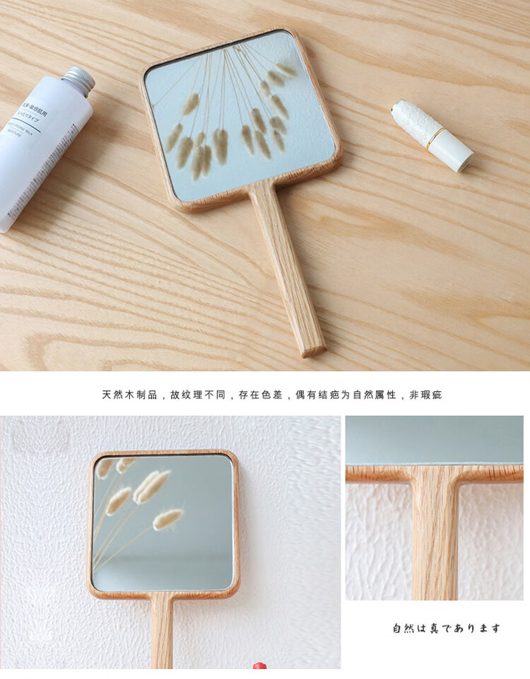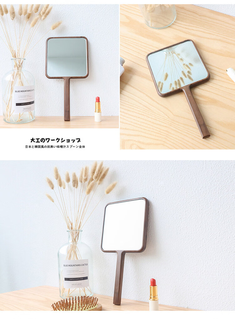 Espejo de maquillaje con mango LED de madera maciza, carga con vestidor portátil ligero y espejo de belleza, logotipo personalizado con letras de roble redondo