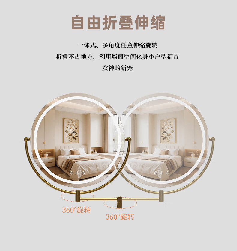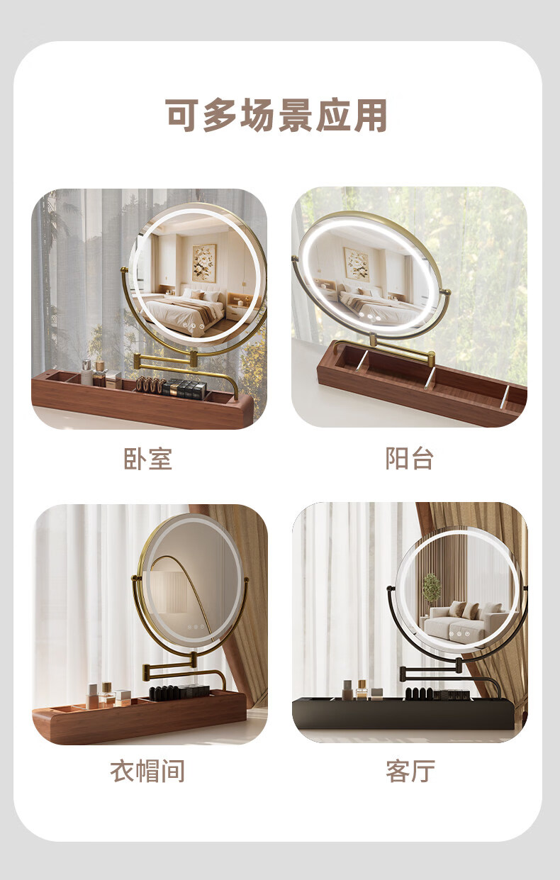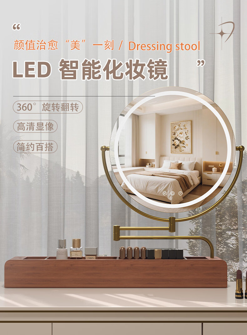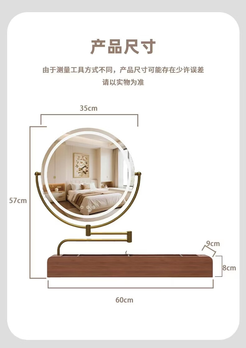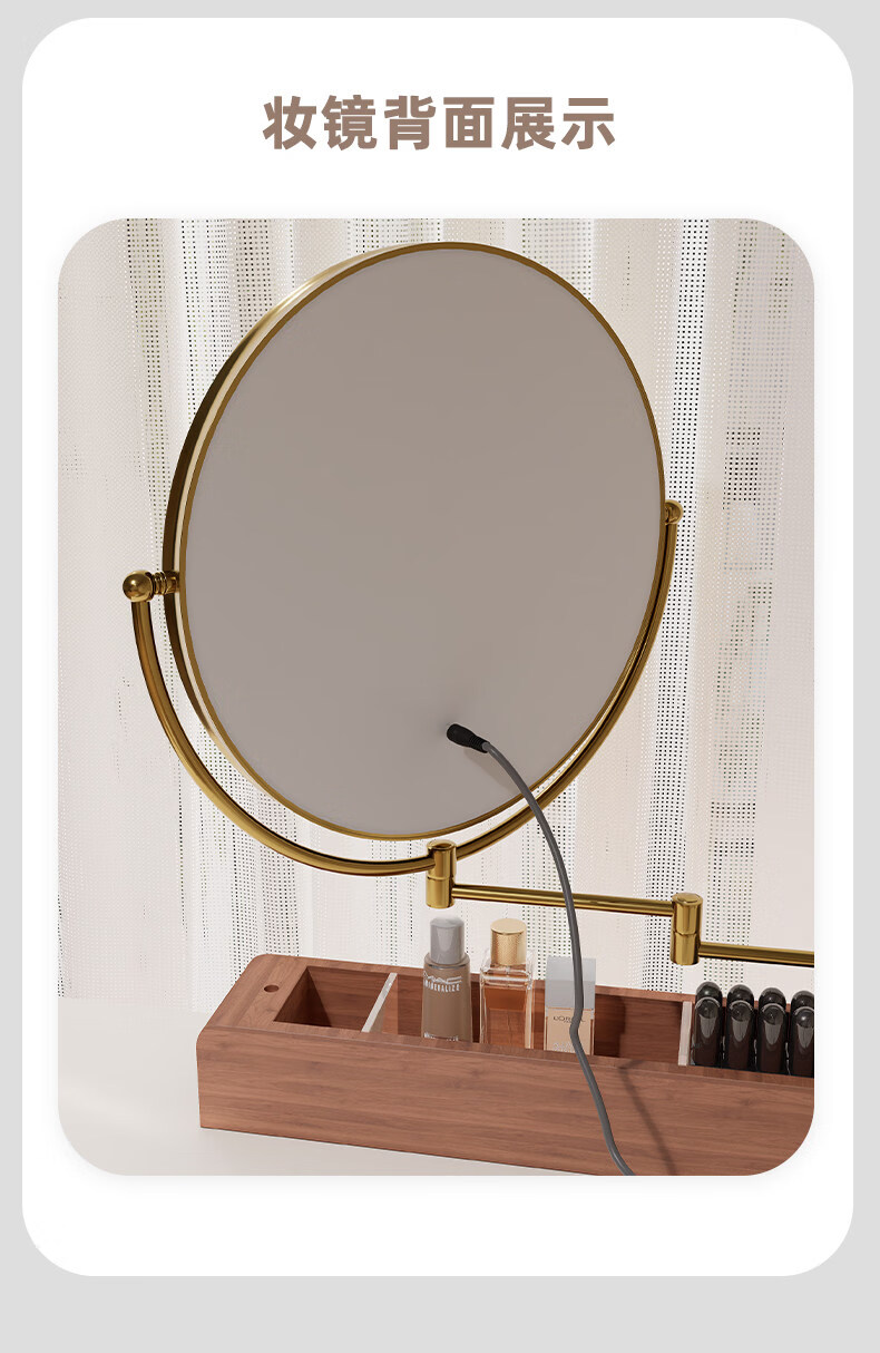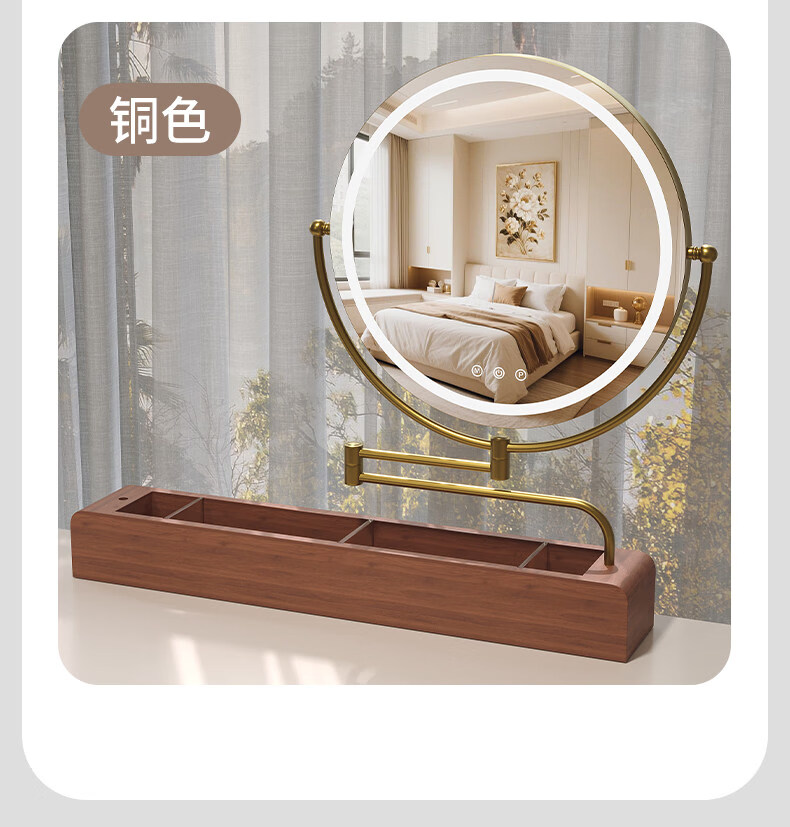 LE CAFE DE BBLED espejo de tocador con luz telescópica 360 giratoria caja de almacenamiento de madera maciza Espejo HD espejo de tocador espejo ins oro rosa 60 * 57 caja inferior de madera maciza enchufable