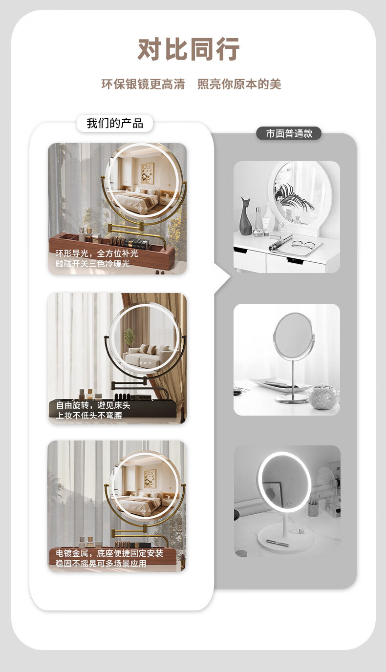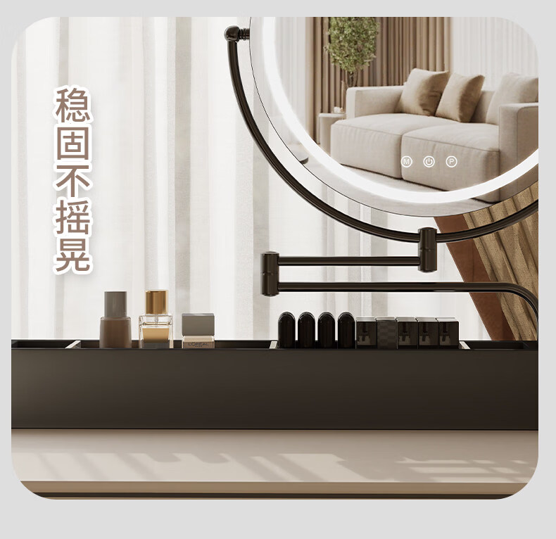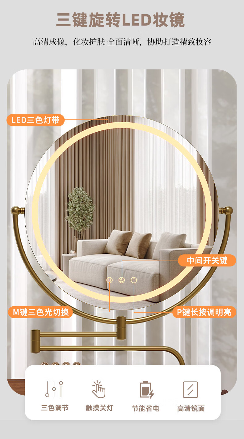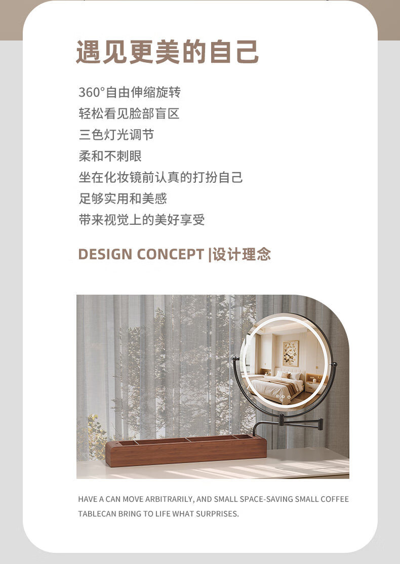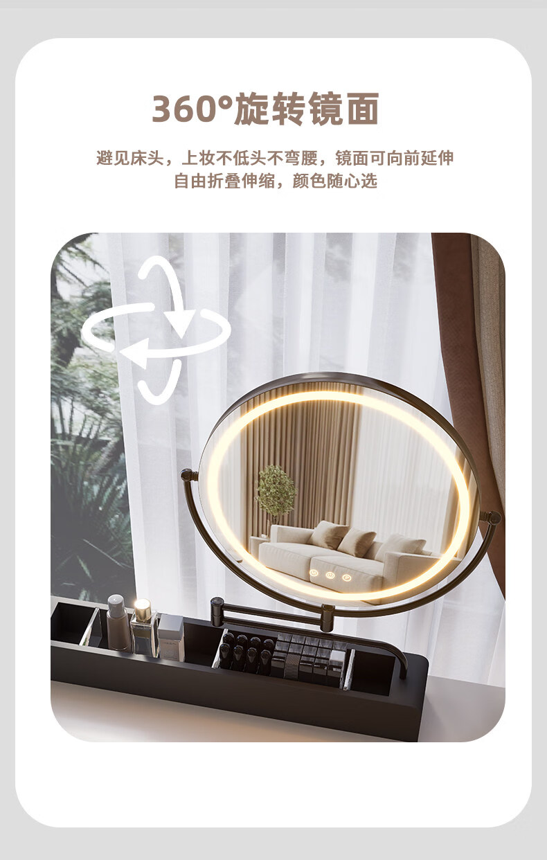 LE CAFE DE BBLED espejo de tocador con luz telescópica 360 giratoria caja de almacenamiento de madera maciza Espejo HD espejo de tocador espejo ins oro rosa 60 * 57 caja inferior de madera maciza enchufable