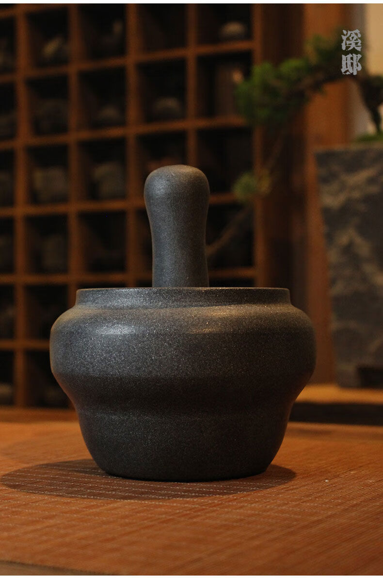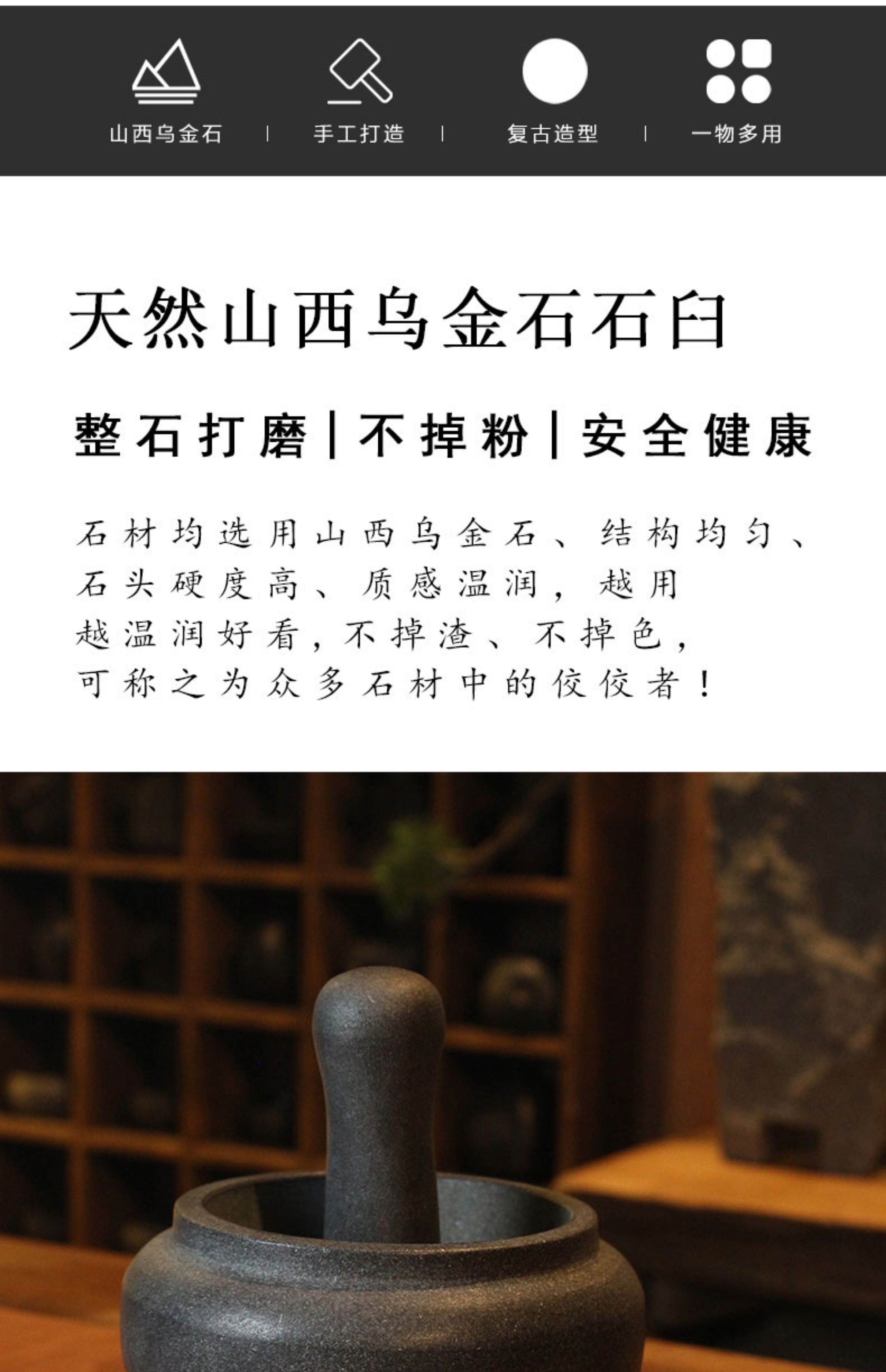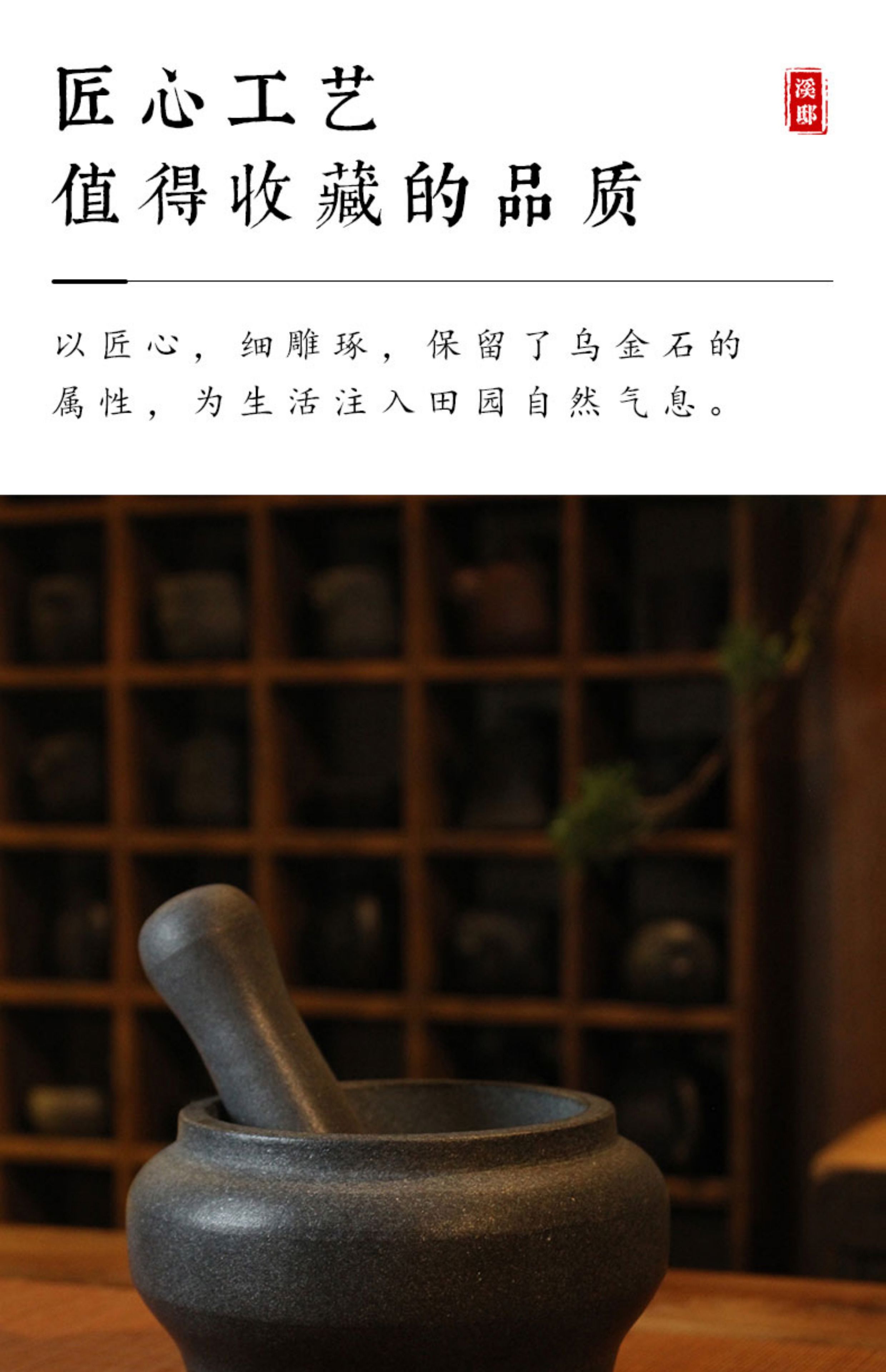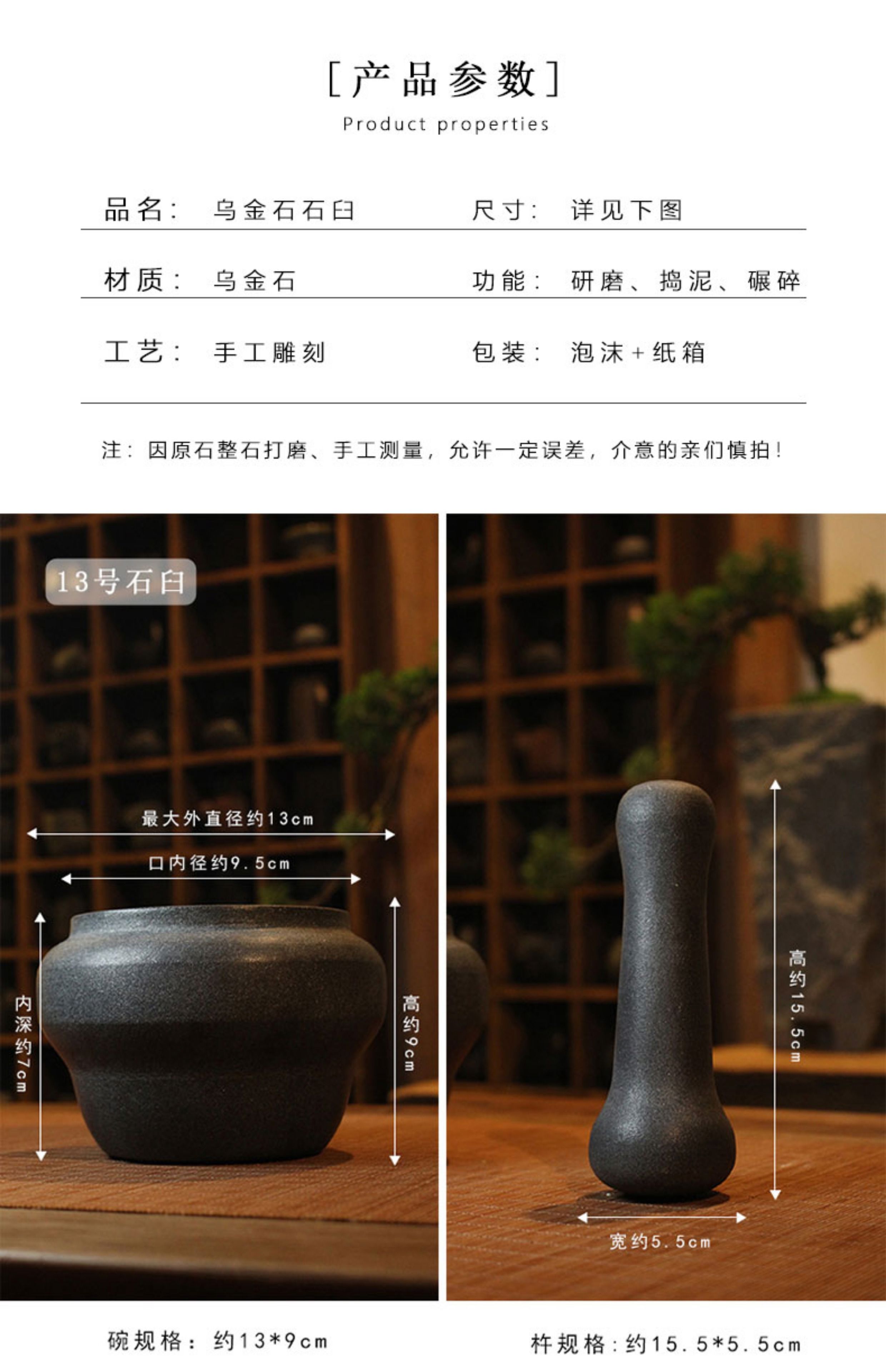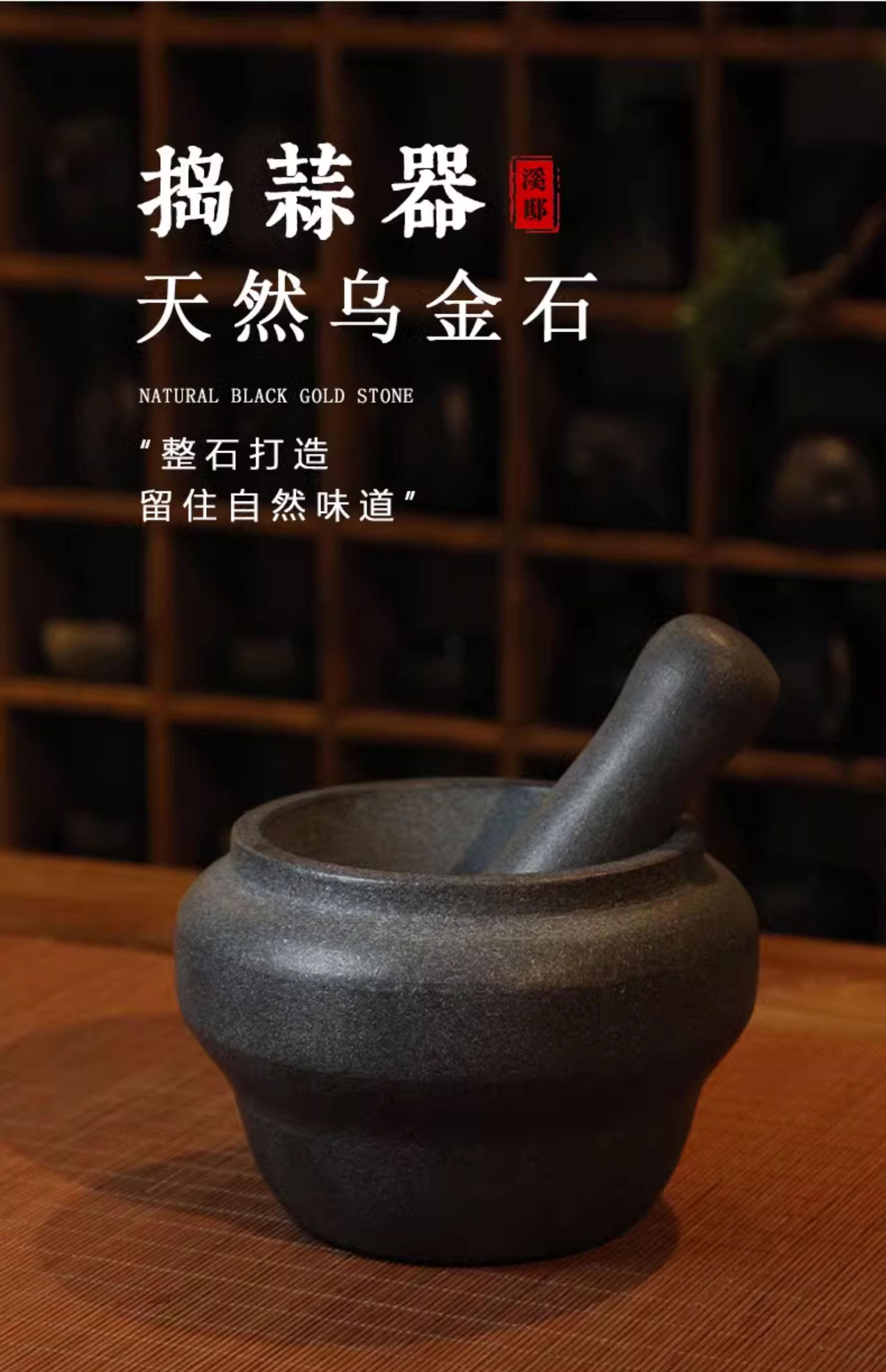 Natural black gold stone mortar garlic pounder sesame garlic mortar manual pounding medium jar chili pepper bowl garlic paste artifact black gold stone No. 13 whole stone polishing