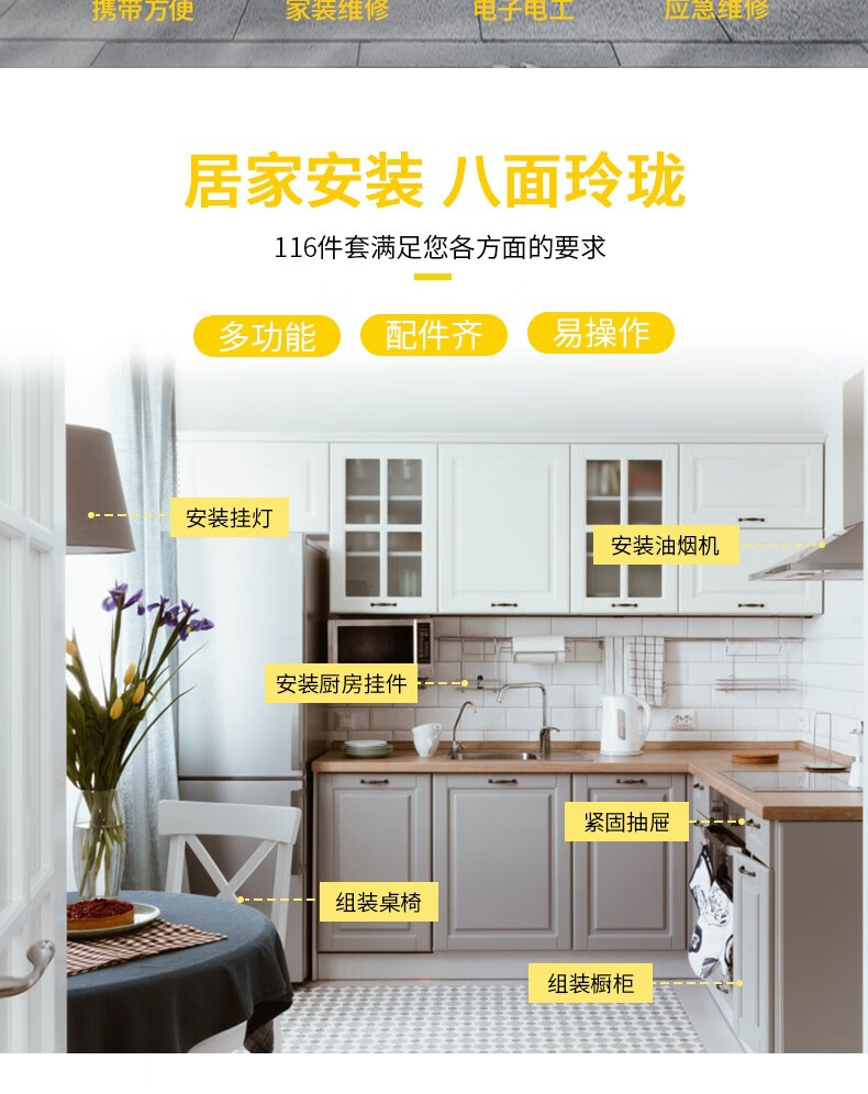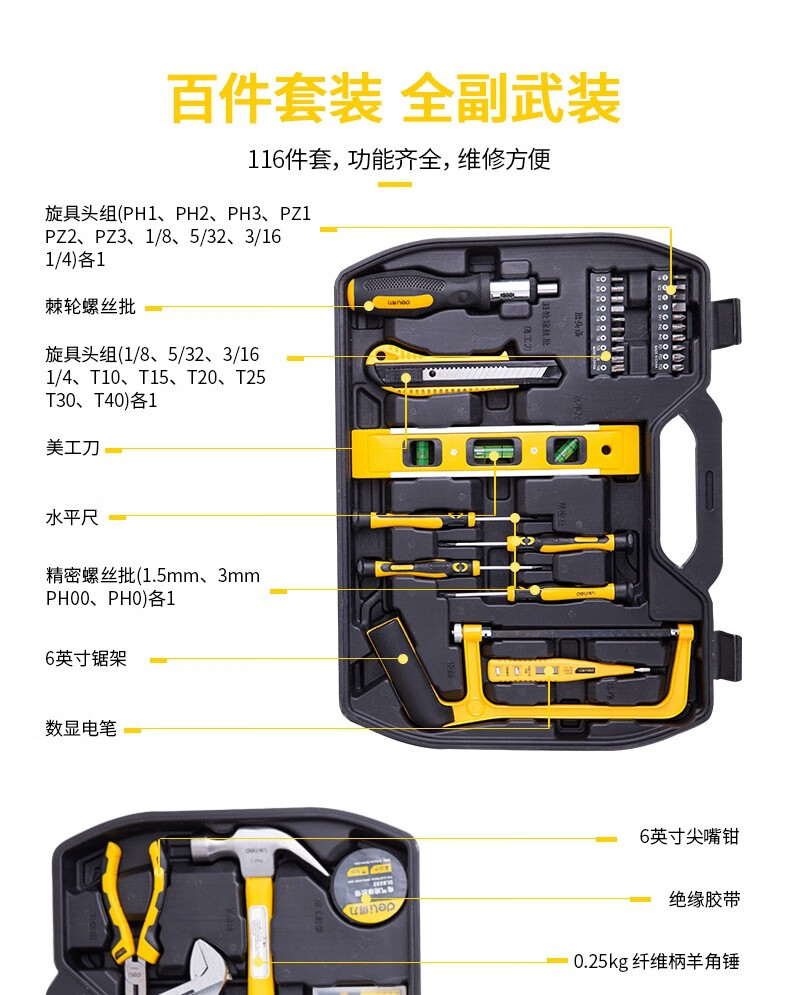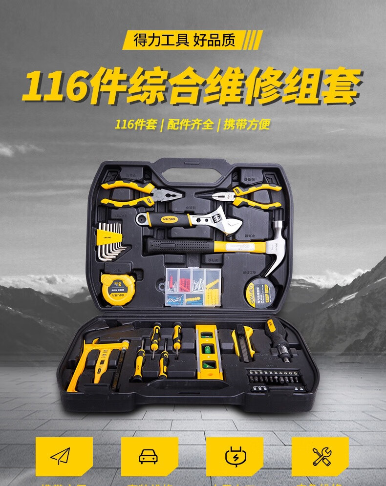 Multifunctional tool box for electrician and woodworking repair set 5973116-piece set