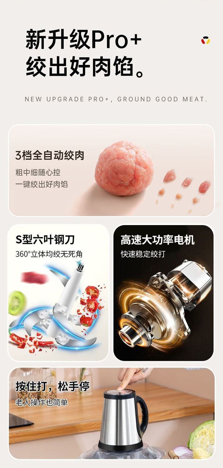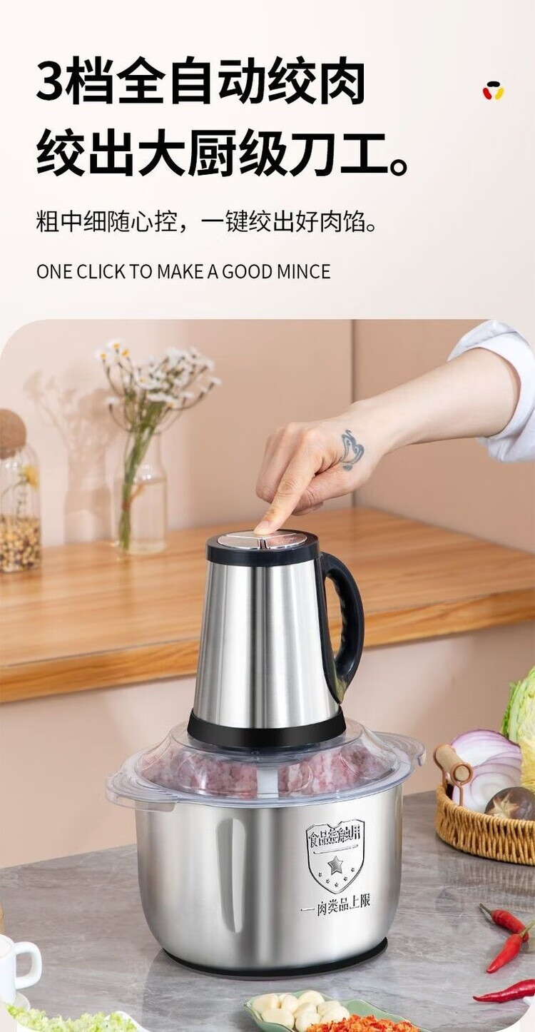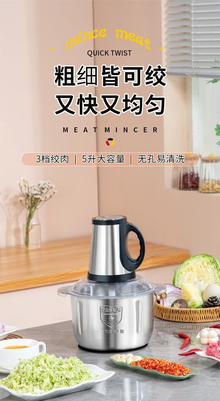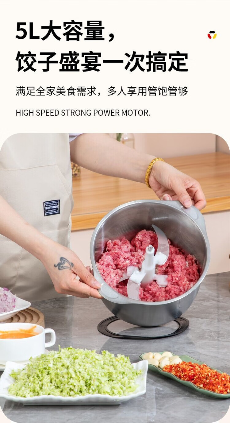 Garlic artifact electric meat grinder for home kitchen mixing stainless steel multi-functional cooking chili and pasta minced food 2L small capacity total of 2 sets 4-blade steel blade