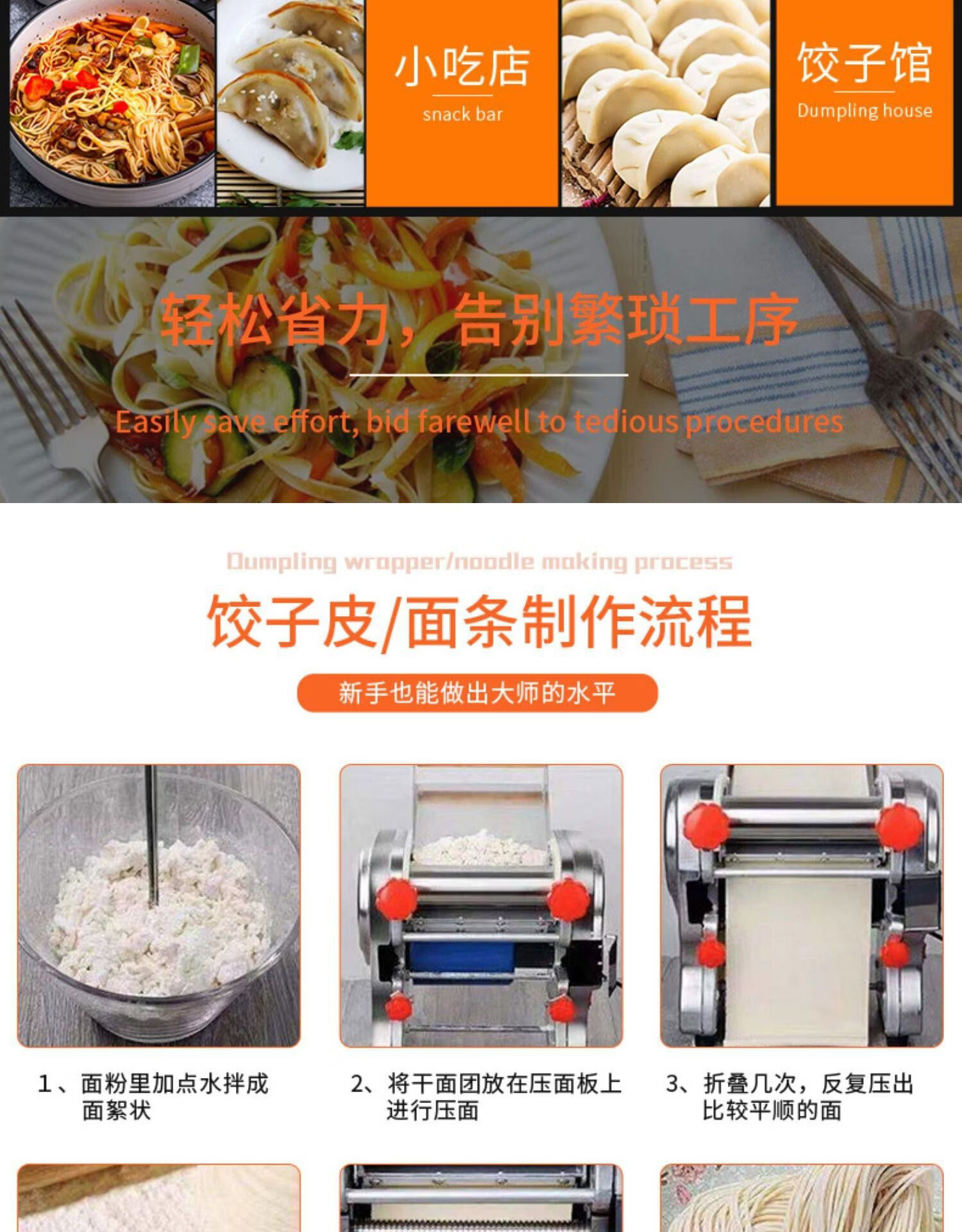 Hongchao noodle machine household small electric multi-functional fully automatic commercial dumpling wrapper dough machine luxury stainless steel 160 type 370W dual-use model