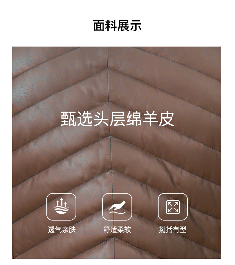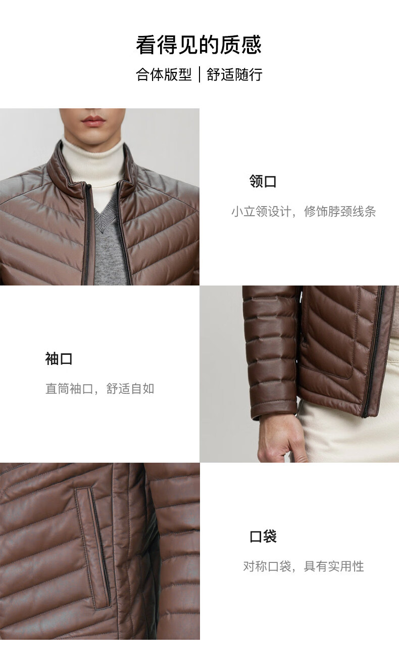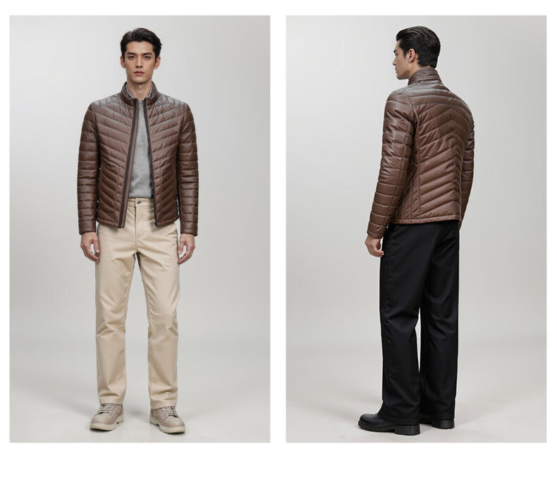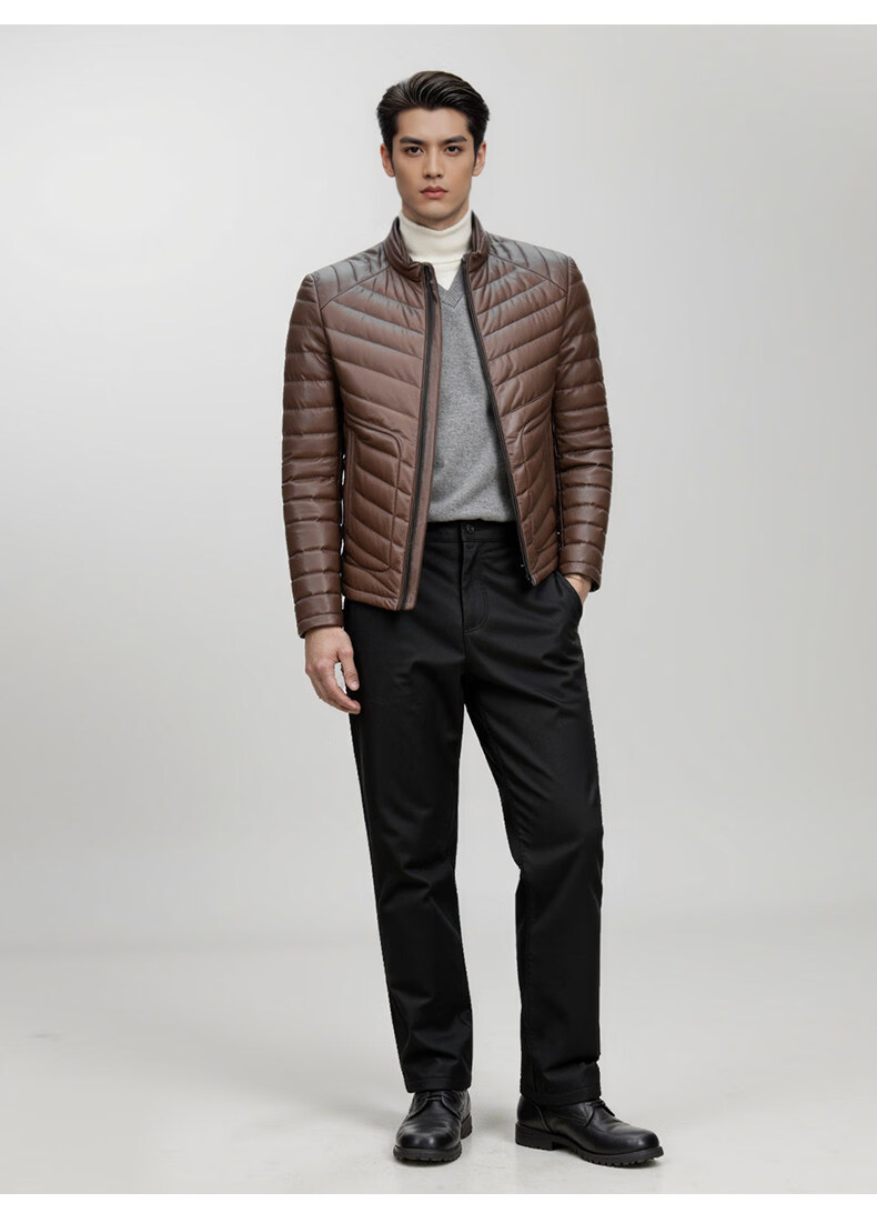 Snow Leopard Genuine Leather Jacket Men's First Layer Sheepskin Business Casual System Stand Collar White Duck Down Short Leather Down Jacket Brown L 48 170/92A