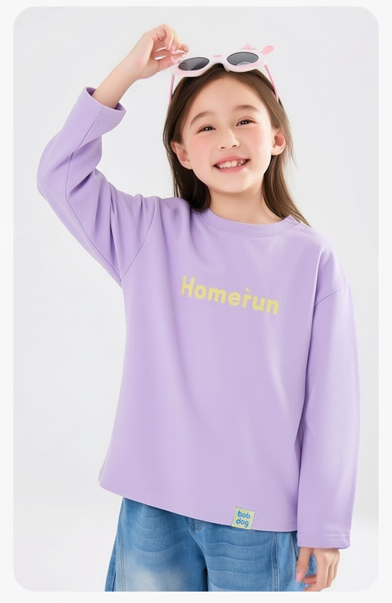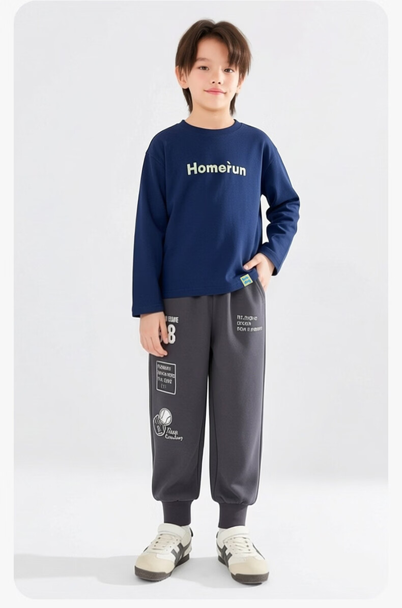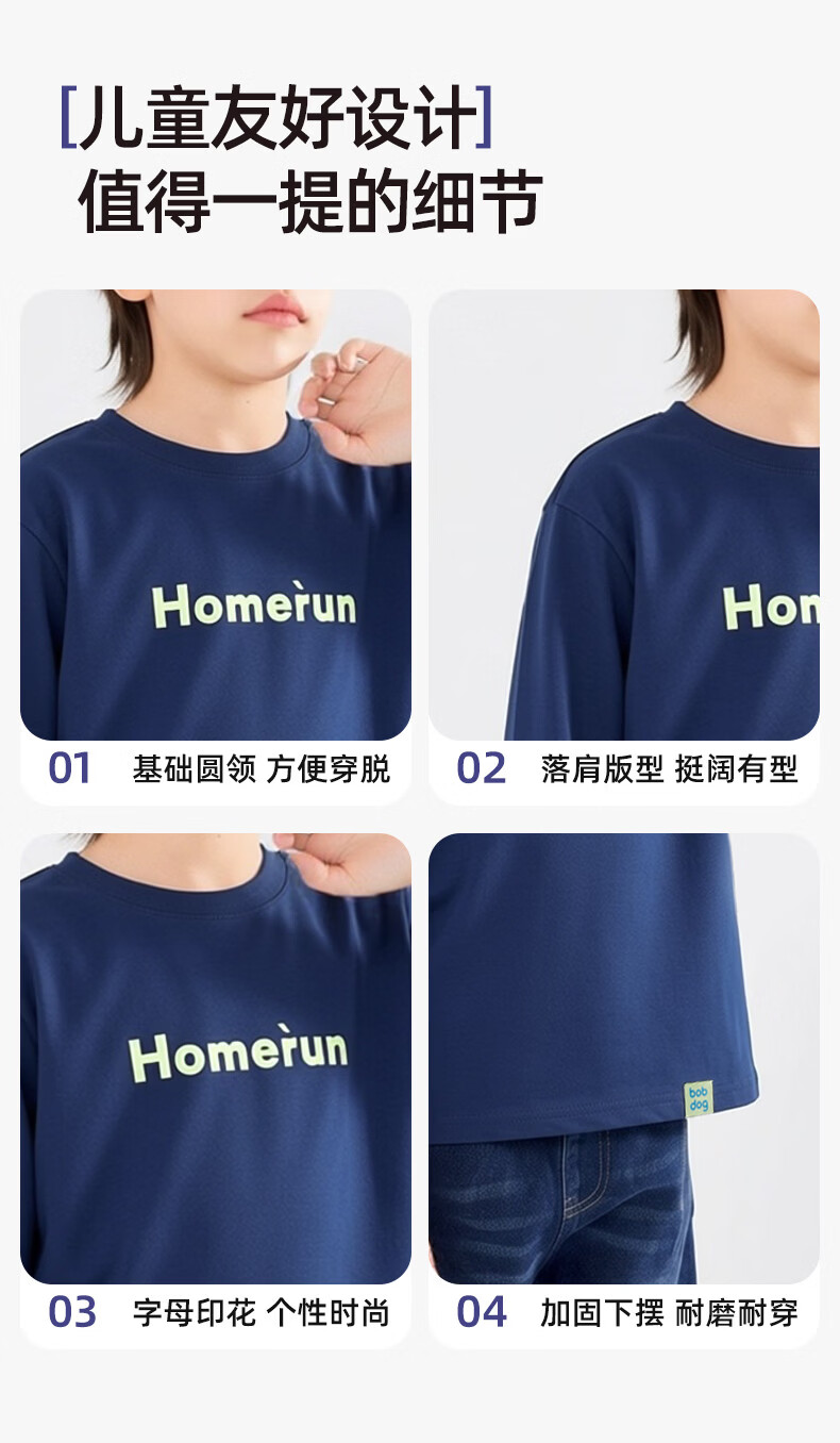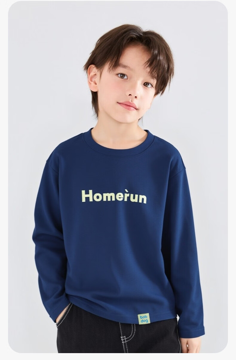 BOBDOG children's long-sleeved T-shirt, medium and large children's casual round neck top, spring and autumn outing lyocell bottoming shirt for boys and girls, trendy navy 140cm, one size fits all