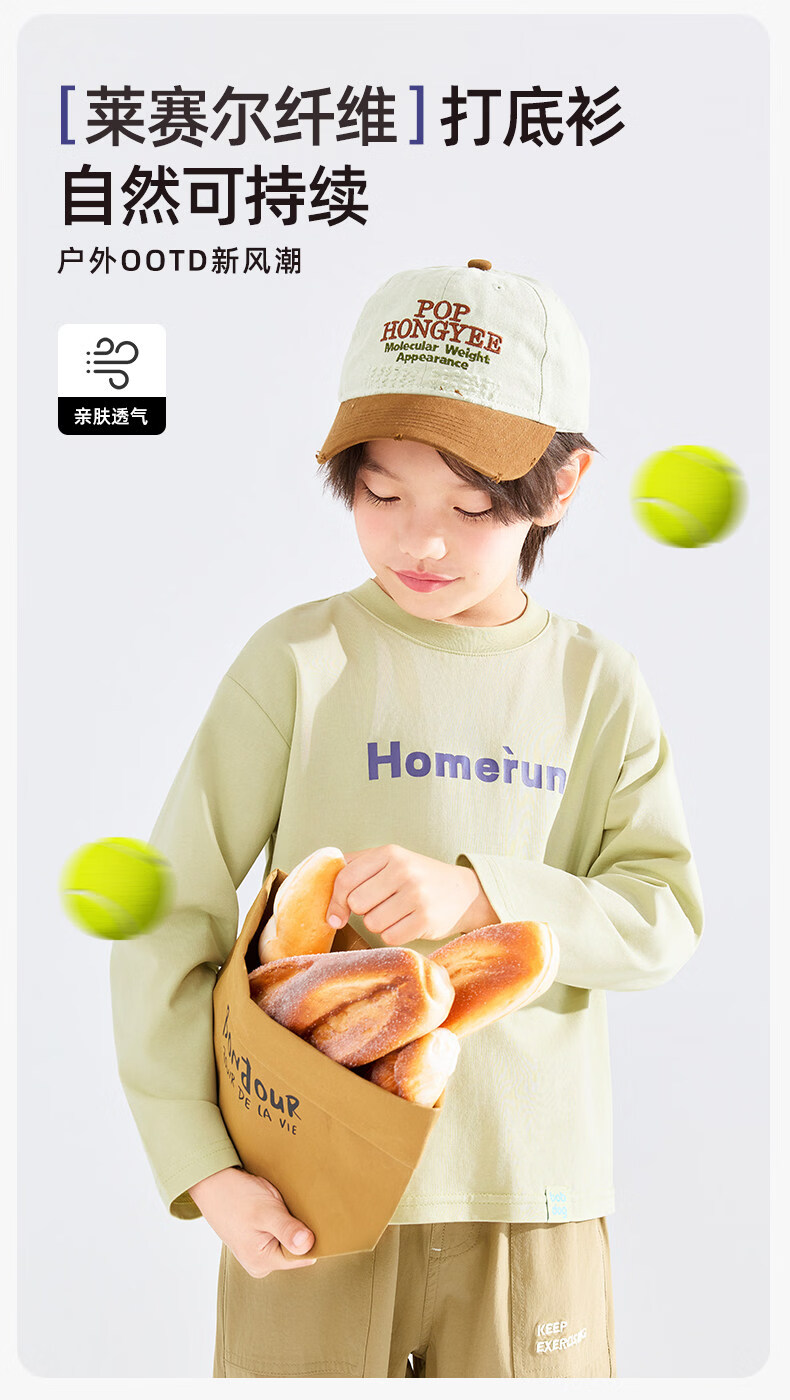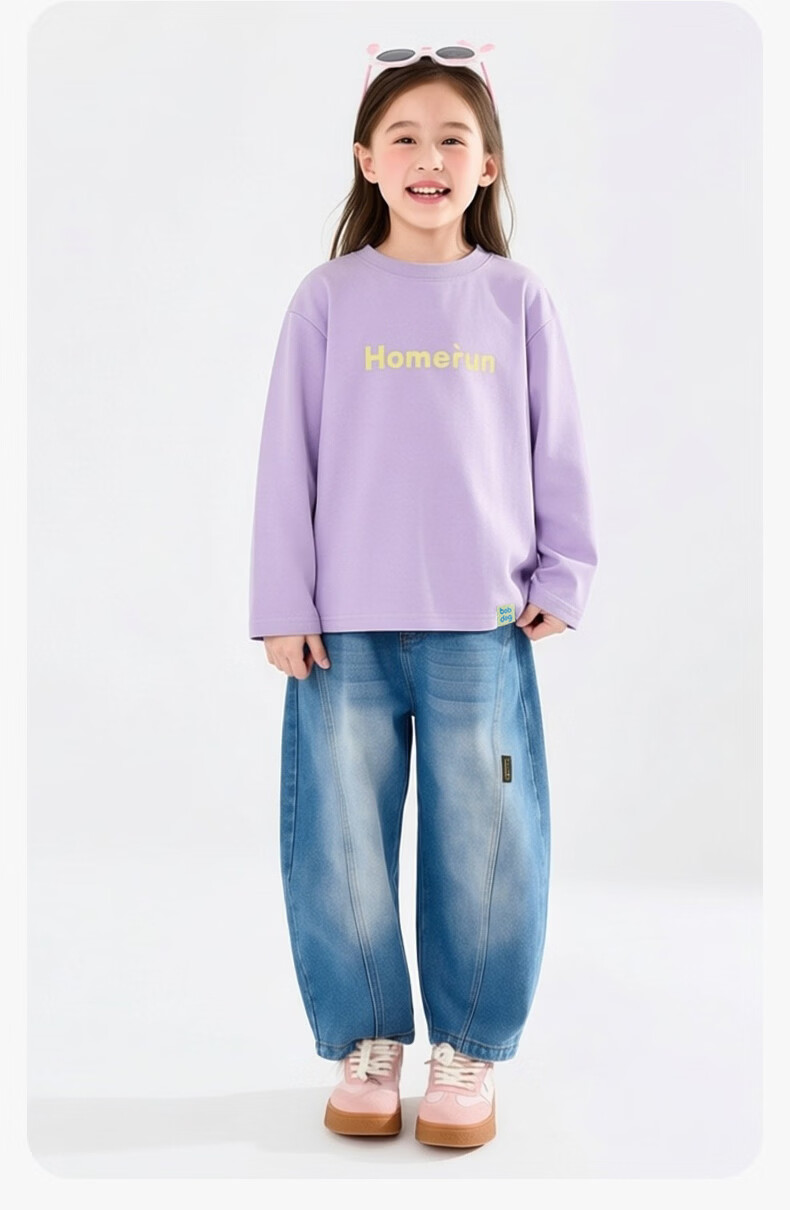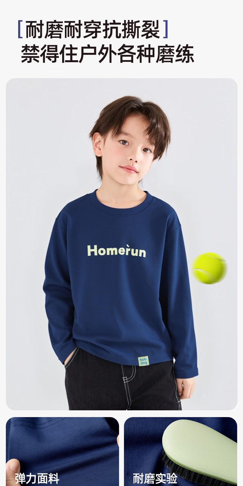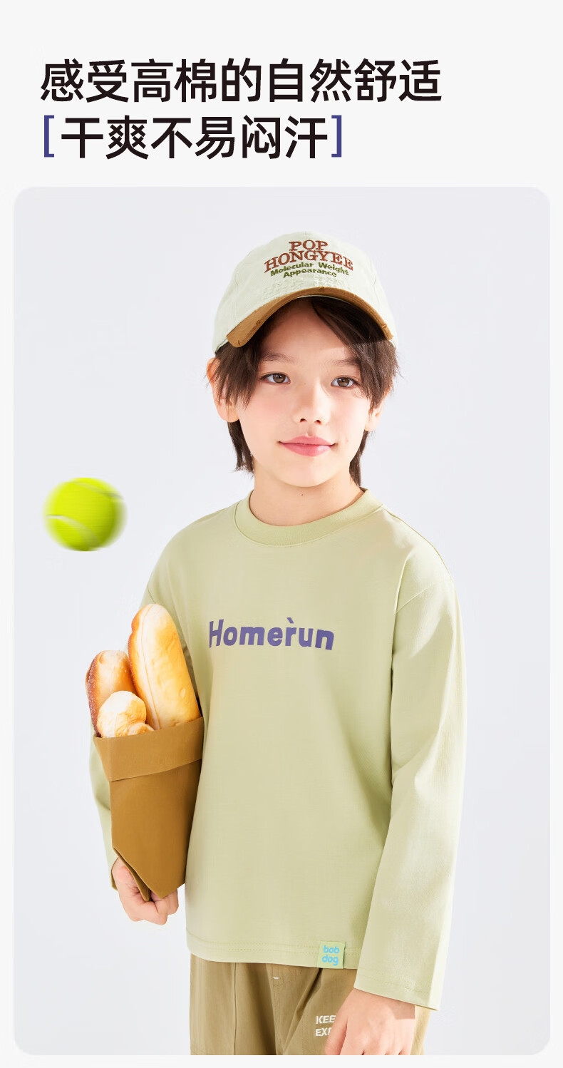 BOBDOG children's long-sleeved T-shirt, medium and large children's casual round neck top, spring and autumn outing lyocell bottoming shirt for boys and girls, trendy navy 140cm, one size fits all