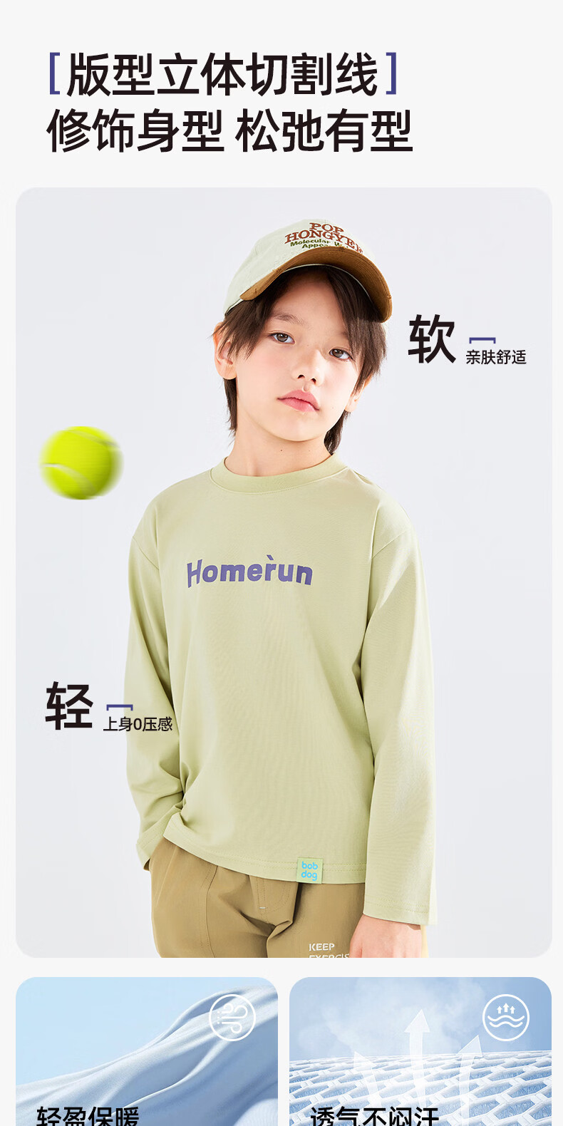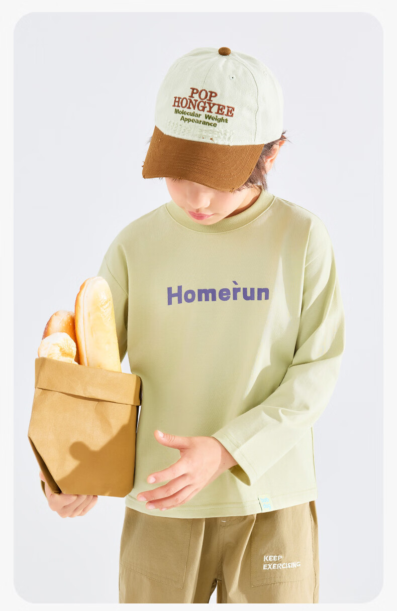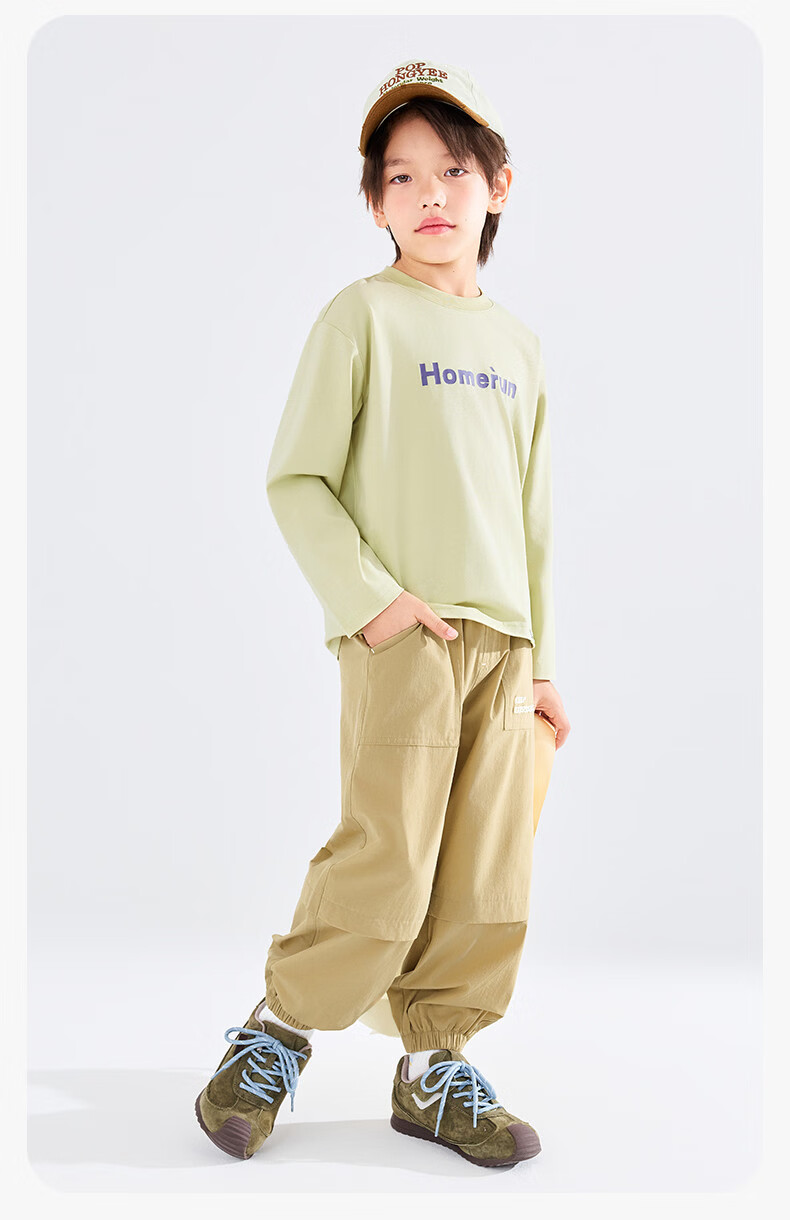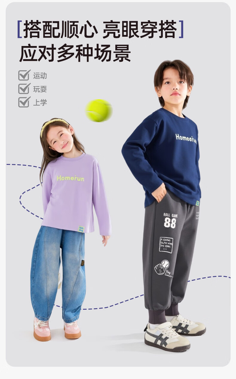 BOBDOG children's long-sleeved T-shirt, medium and large children's casual round neck top, spring and autumn outing lyocell bottoming shirt for boys and girls, trendy navy 140cm, one size fits all