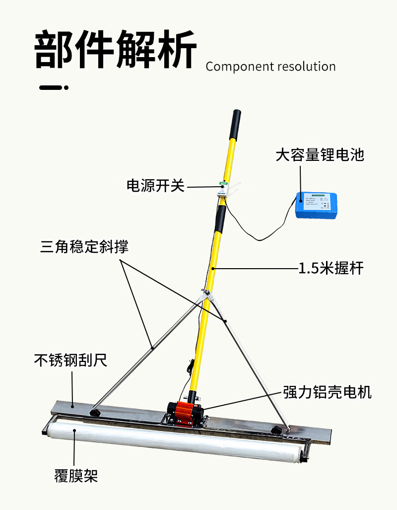 Sanqihu concrete electric scraper, cement indoor leveling machine, film backfill vibrator, lithium electric vibrator scraper, stainless steel small scraper, 1m long, length can be customized