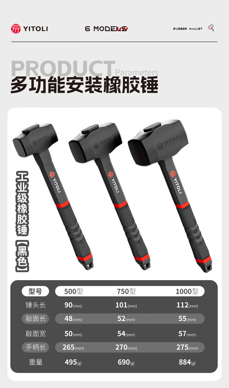 Yizhili Rubber Hammer Rubber Hammer Rubber Hammer Rubber Percussion Hammer Hammer Leather Hammer Upstairs Solid Industrial Grade Installation Hammer Large Beef Tendon Industrial Grade-Rubber Hammer 500G White Solid Hammer