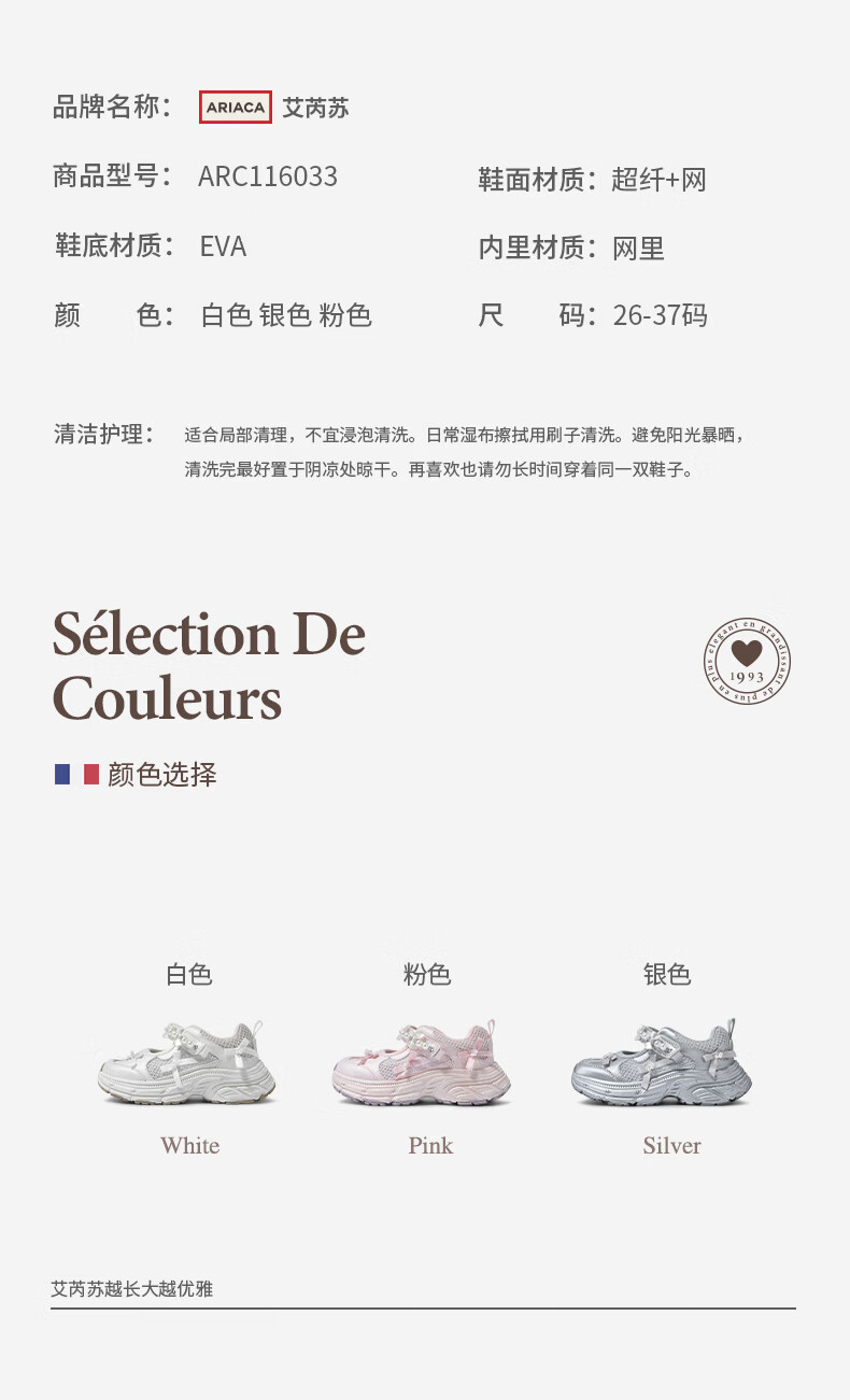 AriacaARIACA Girls' Sports Shoes 2026 Spring New Mesh Breathable Soft Sole Children's Outdoor Dad Shoes White 26 Inner Length 16.8/Suitable for Foot Length 15.8-16.4