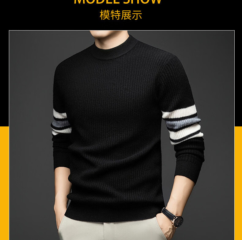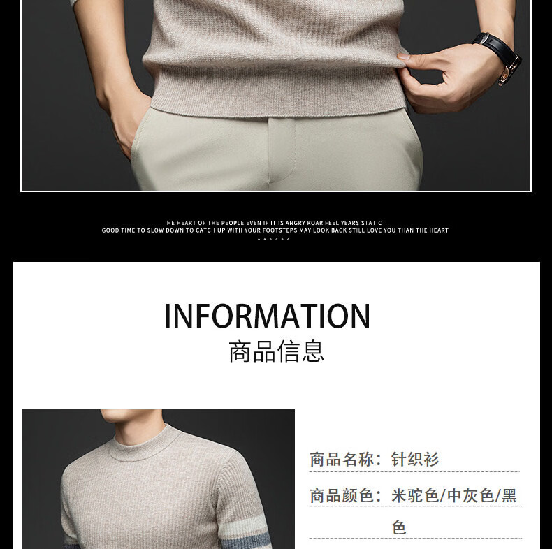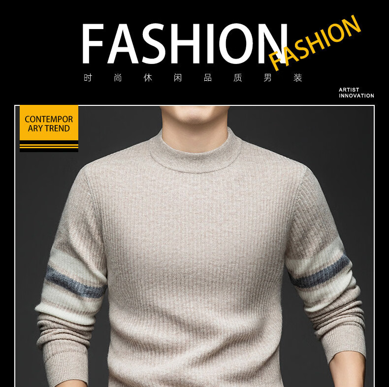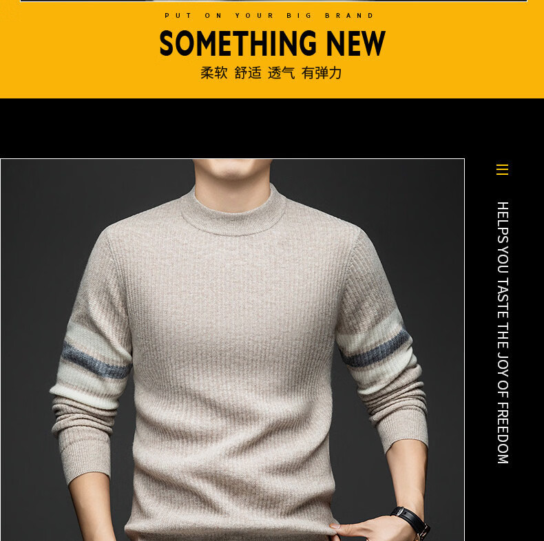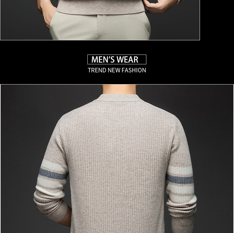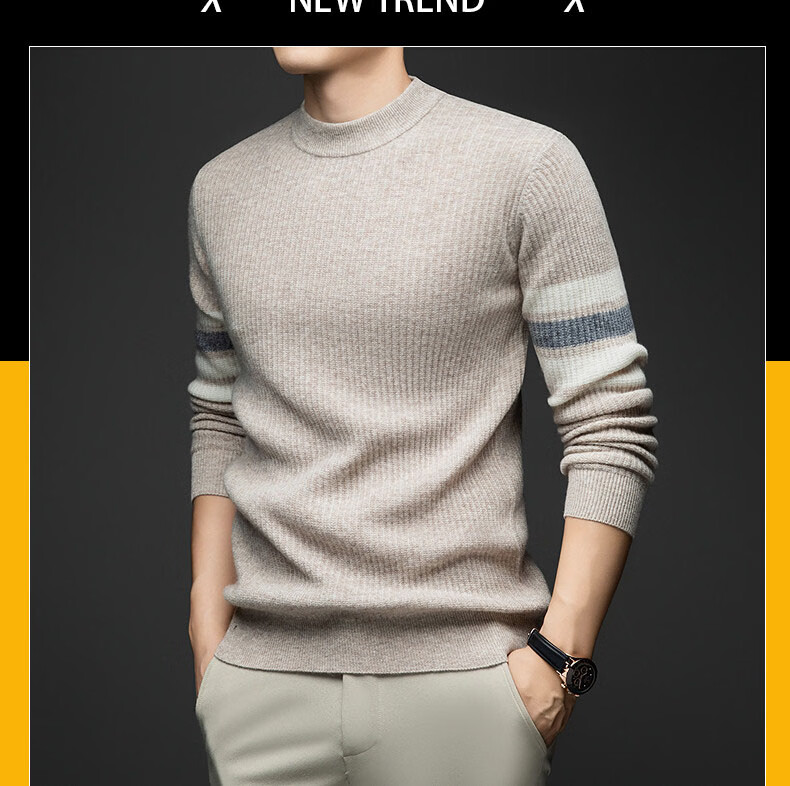 GUSKI light luxury brand high-end men's spring and autumn new wool sweater men's warm striped comfortable sweater casual bottoming shirt beige camel color exquisite gift box S (165)