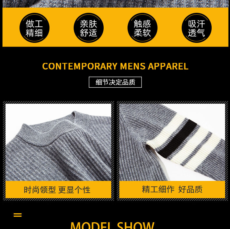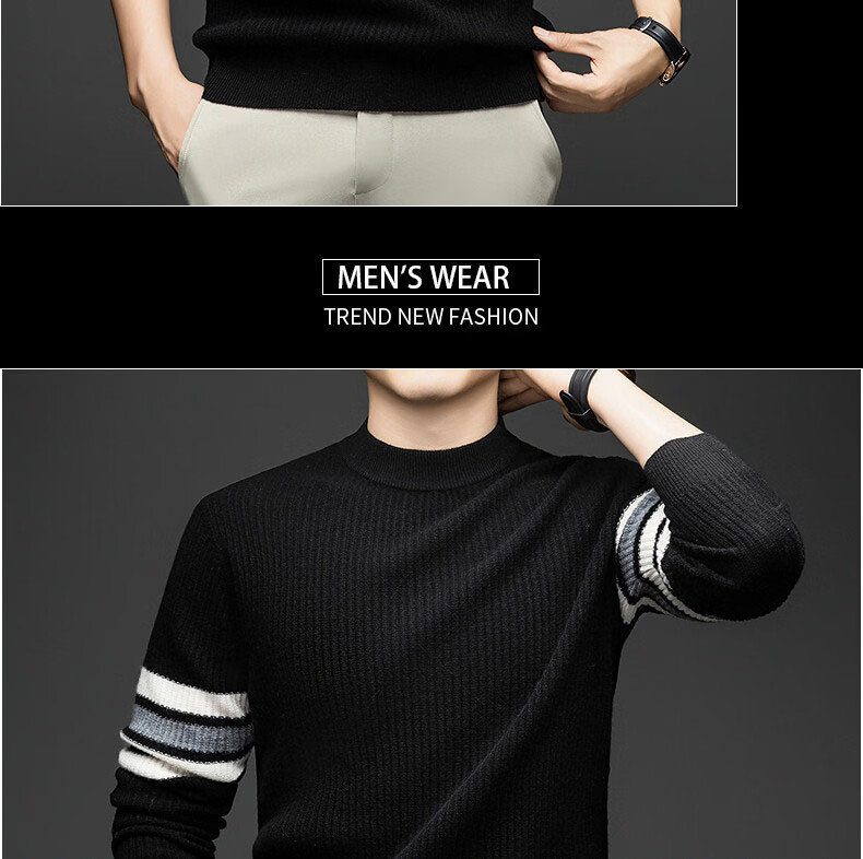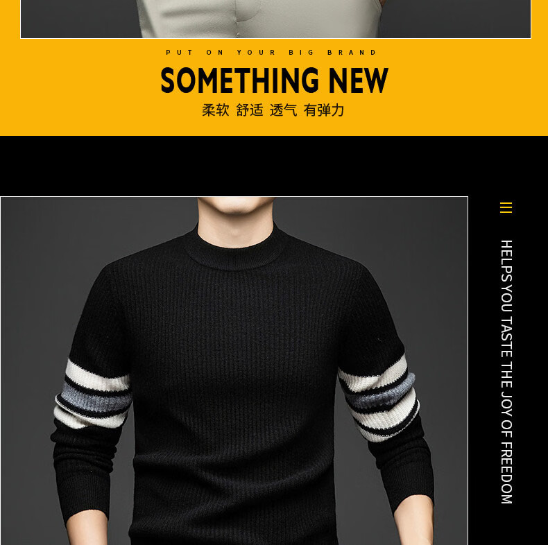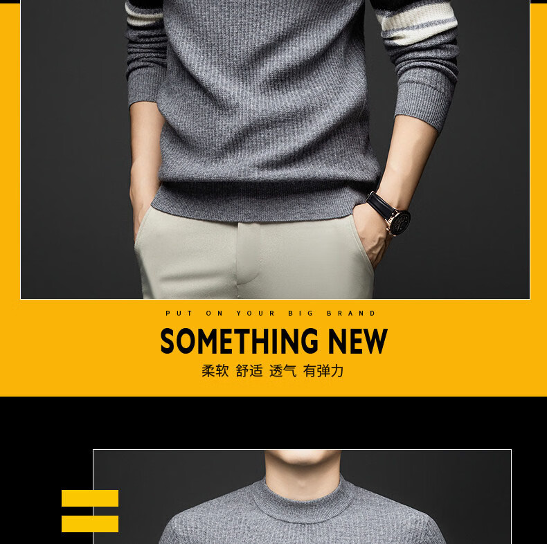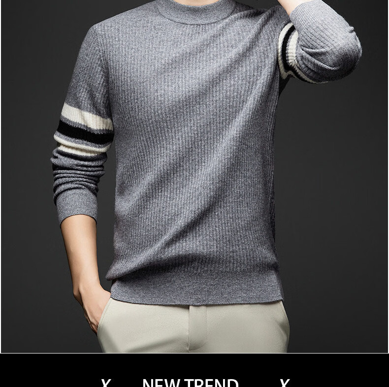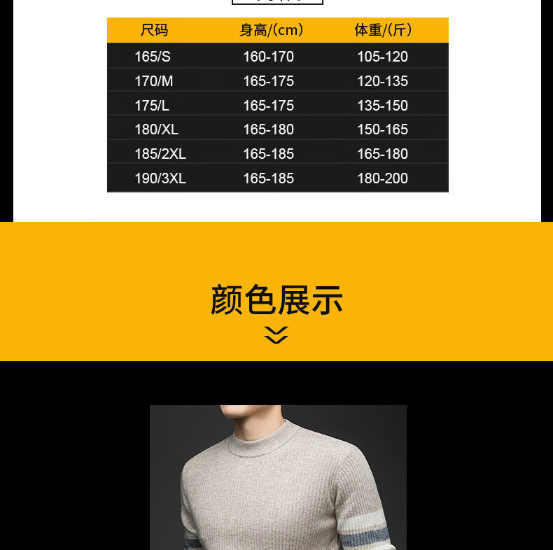 GUSKI light luxury brand high-end men's spring and autumn new wool sweater men's warm striped comfortable sweater casual bottoming shirt beige camel color exquisite gift box S (165)