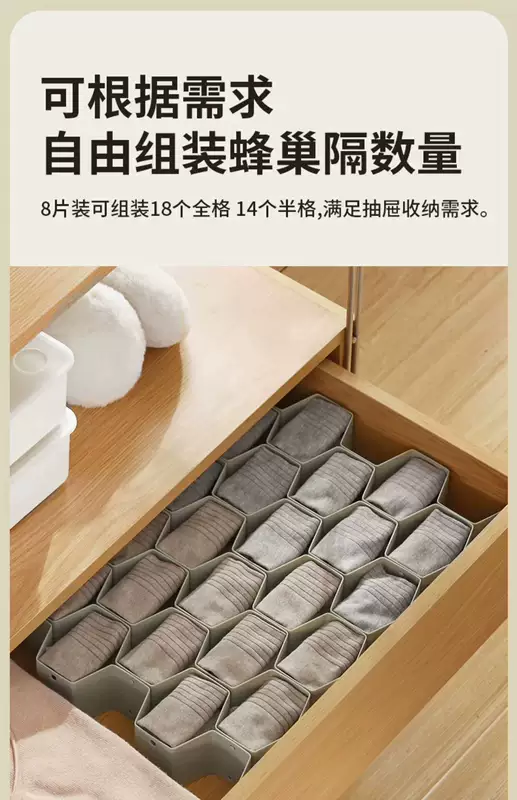 Yusenyi Sock Drawer Divider Honeycomb Compartment Underwear Storage Box Wardrobe Storage Grid Honeycomb Organizing Artifact Quiet Gray (16 pieces Recommended for a family of three