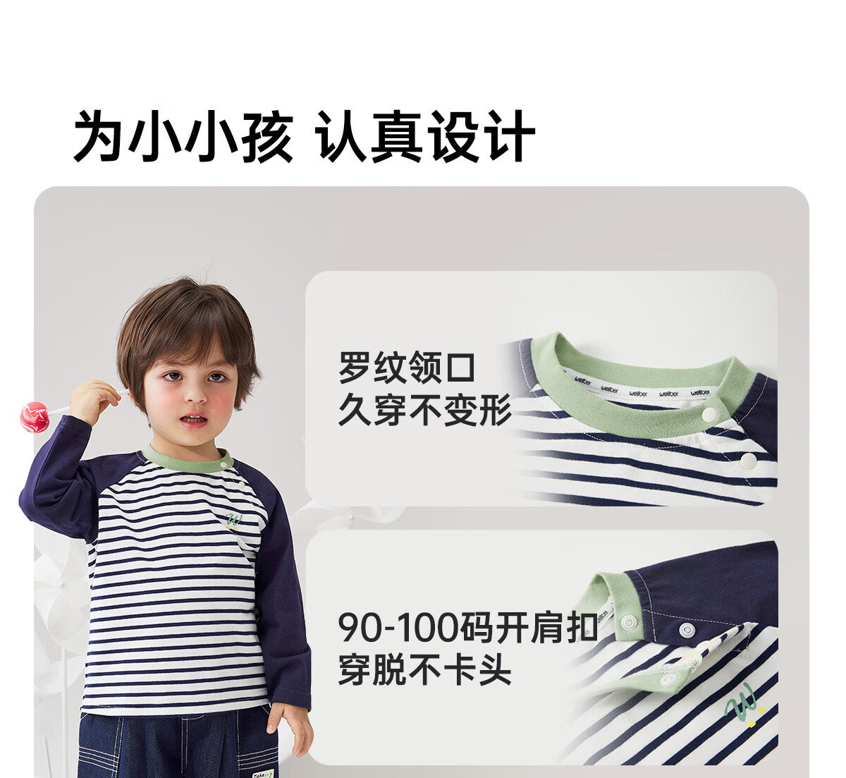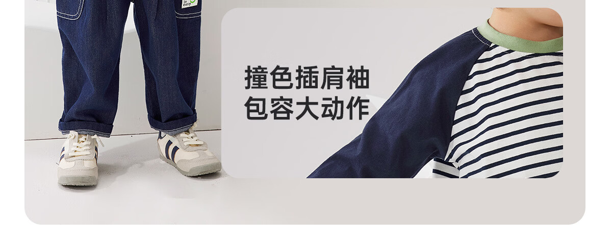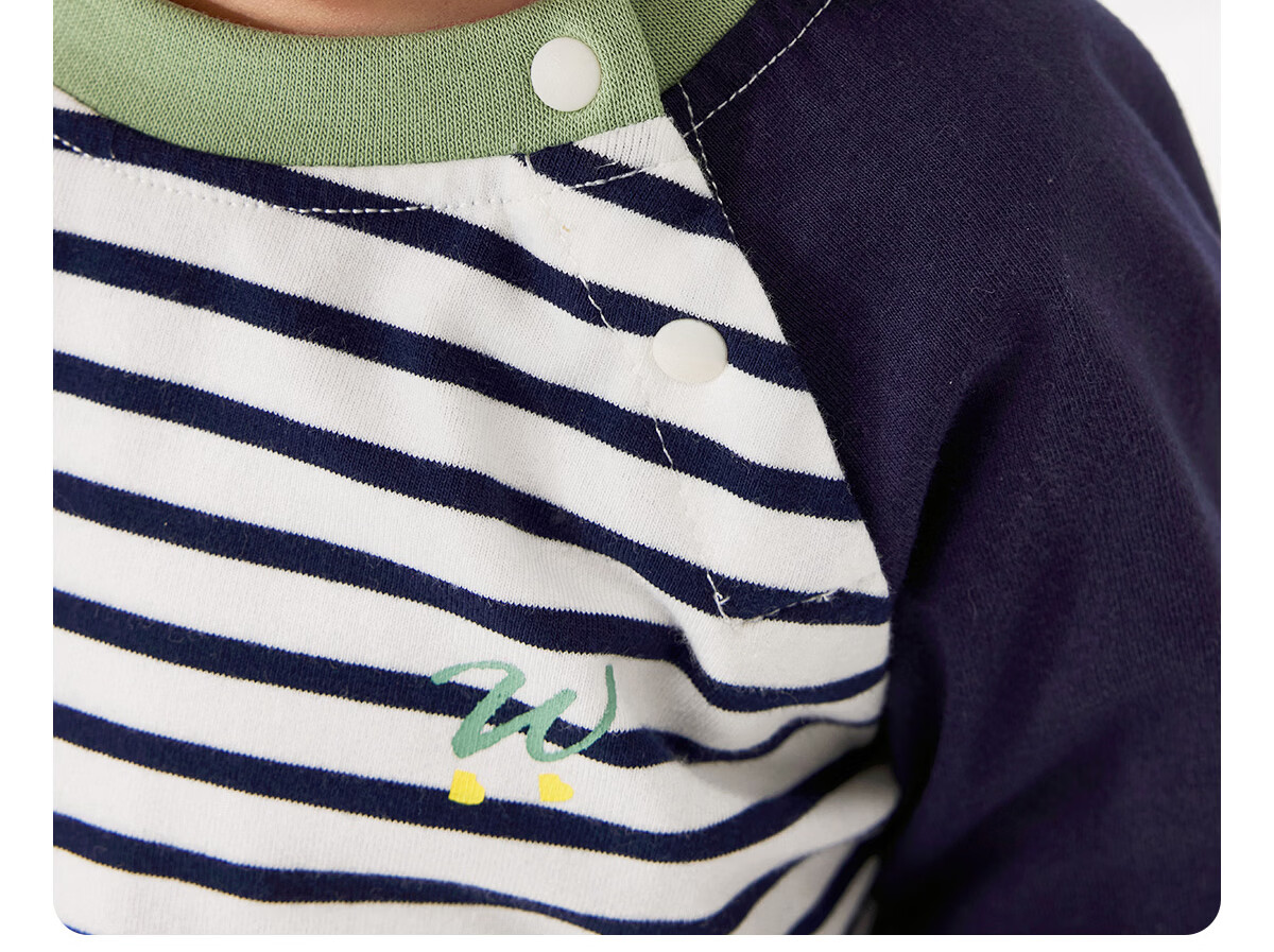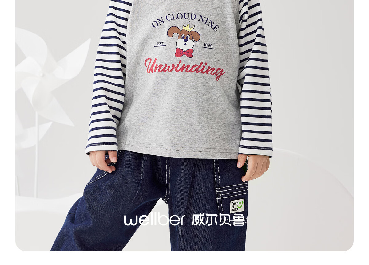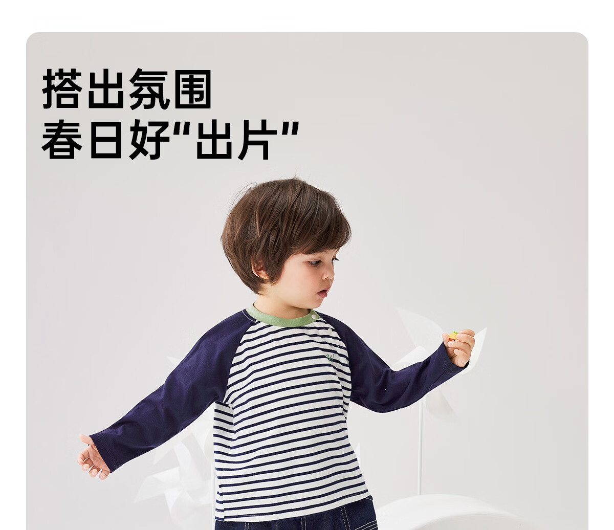 WELLBER children's T-shirt spring and autumn new long-sleeved T-shirt striped versatile contrasting color splicing top baby inner wear pure cotton for children and middle-aged children basic model navy 90